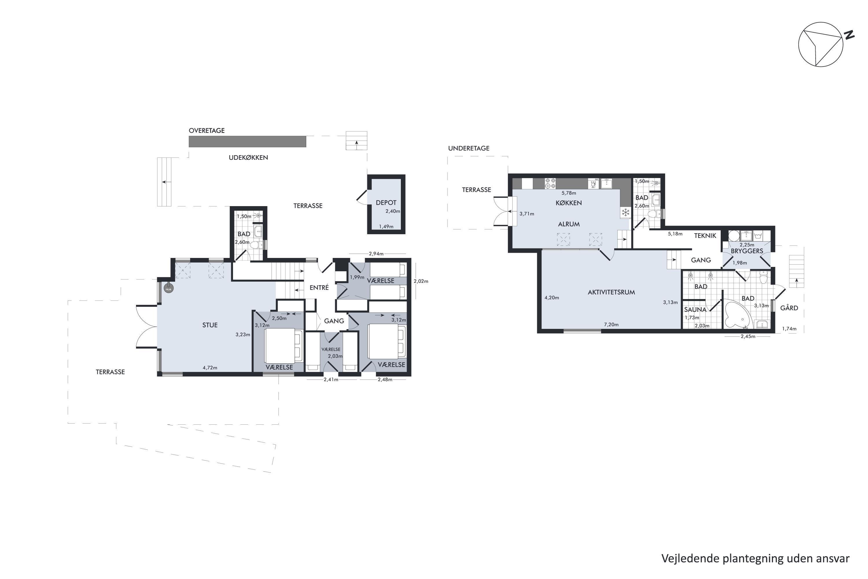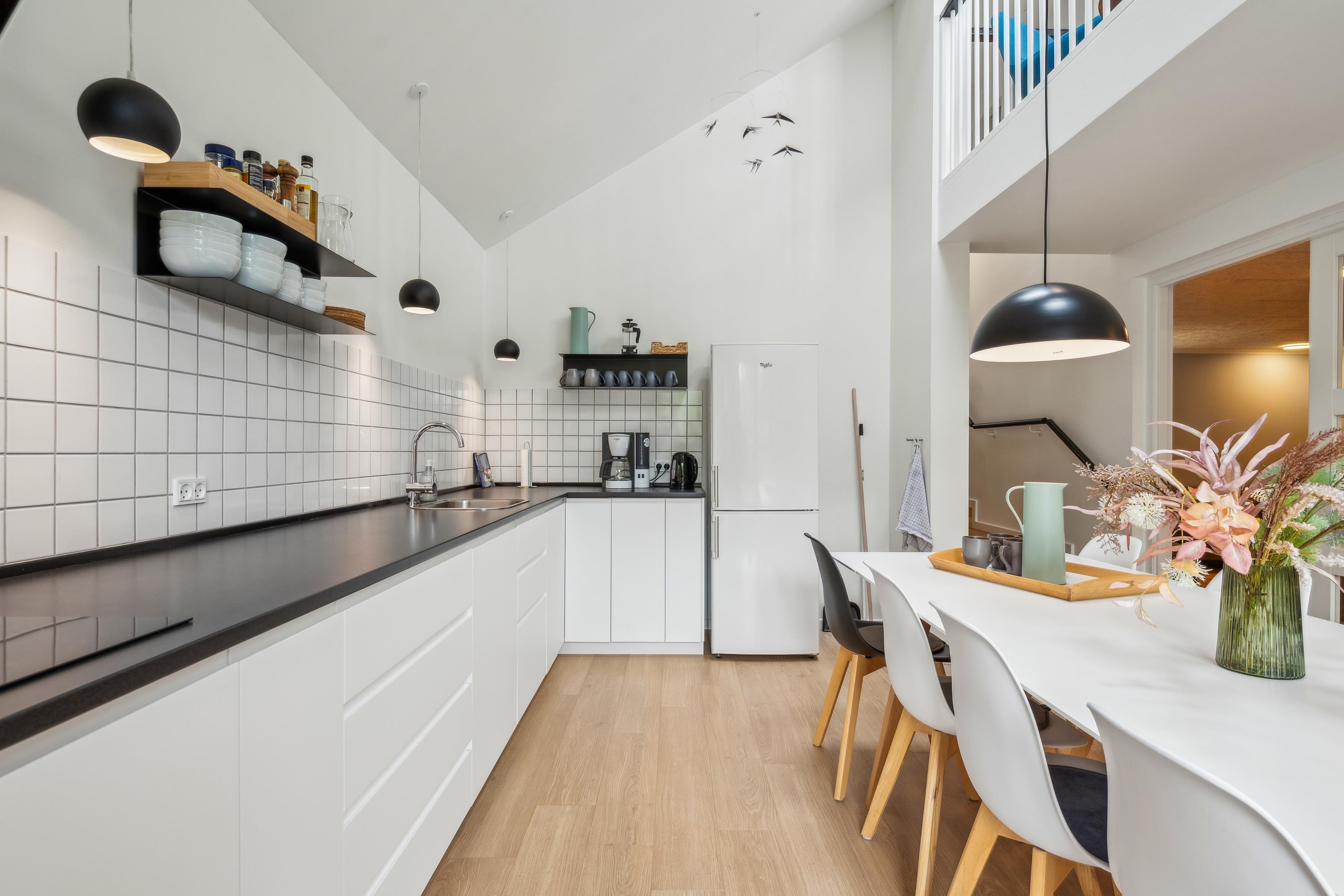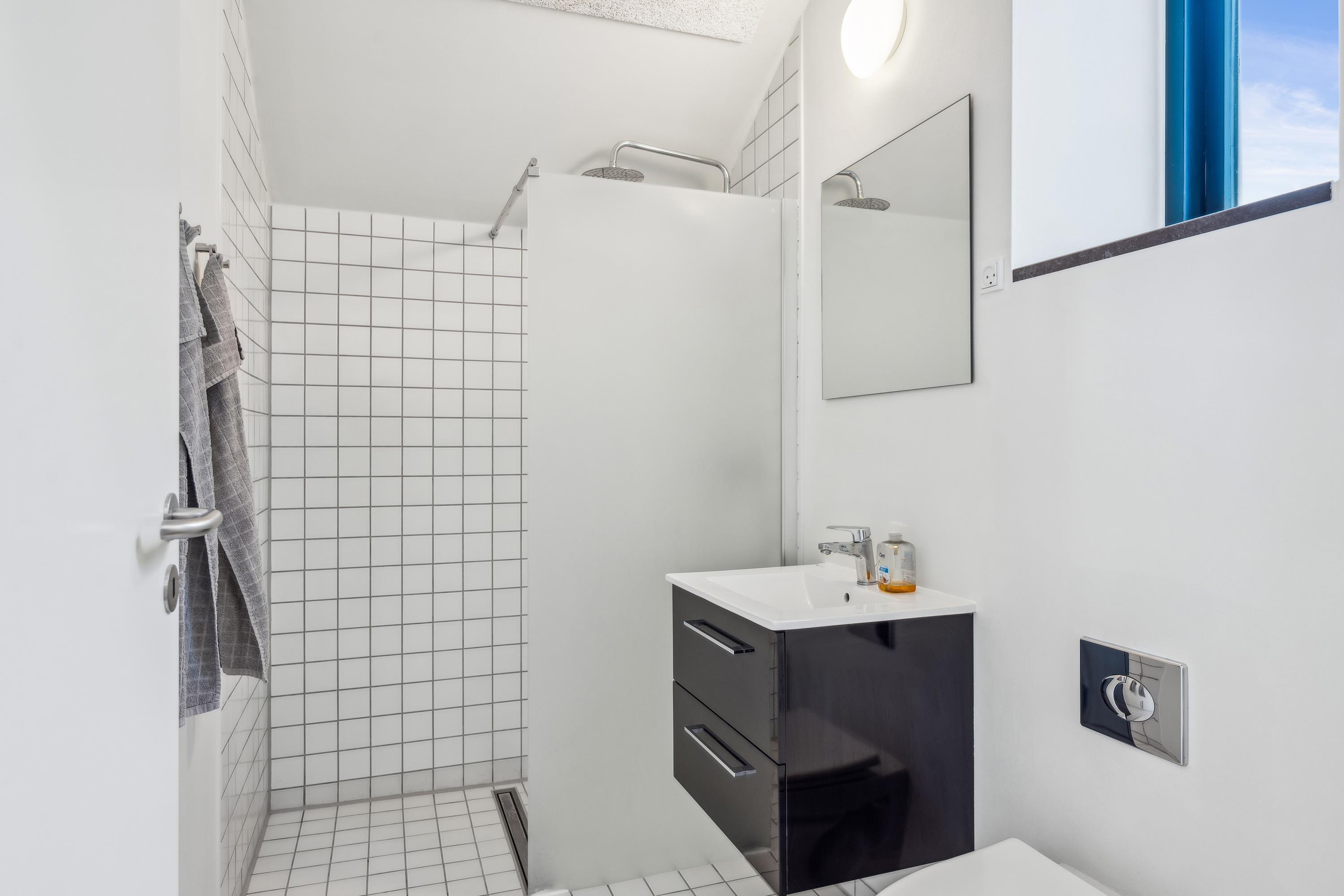 Im selben Bereich befinden sich auch die vier geschmackvoll eingerichteten Schlafzimmer – zwei mit Doppelbetten und zwei mit Einzelbetten. Der Eingangsbereich führt über eine Treppe in die großzügige, moderne Küche mit Zugang zu einer weiteren Terrasse. Hier befindet sich auch eines der beiden schönen Badezimmer. Von der Küche aus gelangen Sie in den geräumigen, gut ausgestatteten Aktivitätsraum mit Billiard, Tischfußball, Darts und diversen Gesellschaftsspielen – alles frei nutzbar. Eine weitere Treppe führt hinunter in den Hauswirtschaftsraum mit Waschmaschine und Trockner. Das zweite Badezimmer ist besonders luxuriös mit Whirlpool, einer großzügigen Doppeldusche und einer Sauna. Das Ferienhaus wird energieeffizient mit Luft-Wasser-Wärmepumpe beheizt.