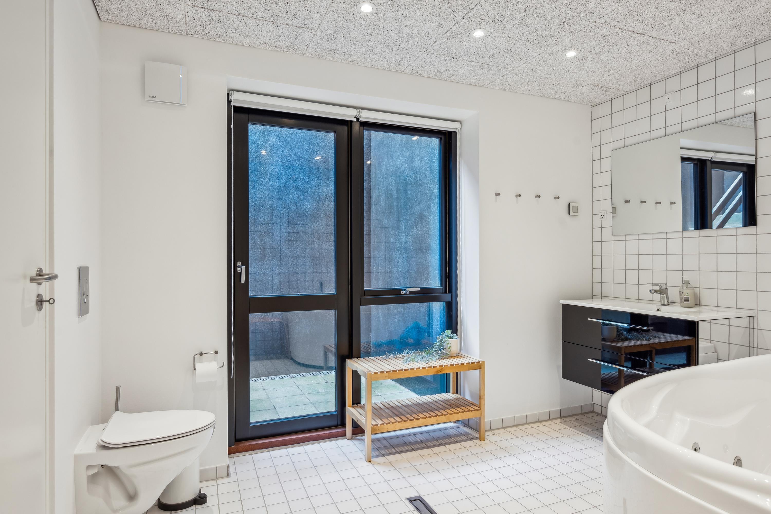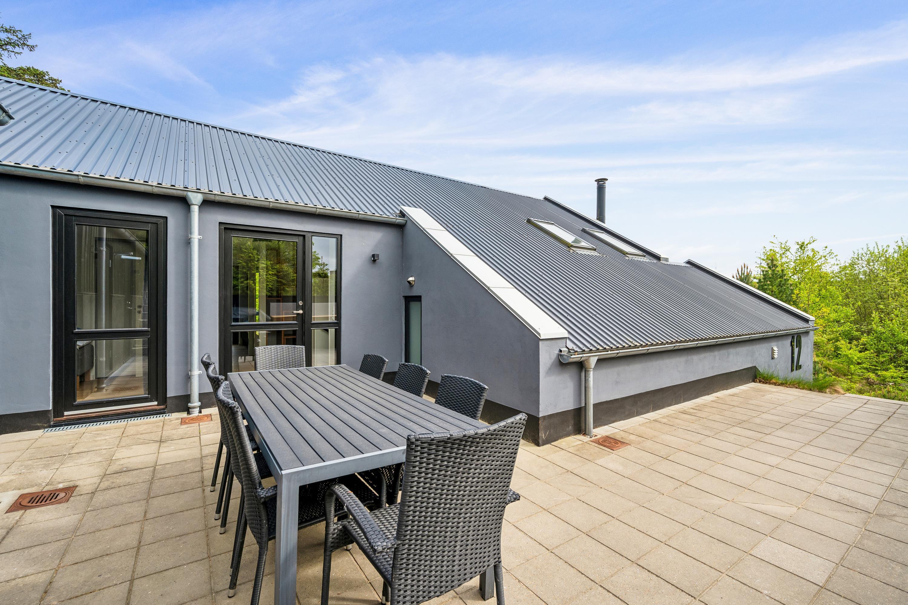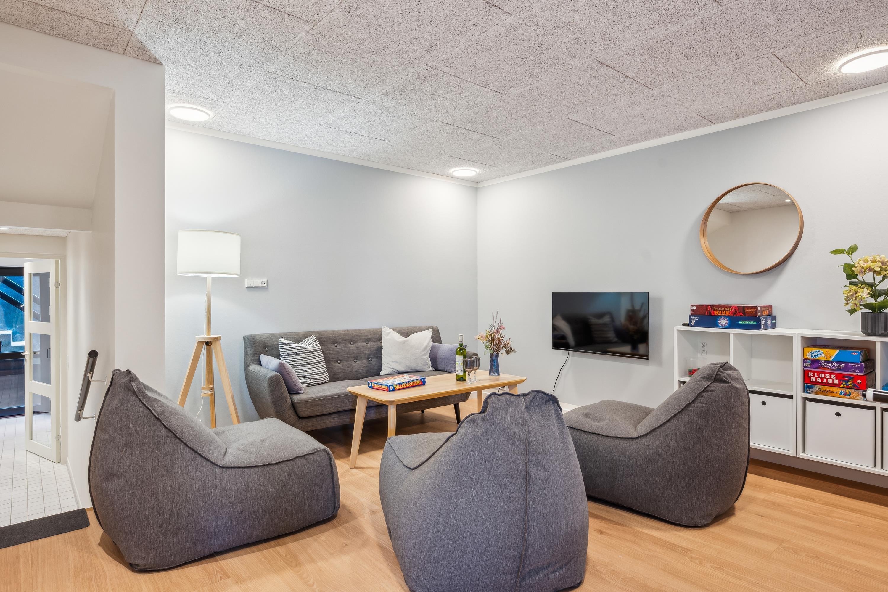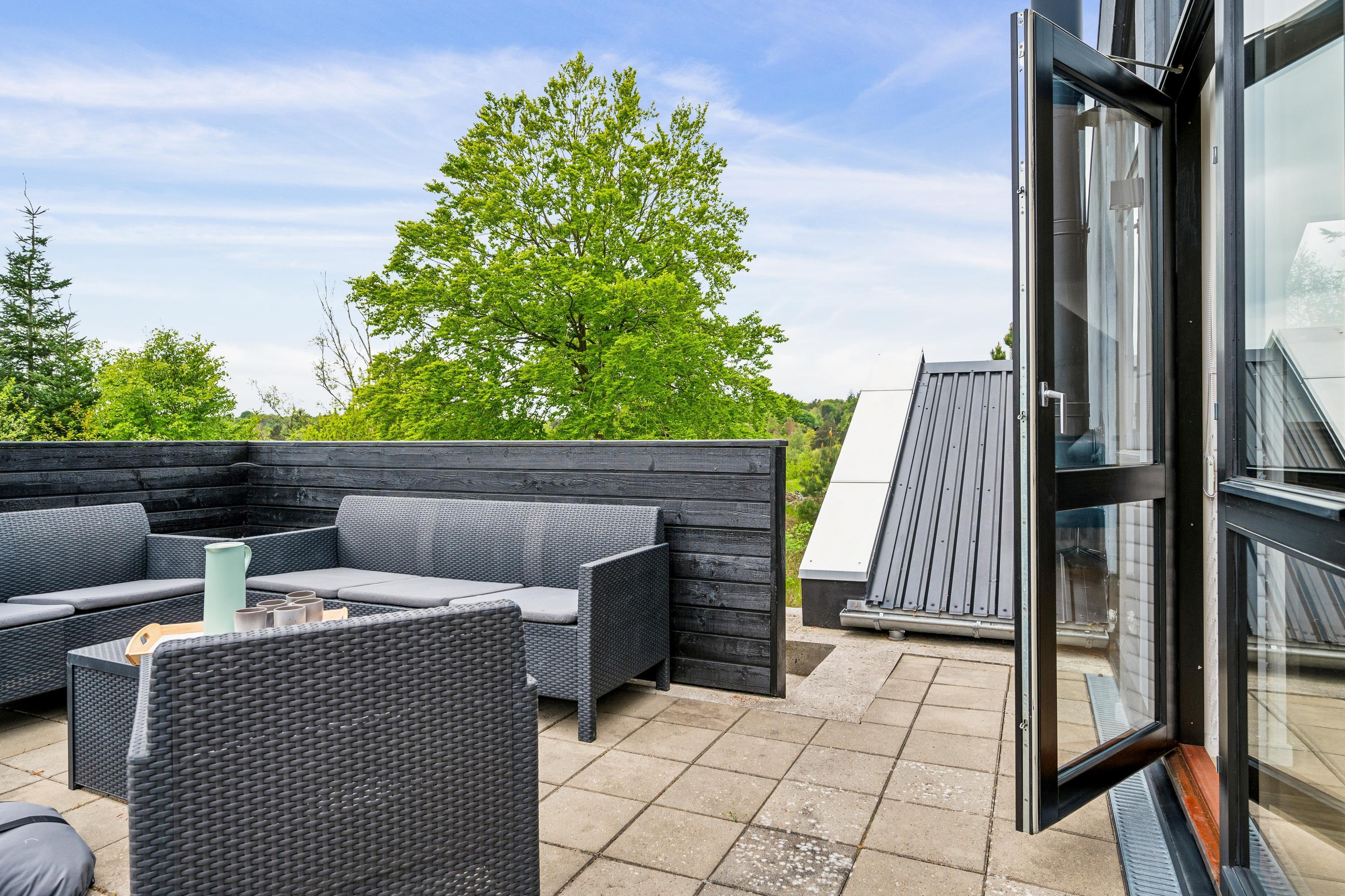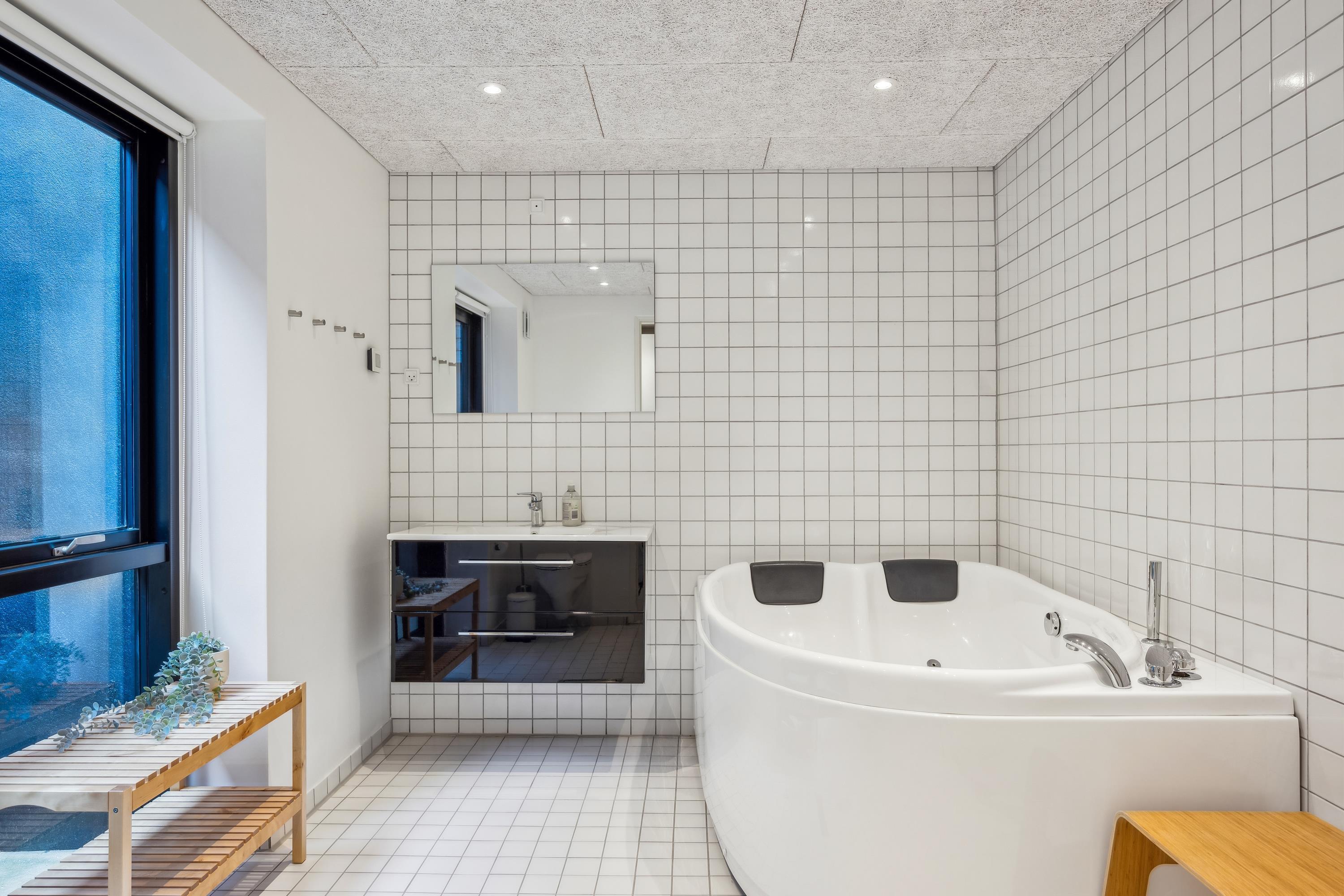 Erleben Sie Erholung und Aktivität im modernen Ferienhaus mit Sauna, Whirlpool und großem Garten in Femmøller, Dänemark.