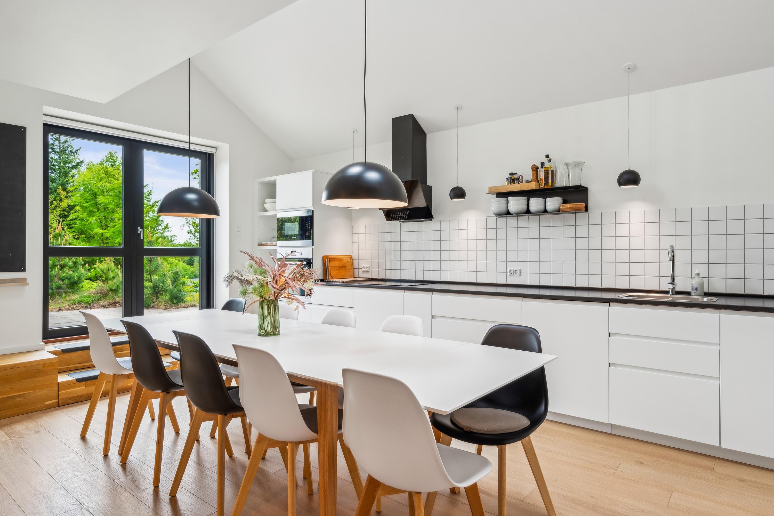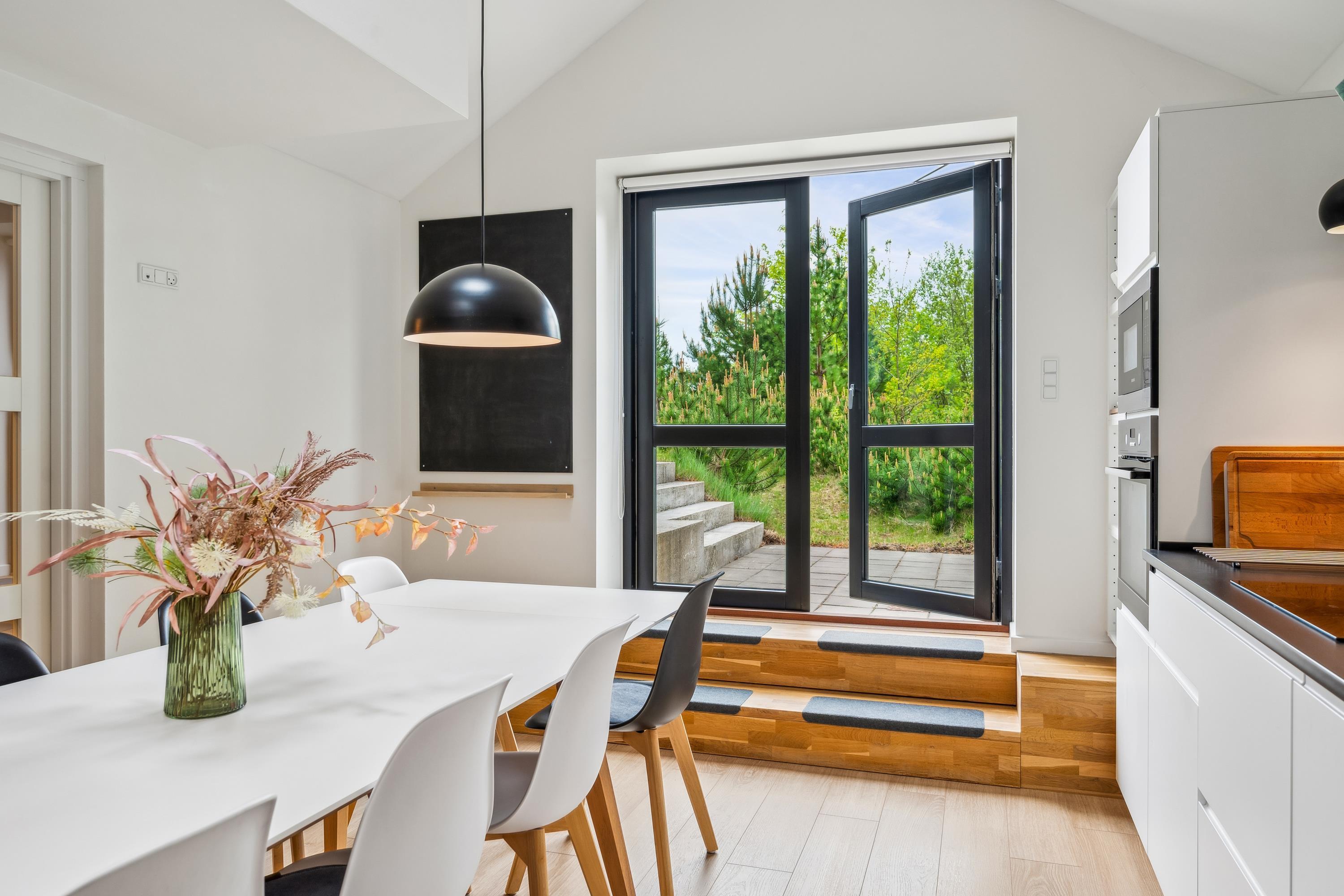 Draußen erwarten Sie mehrere Terrassen mit Gartenmöbeln, Grill und Outdoor-Küche sowie ein großer Rasenbereich, von dem ein Teil wild wachsen darf – perfekt für Naturfreunde. Bitte beachten Sie: Das Haus ist nicht für Gehbehinderte geeignet.