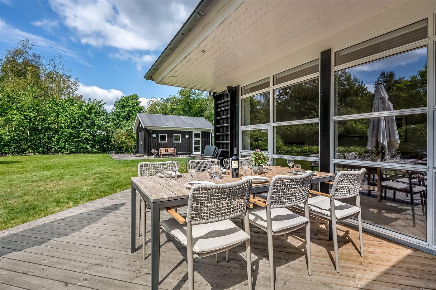Gemütliches, modernes Ferienhaus nahe Femmøller Strand mit Terrasse, Garten und hochwertiger Ausstattung für erholsame Tage.