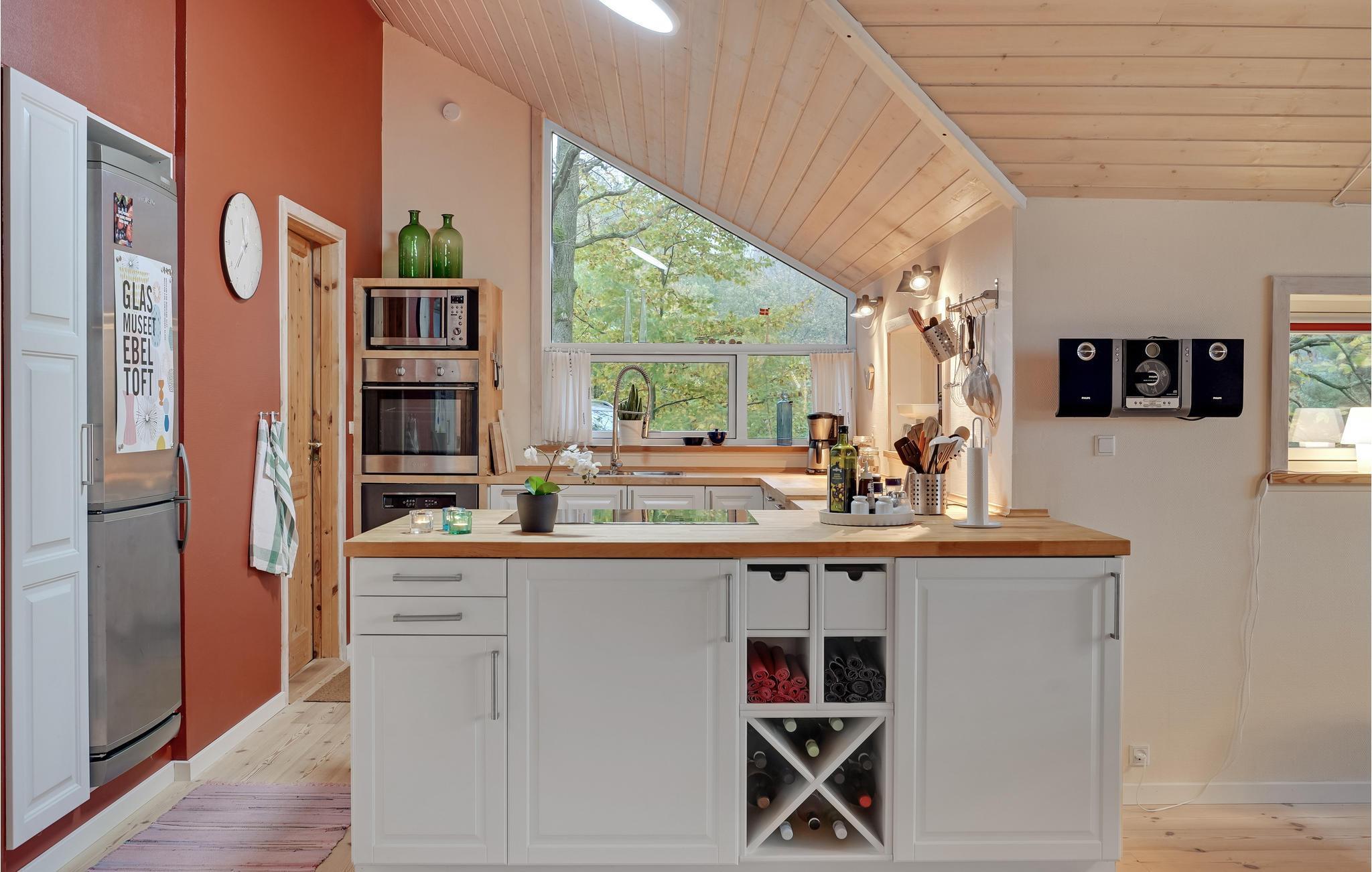 In naturschöner, hügeliger Umgebung begrüßt Sie dieses Ferienhaus. Der Innenraum ist bis hin zum Dachgiebel offen und bietet ein geschackvolles, liebevoll dekoriertes Interieur, in dem Sie sofort in die richtige Urlaubsstimmung finden werden. Im geräumigen Wohnbereich mit Fensterfront werden Sie jeden Tag den Blick auf Wiese und Wald genießen können und stimmungsvolle Abende vorm Kaminofen verbringen.
