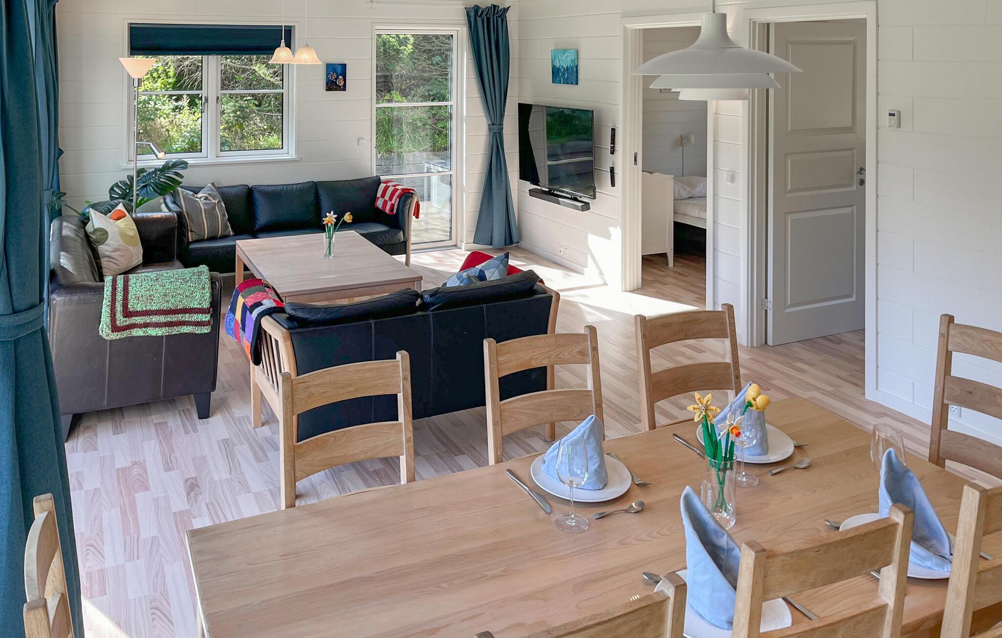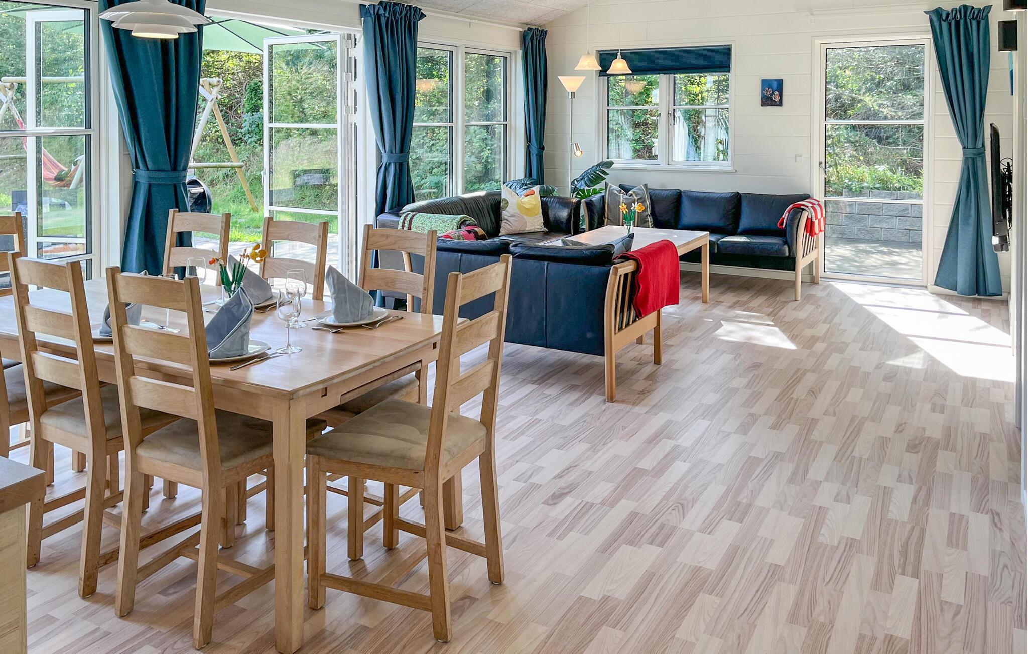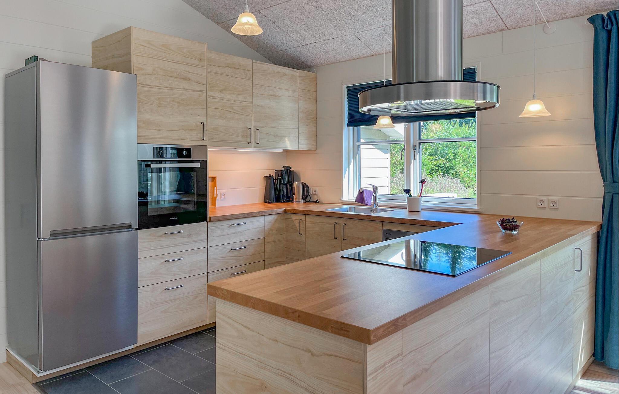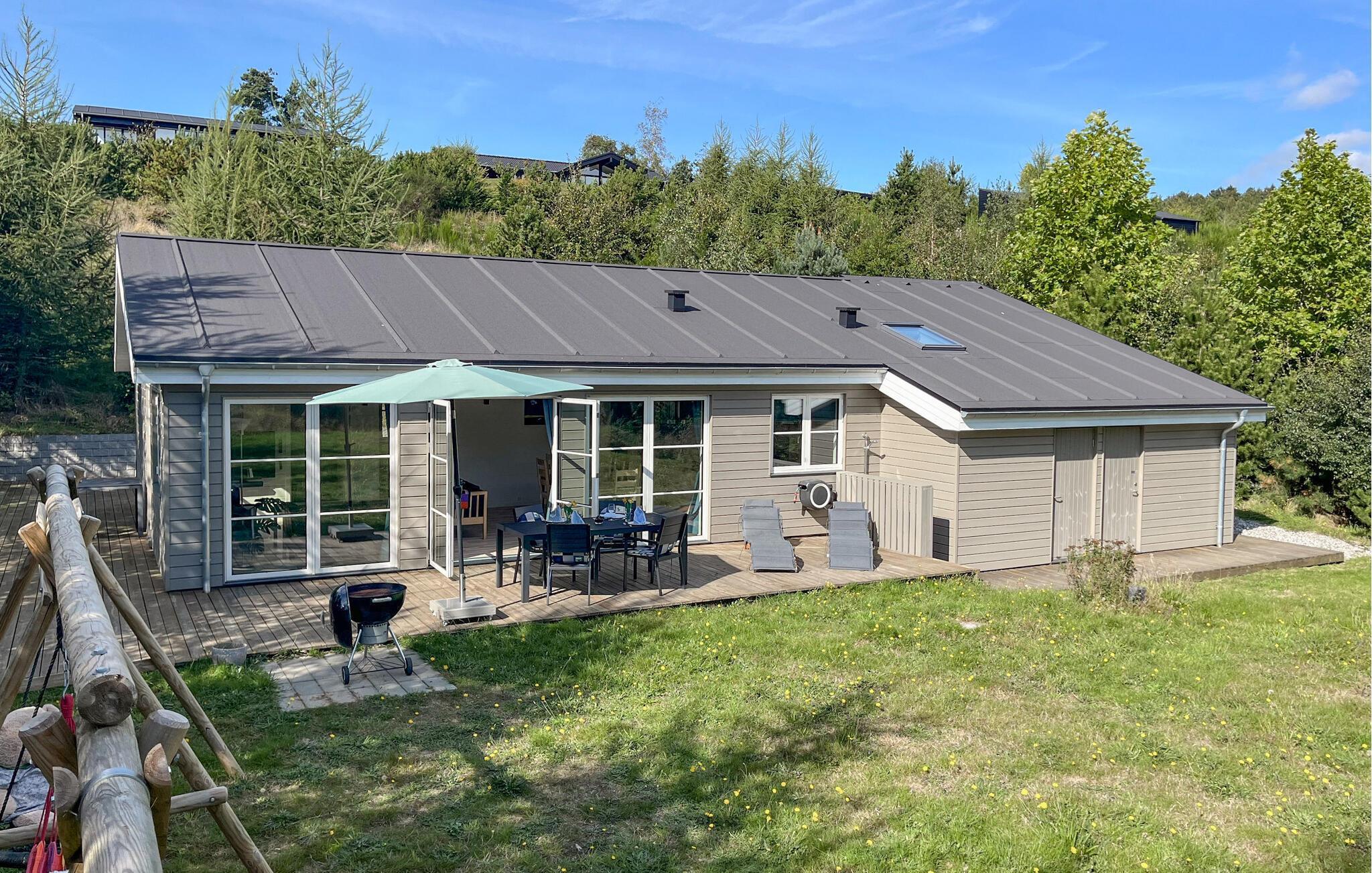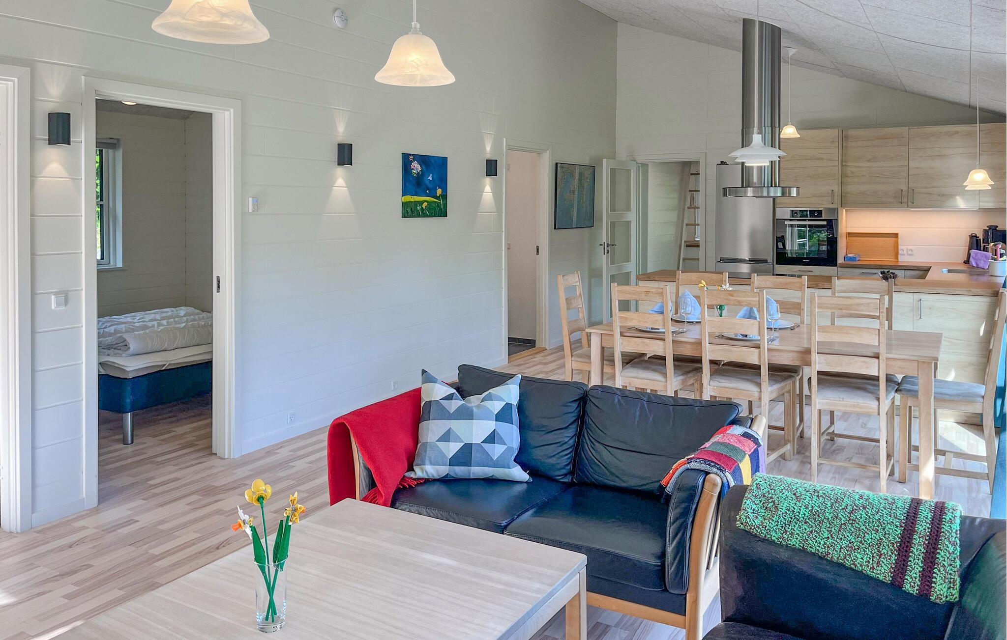 In den hügeligen Landschaften der Halbinsel Mols erwartet Sie dieses moderne Holzhaus mit reichlich Platz für eine Familie oder für zwei kleine Familien. Die von Holz geprägte Einrichtung ist hell und macht einen hübschen Eindruck. Die vielen Fenster im Wohnzimmer mit offener Küche sorgen für eine helle, entspannte Atmosphäre, in der Sie sich sofort wohlfühlen werden. Außer den mehreren schönen Schlafzimmern bietet das Haus auch einen offenen Schlafboden, der für die Kinder vielleicht ein beliebter Spielort wird.