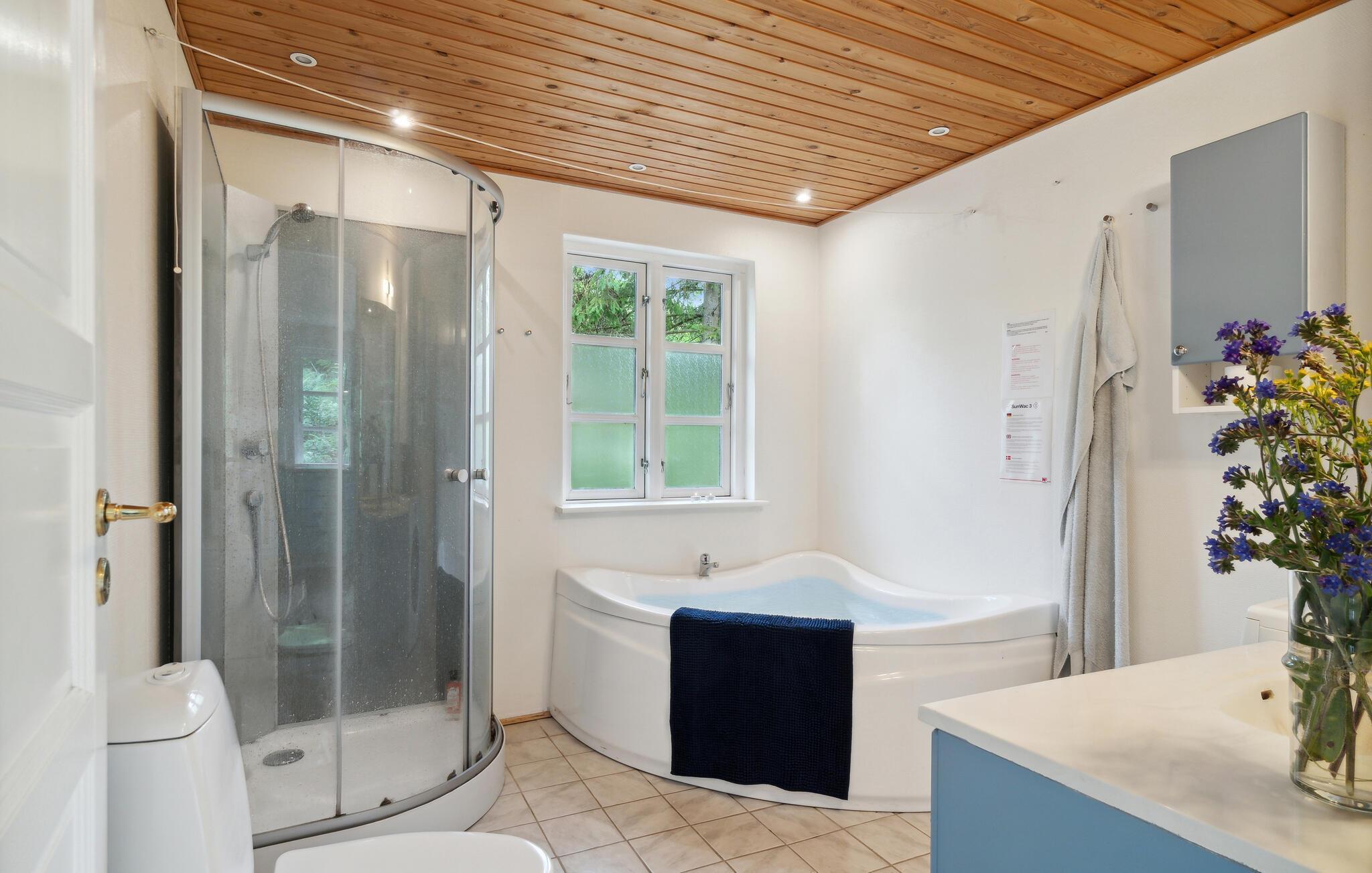 Auf einem schönen Fleckchen Erde im Nationalpark Mols Bjerge und hinter dem Femmøller Strand liegt dieses Ferienhaus. Hier finden Sie Wälder, schöne Erlebnisse in der Natur und ein naturnahes Grundstück. Das Ferienhaus ist modern eingerichtet, es erwartet Sie hohe Qualität, ein schönes Badezimmer mit Whirlpool und eine schöne offen Wohnküche. Davor liegt eine große, offen Terrasse aus Holz. In drei Minuten im Auto erreichen Sie den nächsten Badestrand.