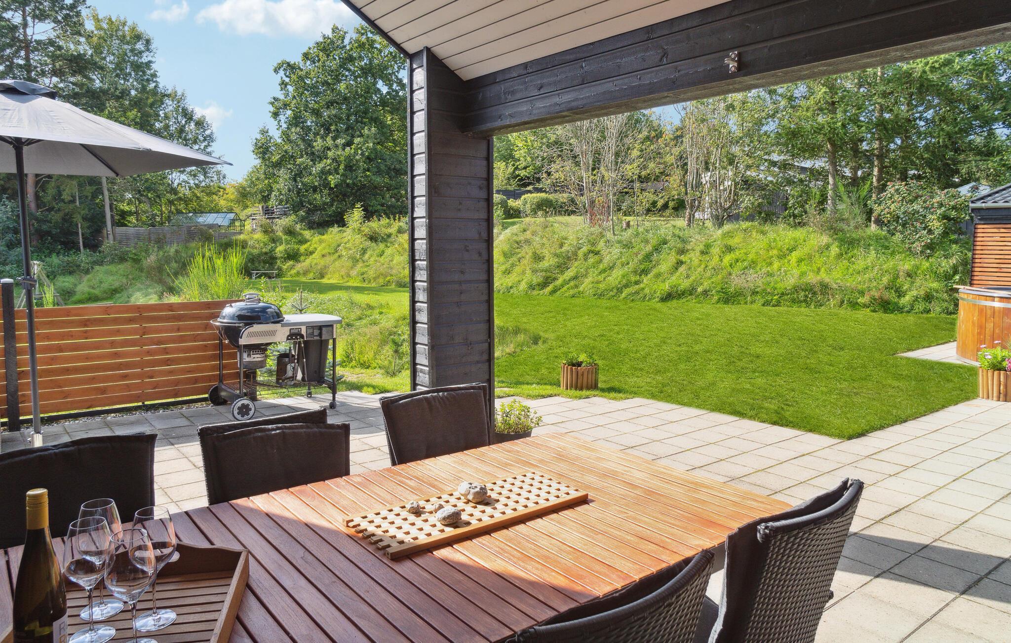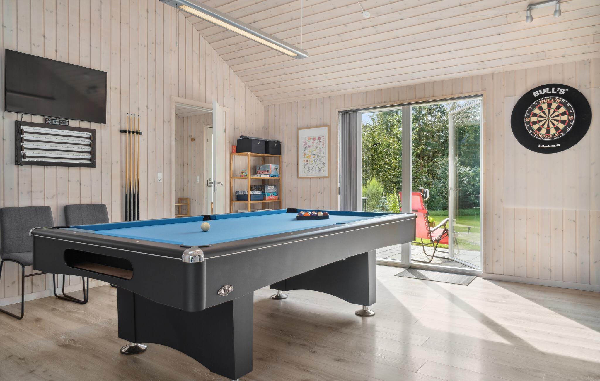 Luxuriöses Ferienhaus in Dänemark mit moderner Architektur, Sauna und großem Aktivitätszimmer für unvergessliche Erlebnisse.