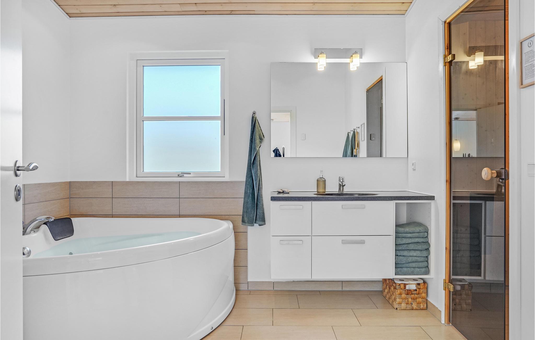 Modernes Ferienhaus in Dänemark mit Sauna, Whirlpool und großer Terrasse für erholsame Urlaubstage.