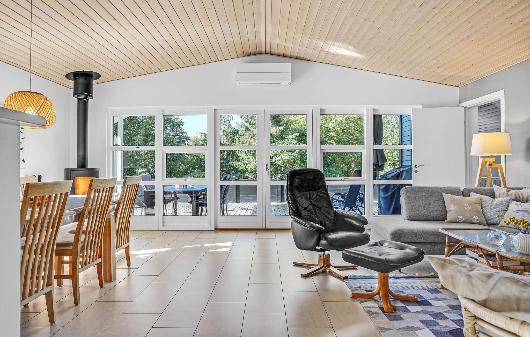 Schönes gelegenes Ferienhaus auf einem großen Naturgrundstück. Es verfügt über vier gute Schlafräume, ein Badezimmer und ein Gäste WC, wodurch viel Platz für sowohl eine als auch zwei Familien vorhanden ist. Das Haus ist sehr modern, hell und mit einer gut ausgestatteten Küche eingerichtet. Aufgrund der guten Isolierung können Sie hier bei jedem Wetter und zu jeder Jahreszeit einen schönen Urlaub verbringen. Das Gebiet am Fuße der 'Mols Bjerge' bietet eine herrliche Natur mit viel Wald, ein abwechslungsreiches Gelände und offene Flächen, die sehr gut zum Wandern geeignet sind. Der Strand und die Stadt Ebeltoft liegen nur etwa 5-10 Autominuten vom Haus entfernt.