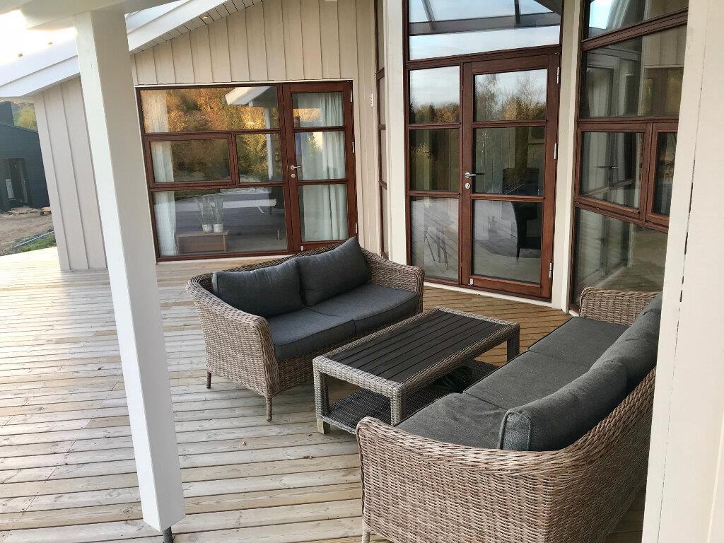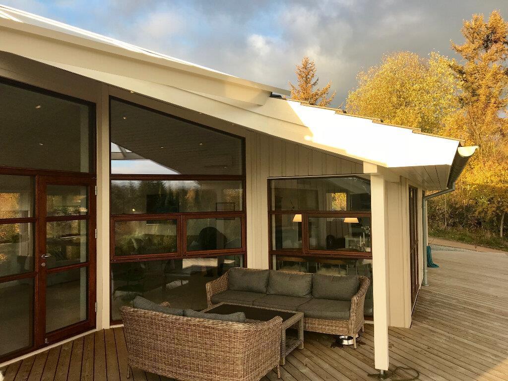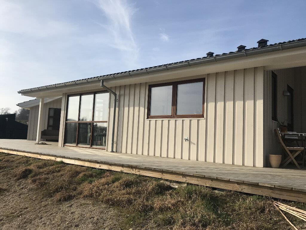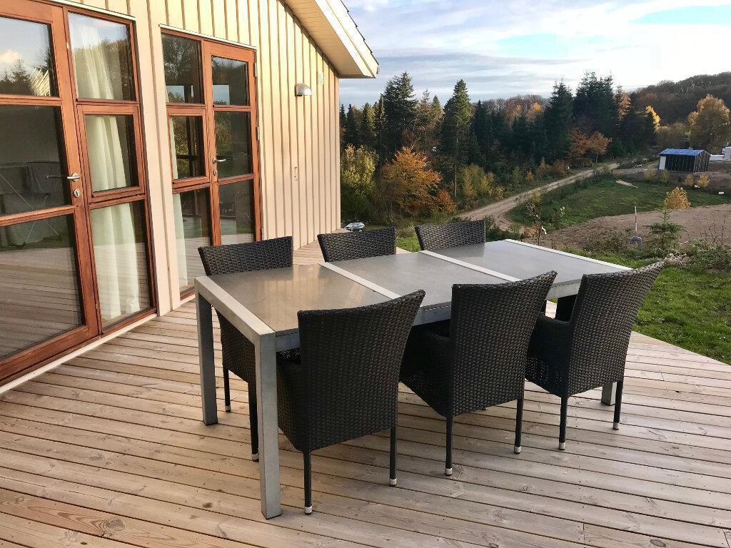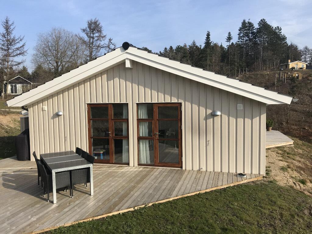 Neueres Ferienhaus (2018) mit besonders hoher Lage und einzigartiger Aussicht. Das Haus liegt in Femmøller / Mols Bjerge und bietet Platz für 8 Personen.