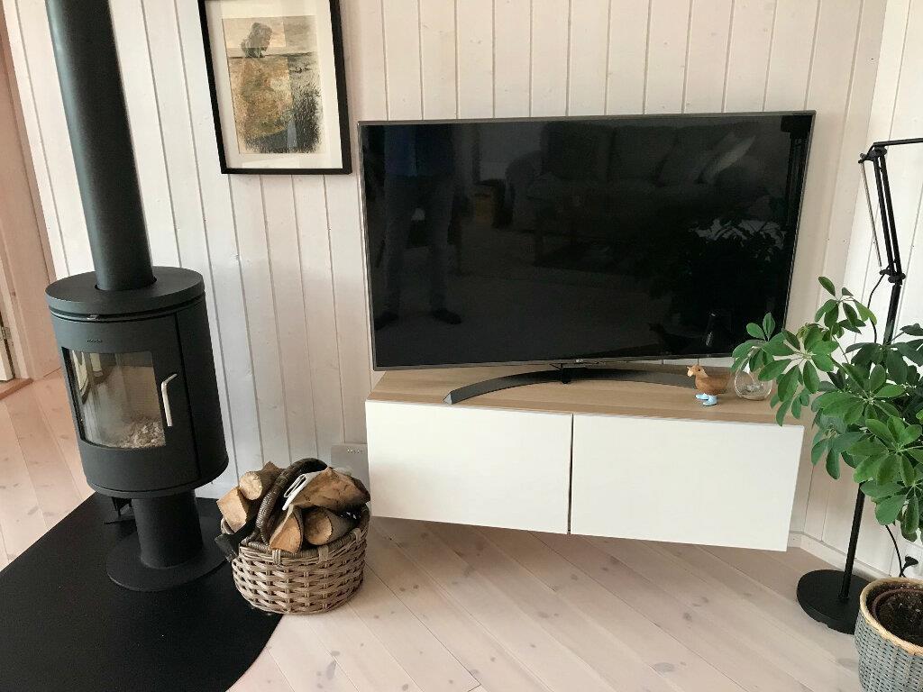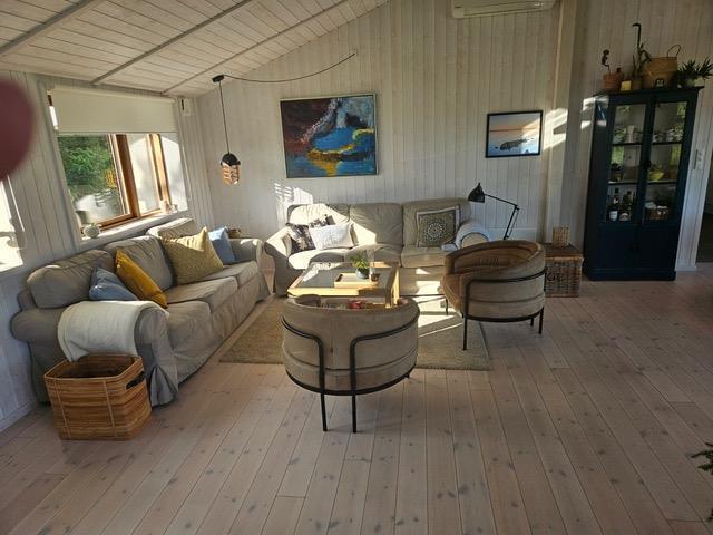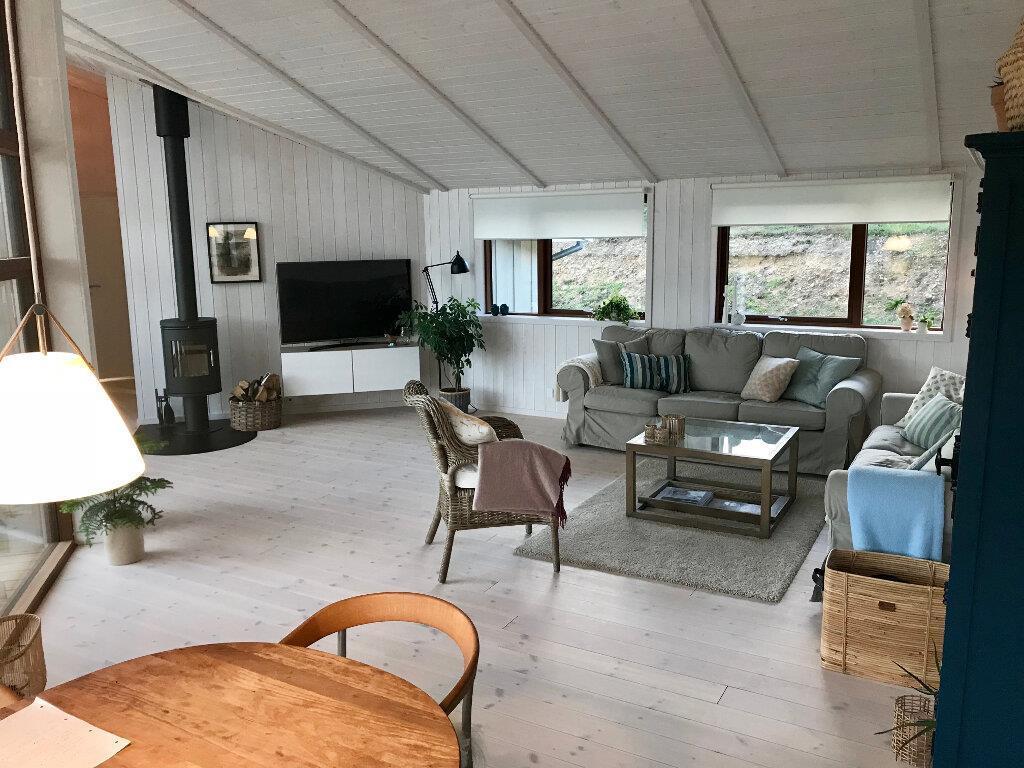 Hier befinden sich ein schönes, großes und gut ausgestattetes Wohnzimmer, in dem Sie ein Holzofen finden. Es gibt TV mit dänischen und internationalen Sendern sowie Internet..