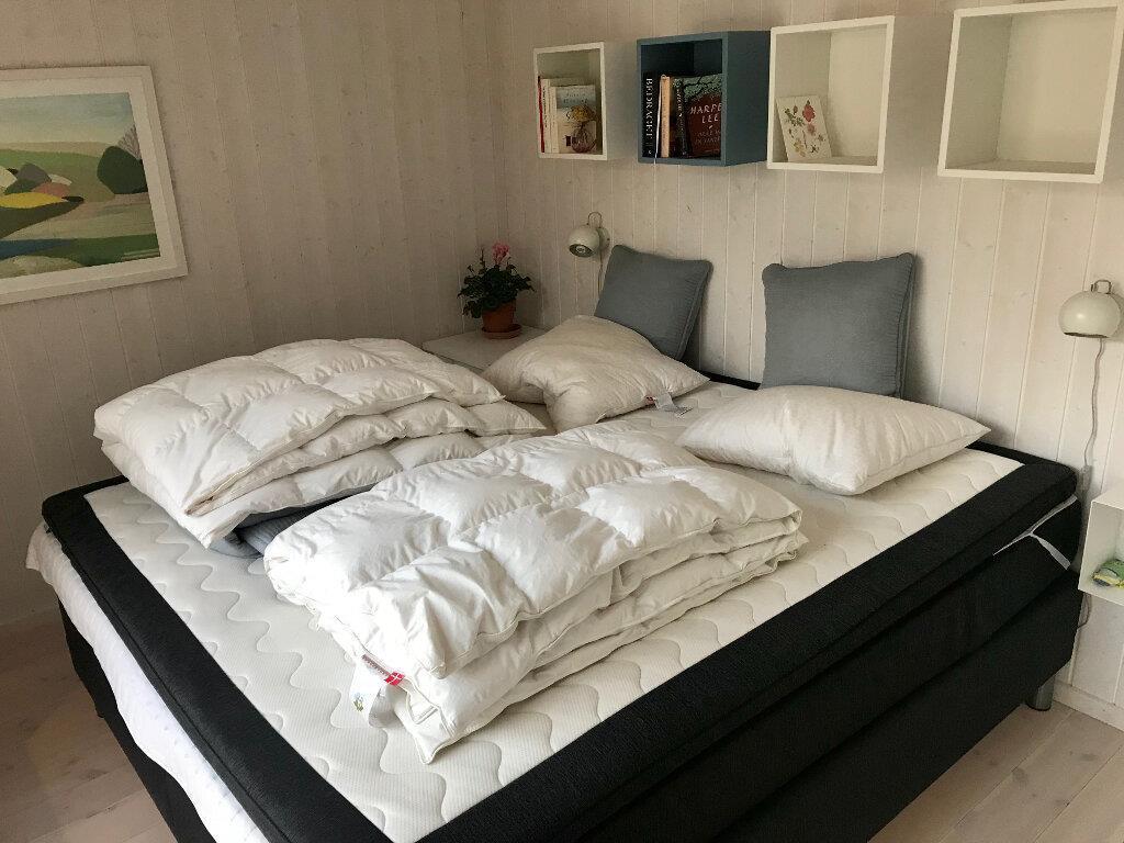 Das Haus hat drei Doppelzimmer mit einem Doppelbett, ein Aktivitätsraum mit einem Schlafsofa für 2 Personen und ein großes Loft mit Matratzen für 2 Personen. Hier können sich kleinere Kinder austoben.