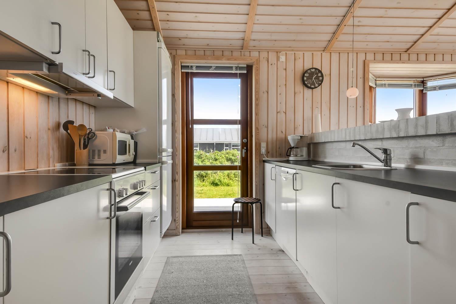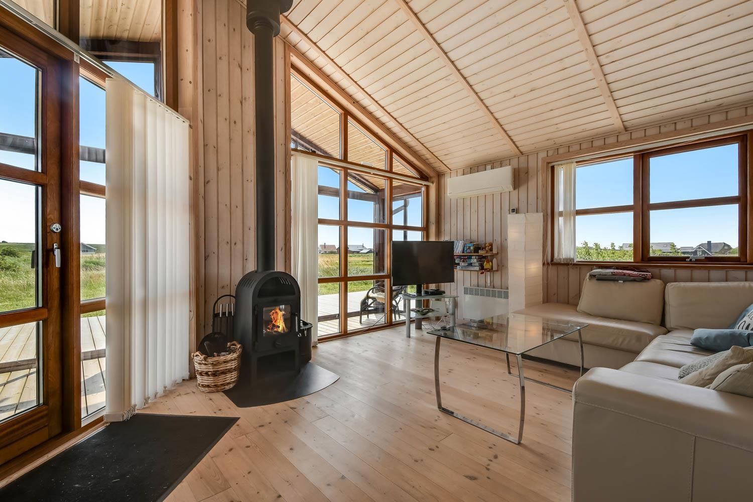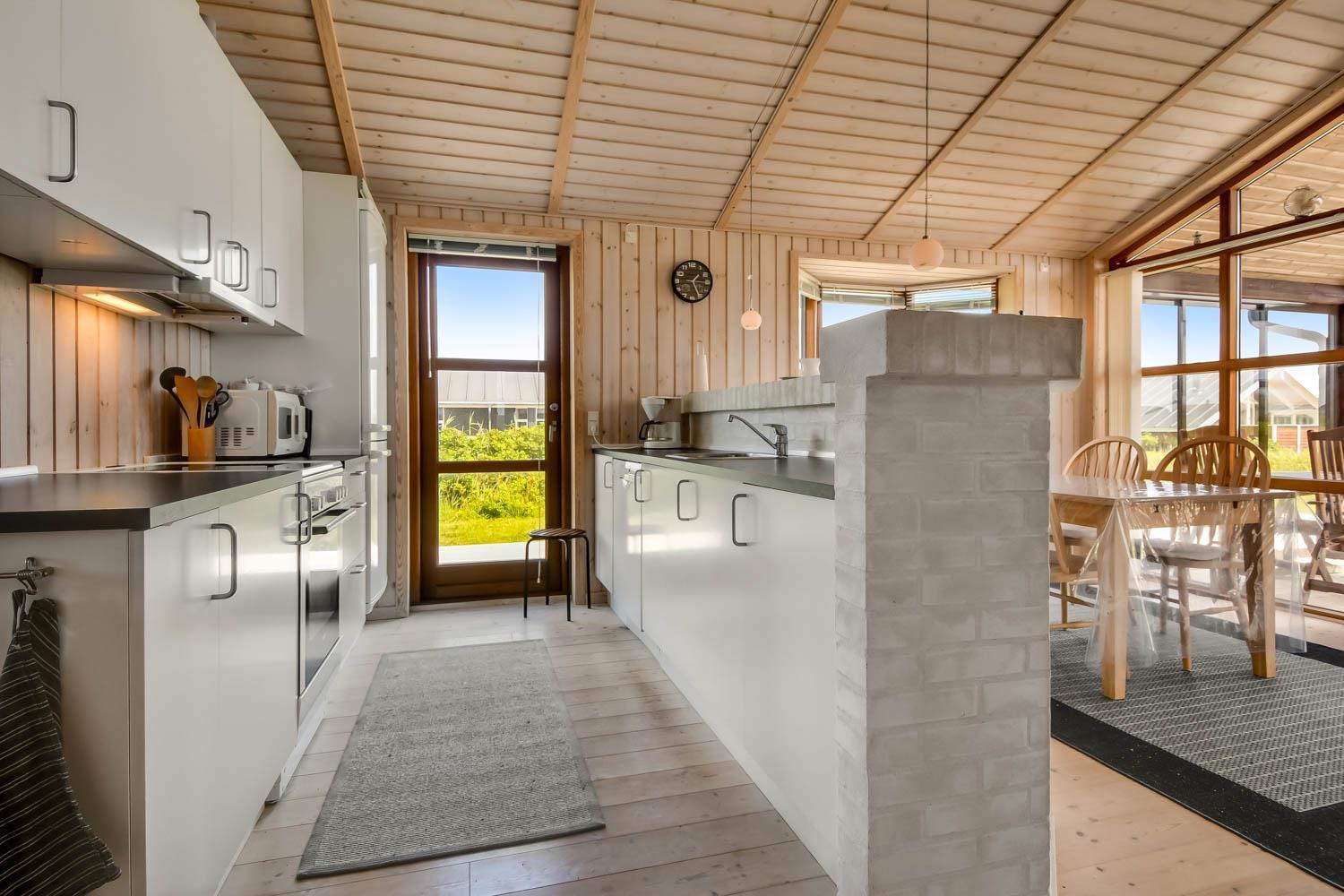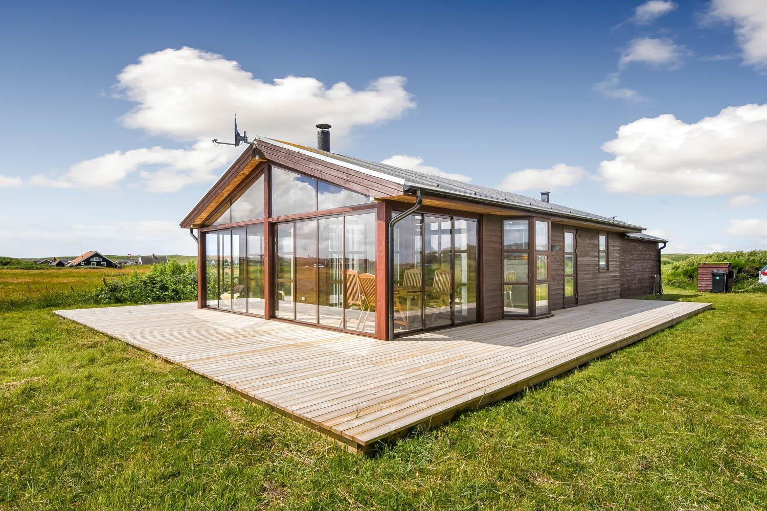 Schönes modernes Ferienhaus auf etwa 68 m2 welches im Jahr 2006 erbaut worden ist. Das Haus hat 3 Schlafräume: 1DB, 1DB, 1E. Alle Schlafräume sind mit Holzböden. Das Haus ist geschmackvoll und praktisch eingerichtet. Die Küche hat alles an Geschirr und Kochgeschirr. Es gibt einen Herd mit Cerankochfeld, Abzugshaube, Geschirrspüler, Mikrowelle und Kühlschrank mit Gefrierfach. Im Wohnraum gibt es z.B. einen Esstisch dicht an der Küche, Smart-TV mit deutschen und dänischen Programmen und Sie haben die Möglichkeit für Streaming, denn es gibt WLAN im Haus. So kann die Unterhaltung auf diese Weise erfolgen oder Sie können es auch für die Arbeit verwenden. Es gibt auch DVD-Player, Ledercouch. Wärmepumpe und einen gemütlichen Kaminofen, der für eine schöne Wärme sorgt. Es gibt eine Leiter zum offenen Schlafboden mit Matratzen, bestimmt etwas für die kleinsten Gäste. Der Wohnraum ist bis zur Decke geöffnet und hat einen praktischen Holzboden. Es macht das Haus sehr luftig, modern und dadurch sehr leicht zu reinigen. Badezimmer mit Toilette, Waschbecken, gemauerter Dusche, Waschmaschine und Fussbodenheizung. Nichtraucher-Haus. Haustiere sind nicht erlaubt. Es gibt einen Ausgang zur großen und einzigartigen Terrassenanlage.