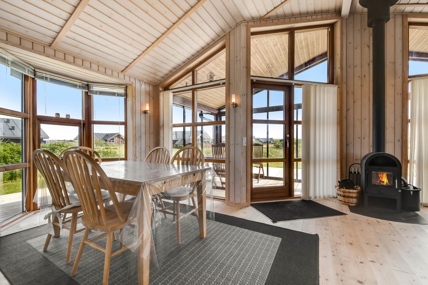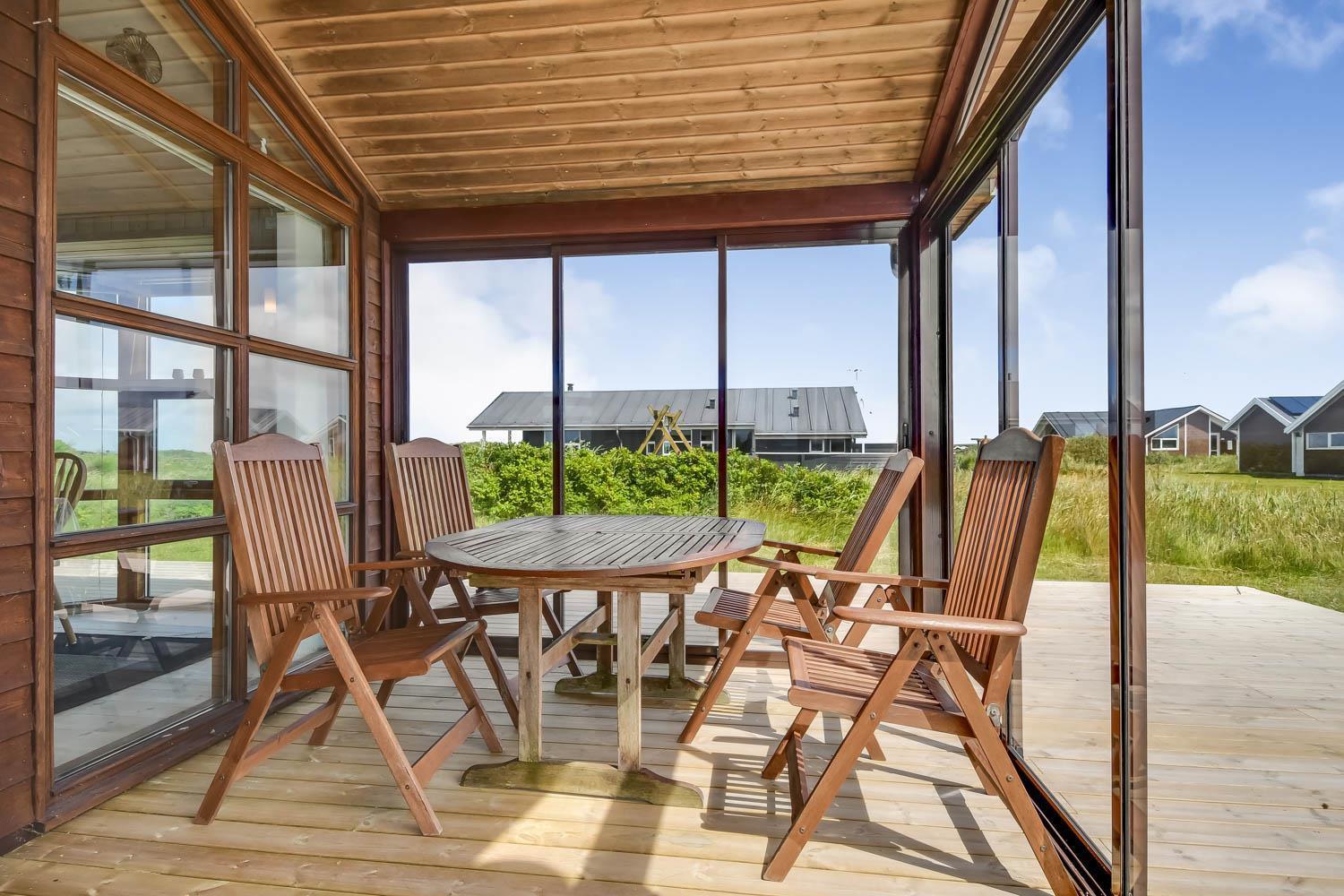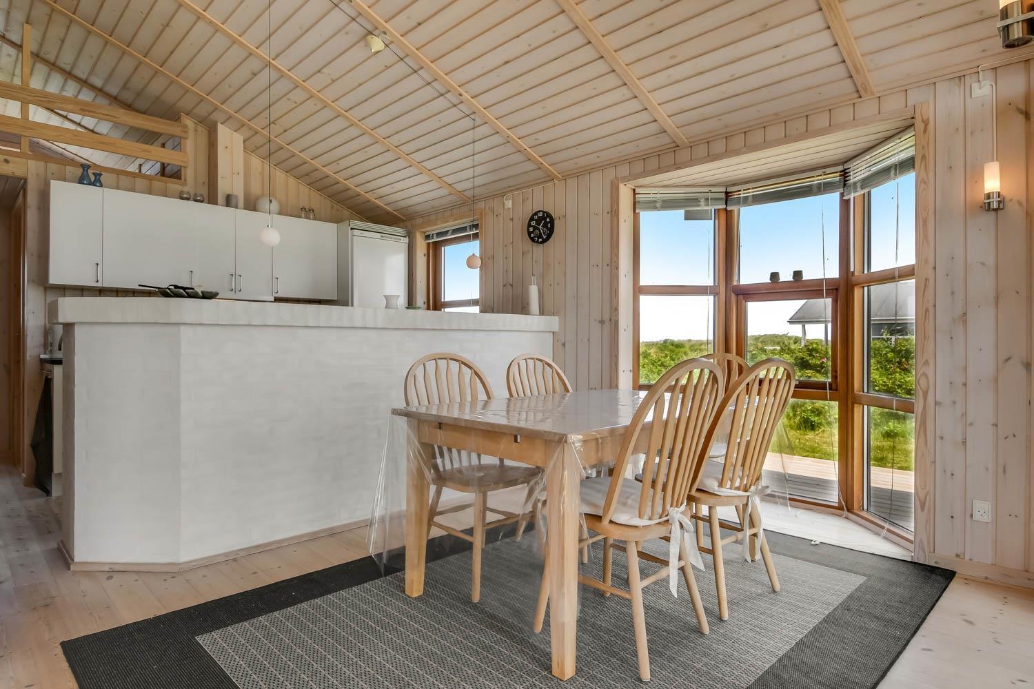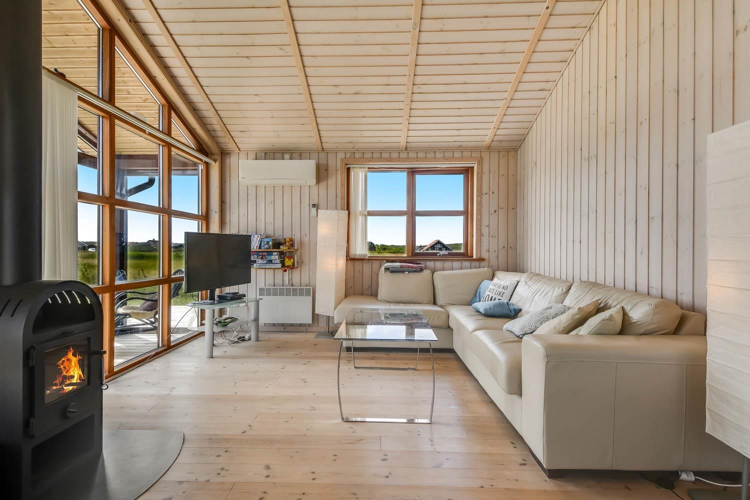 Schönes modernes Ferienhaus auf etwa 68 m2 welches im Jahr 2006 erbaut worden ist. Das Haus hat 3 Schlafräume: 1DB, 1DB, 1E. Alle Schlafräume sind mit Holzböden. Das Haus ist geschmackvoll und praktisch eingerichtet. Die Küche hat alles an Geschirr und Kochgeschirr. Es gibt einen Herd mit Cerankochfeld, Abzugshaube, Geschirrspüler, Mikrowelle und Kühlschrank mit Gefrierfach. Im Wohnraum gibt es z.B. einen Esstisch dicht an der Küche, Smart-TV mit deutschen und dänischen Programmen und Sie haben die Möglichkeit für Streaming, denn es gibt WLAN im Haus. So kann die Unterhaltung auf diese Weise erfolgen oder Sie können es auch für die Arbeit verwenden. Es gibt auch DVD-Player, Ledercouch. Wärmepumpe und einen gemütlichen Kaminofen, der für eine schöne Wärme sorgt. Es gibt eine Leiter zum offenen Schlafboden mit Matratzen, bestimmt etwas für die kleinsten Gäste. Der Wohnraum ist bis zur Decke geöffnet und hat einen praktischen Holzboden. Es macht das Haus sehr luftig, modern und dadurch sehr leicht zu reinigen. Badezimmer mit Toilette, Waschbecken, gemauerter Dusche, Waschmaschine und Fussbodenheizung. Nichtraucher-Haus. Haustiere sind nicht erlaubt. Es gibt einen Ausgang zur großen und einzigartigen Terrassenanlage.