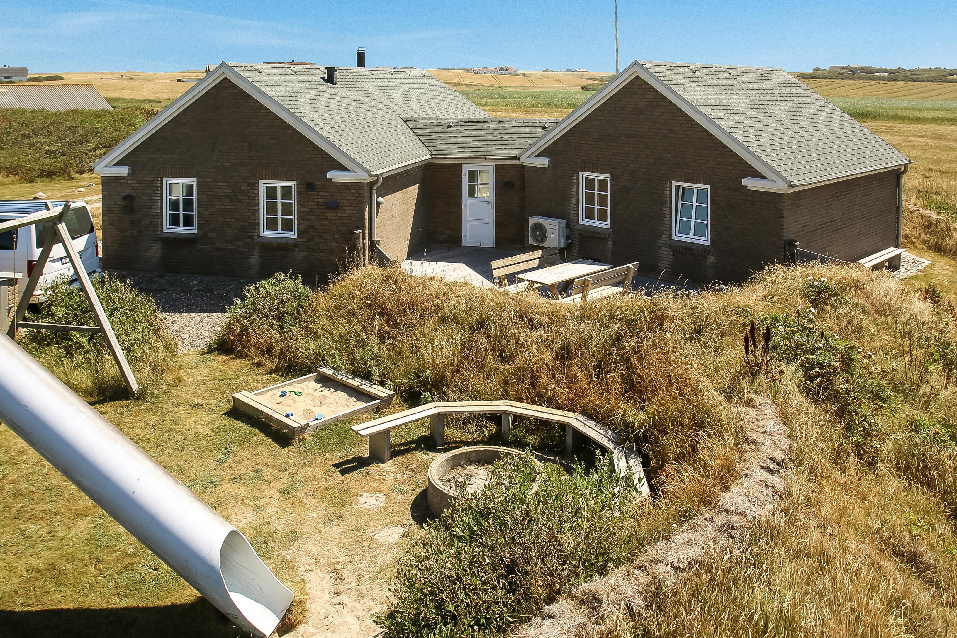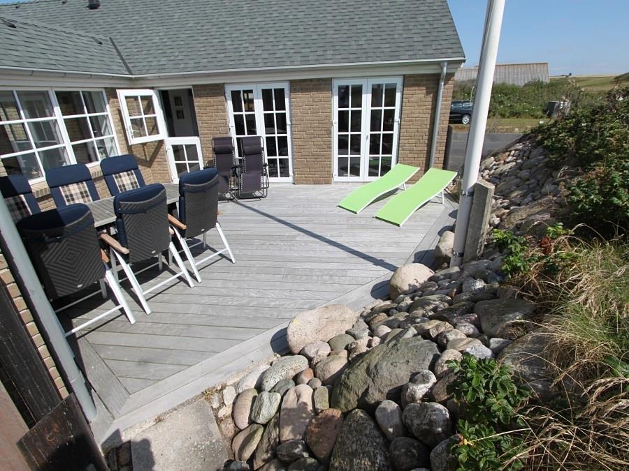 Das Haus hat mehrere gute Terrassen mit Gartenmöbeln , Grill und 2 Sonnenliegen. Eine von den Terrassen liegt über einem kleineren Felsen und ist geschlossen. Der Garten bietet auch einen Spielplatz für die Kinder mit Sandkasten, Schaukel und Rutsche. Es gibt auch eine Bank für die Erwachsenen, damit sie hier sitzen und die Kinder beim Spielen beobachten können. Es gibt hier ganz viele Möglichkeiten sich um das Haus zu setzen und den Blick über die Gegend schweifen zu lassen . Die Nordsee ist nicht weit weg und hier kann man sich sonnen, wandern, Drachen fliegen lassen oder angeln.