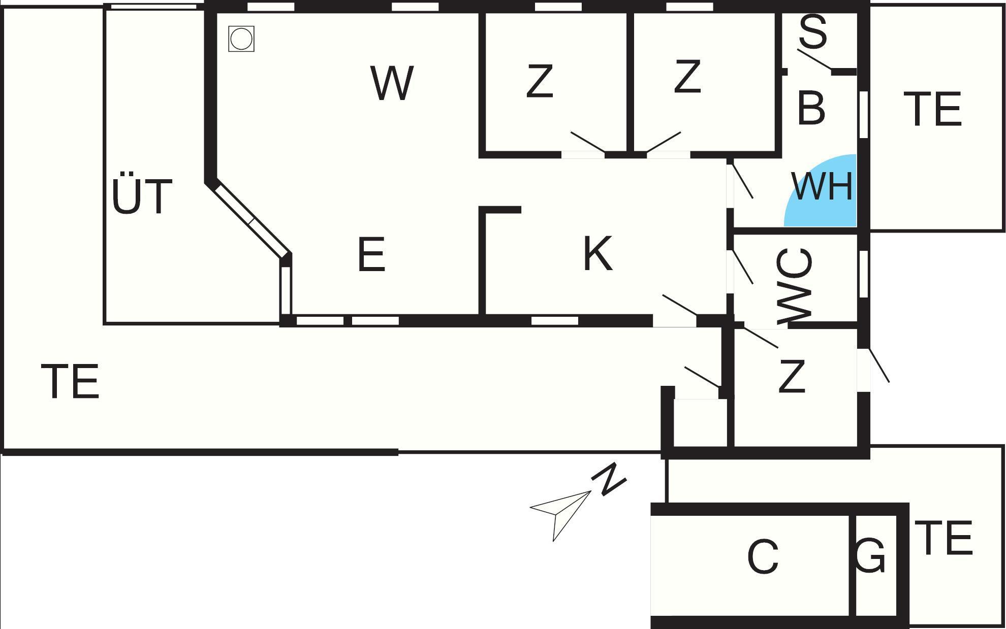 Bad: Waschm., WC, Waschb., Dusche, Fußbodenheiz.