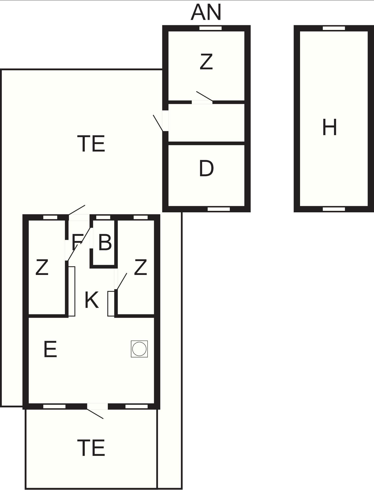 Das Ferienhaus ist mit einem offenen Küchen-/Wohnbereich mit Essecke und Holzofen, einem kleinen Badezimmer und zwei Schlafzimmern ausgestattet. Im Nebengebäude befindet sich ein weiteres Schlafzimmer mit zwei Einzelbetten. Im Haus befindet sich ein Fernseher, auf dem Sie Ihre eigenen TV-Dienste streamen können. Die Einrichtung ist hell und funktional gestaltet.