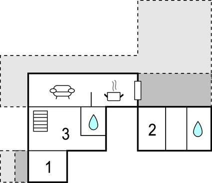 Das Haus ist schön eingerichtet und besteht aus einem Haupthaus und einem Nebengebäude. Im Haupthaus gibt es eine helle Küche, ein Wohnzimmer mit Holzofen, einen Fernseher und bequeme Möbeln. Von dem Wohnzimmer gehen ein paar Stufen hinunter zu einem offenen Raum mit einem Schlafsofa mit 2 Schlafplätzen. Von diesem Raum aus haben Sie Zugang zu einem Badezimmer mit Dusche. Das Schlafzimmer mit dem Doppelbett hat Zugang zu einer überdachten Terrasse. Die Tür zu diesem Schlafzimmer ist sehr niedrig.