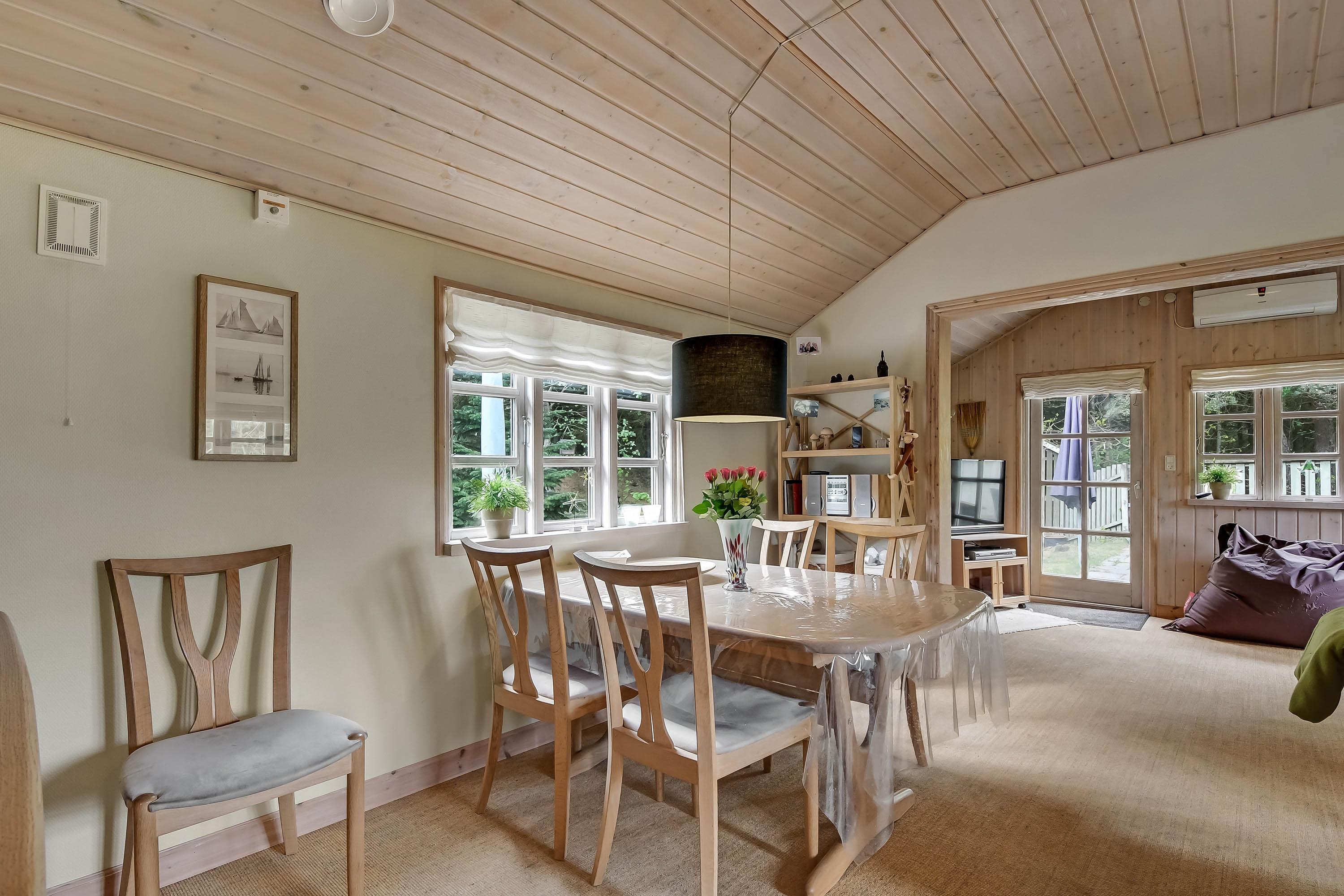 Ein helles, gepflegtes und gemütliches Ferienhaus mit Gästehaus, eingezäuntem Garten und herrlicher Lage zwischen Meer, Fjord und Wald.