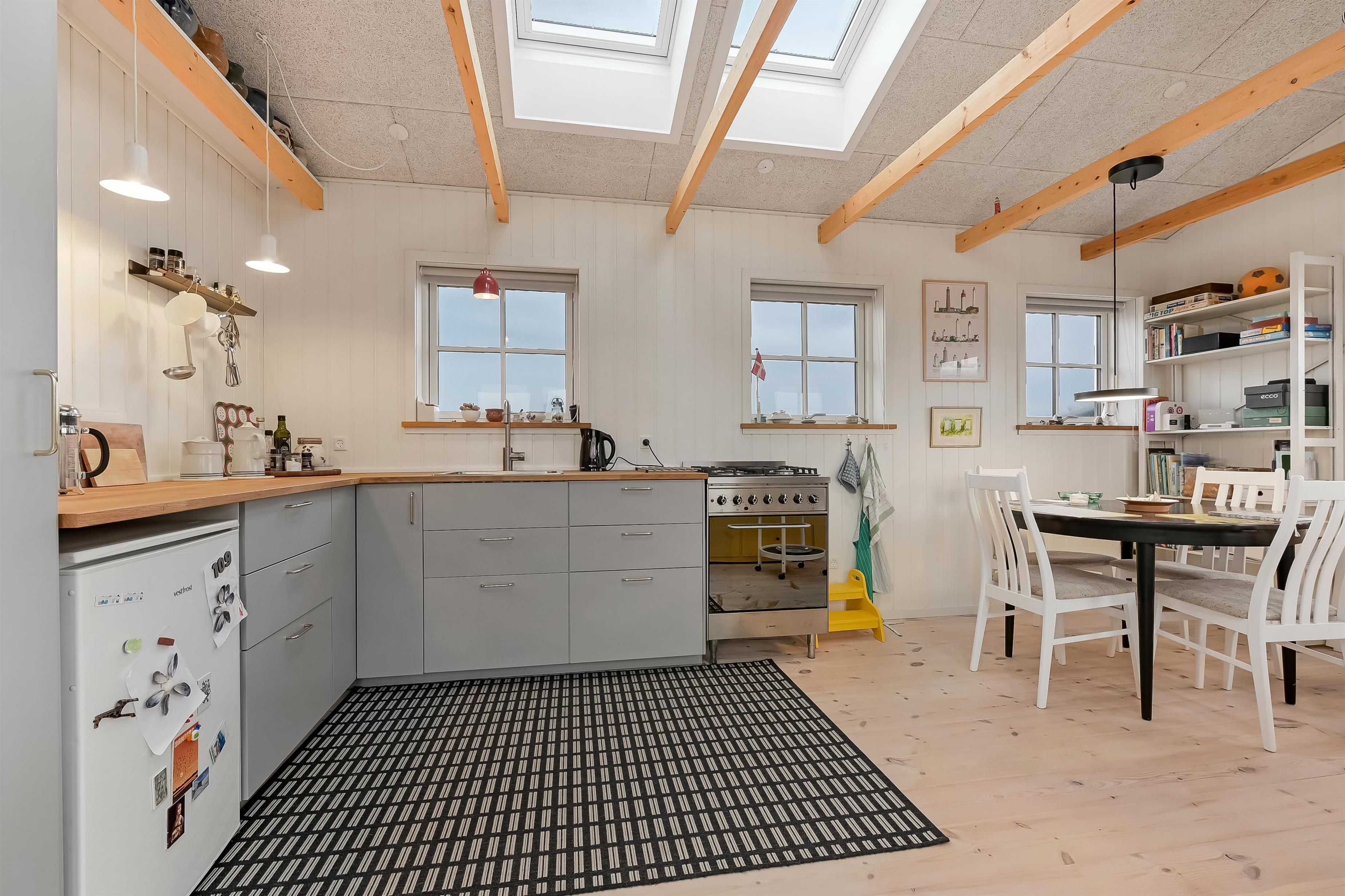 Das helle, einladende Häuschen bietet mit seiner gemütlichen Einrichtung echte Ferienhausstimmung. Es verfügt über ein Schlafzimmer mit Doppelbett, eine gut ausgestattete Küche und ein Bad mit Dusche und Fußbodenheizung. Auf der großen Terrasse könnt ihr nach Herzenslust entspannen und die Sonne, die Seeluft und vielleicht ein leckeres Essen unter freiem Himmel genießen.