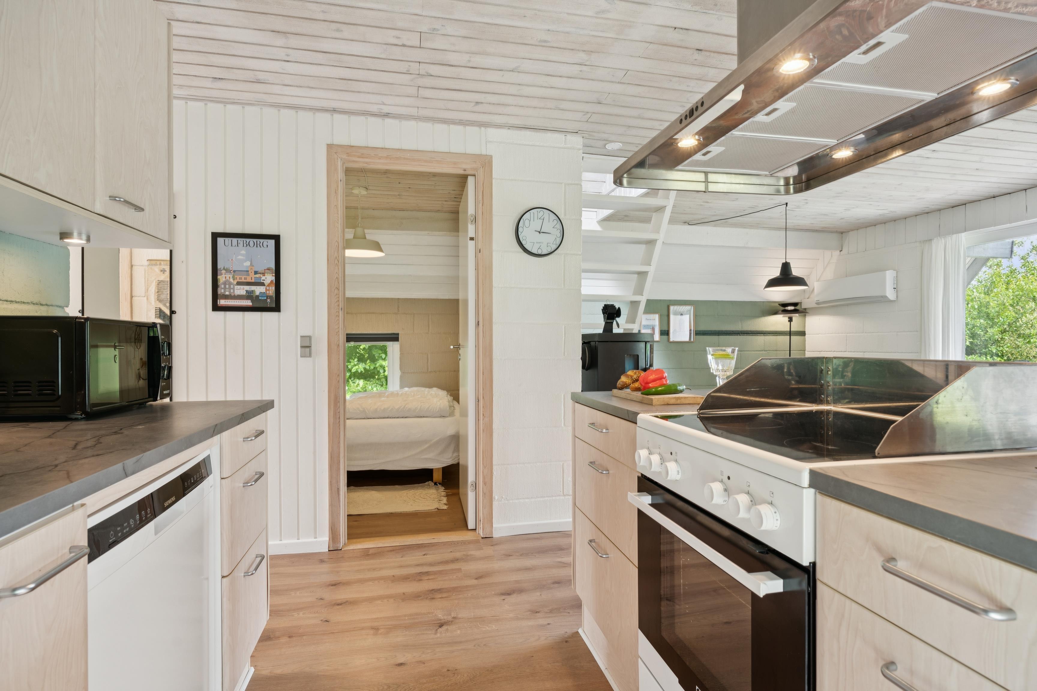 In der Wohnküche im Erdgeschoss kann man gemeinsam kochen, Brettspiele spielen und an kühlen Tagen die gemütliche Atmosphäre des Holzofens genießen. Das Haus verfügt über eine Wärmepumpe und eine Fußbodenheizung im Badezimmer, die das ganze Jahr über für Komfort sorgen. Im ersten Stock können Sie sich bei einem guten Film entspannen und vom Balkon aus haben Sie einen schönen Blick auf den Garten.