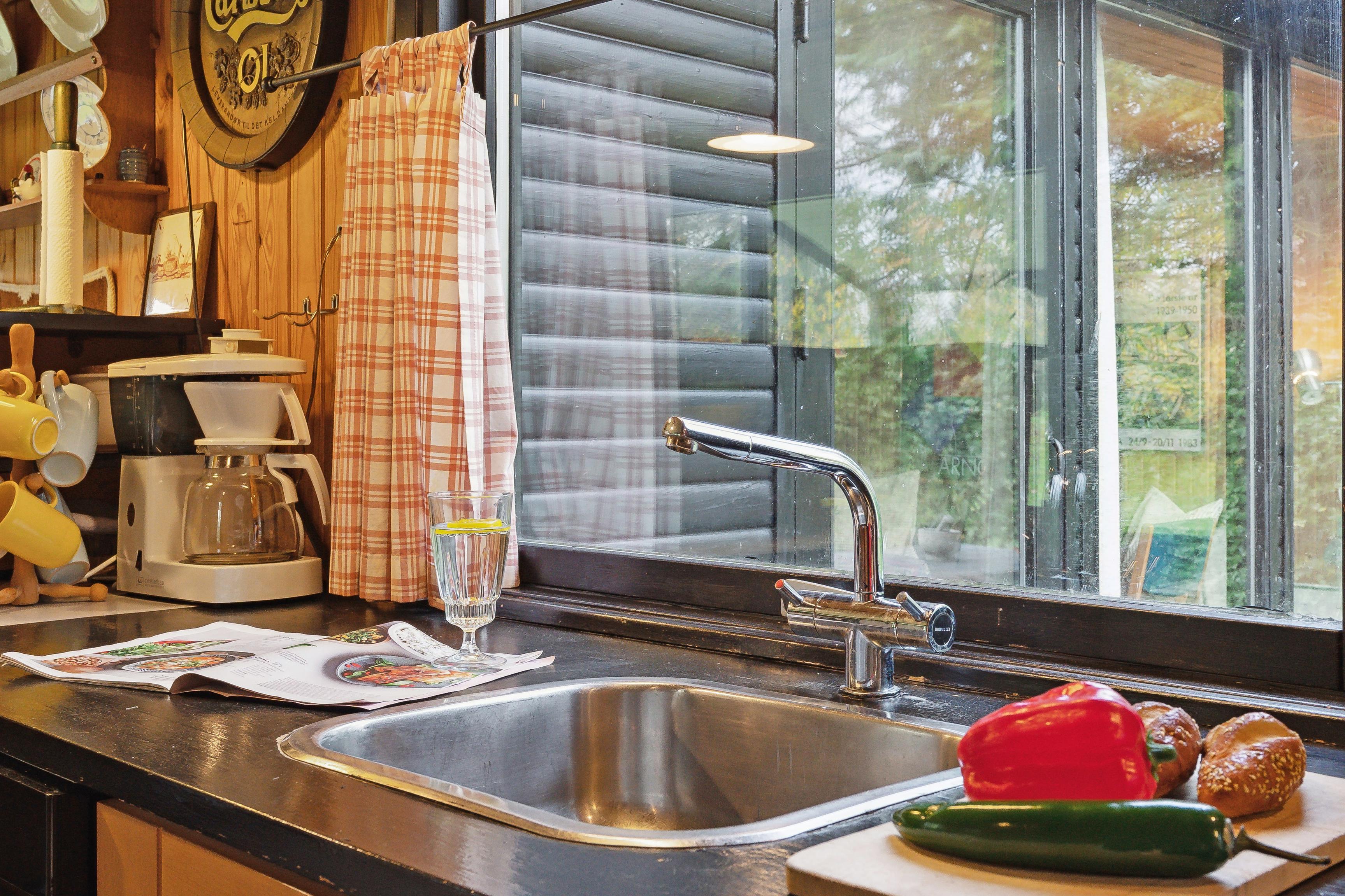 Das Ferienhaus verfügt über eine offene Wohnküche, die mit dem Ess- und Wohnbereich einen wunderbaren Rahmen für das Familienleben schafft. Die vielen Fenster sorgen für viel Licht und einen schönen Blick in die Natur. Vom Wohnzimmer aus gelangt man direkt auf die große Terrasse, auf der auch ein Grill zur Verfügung steht.