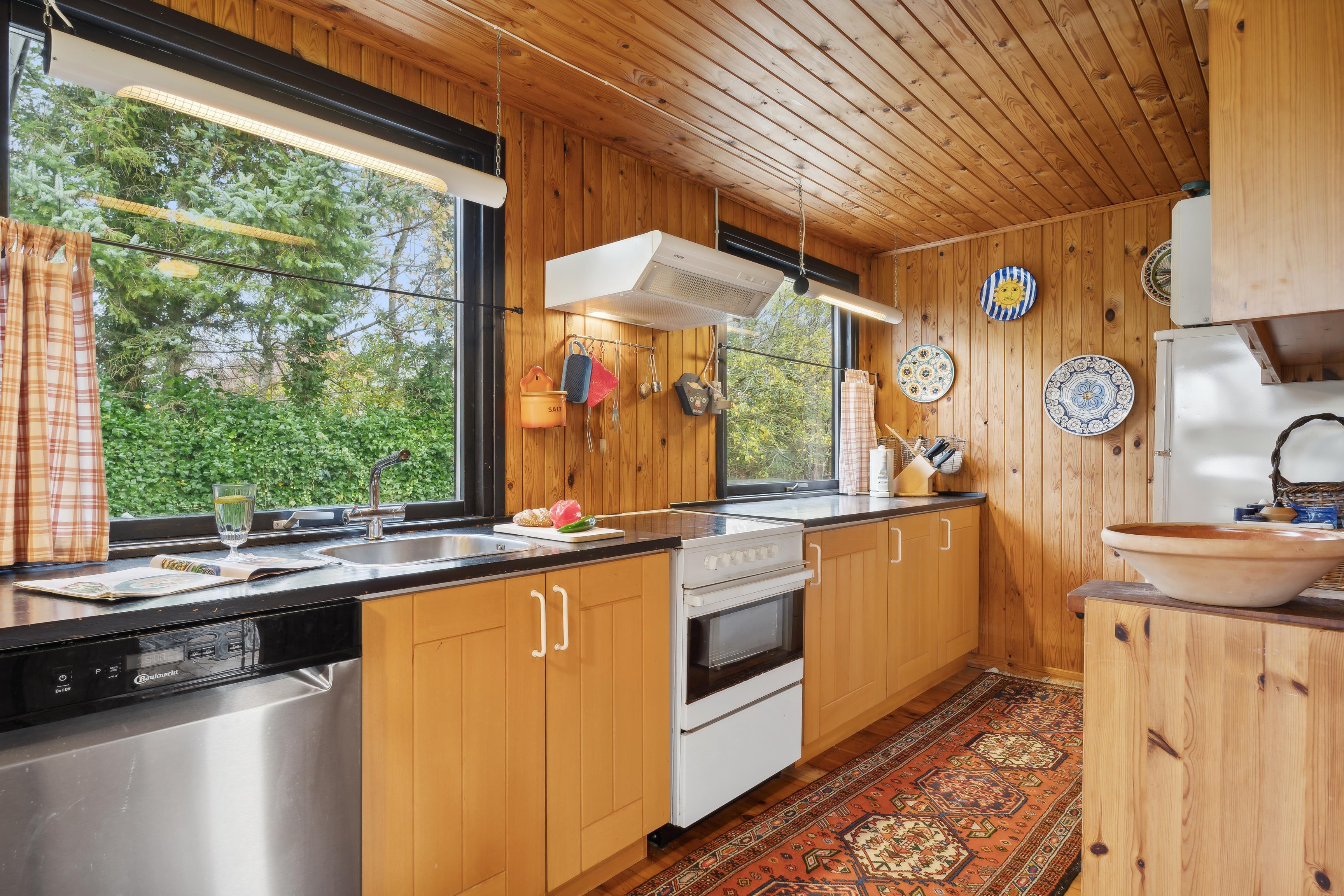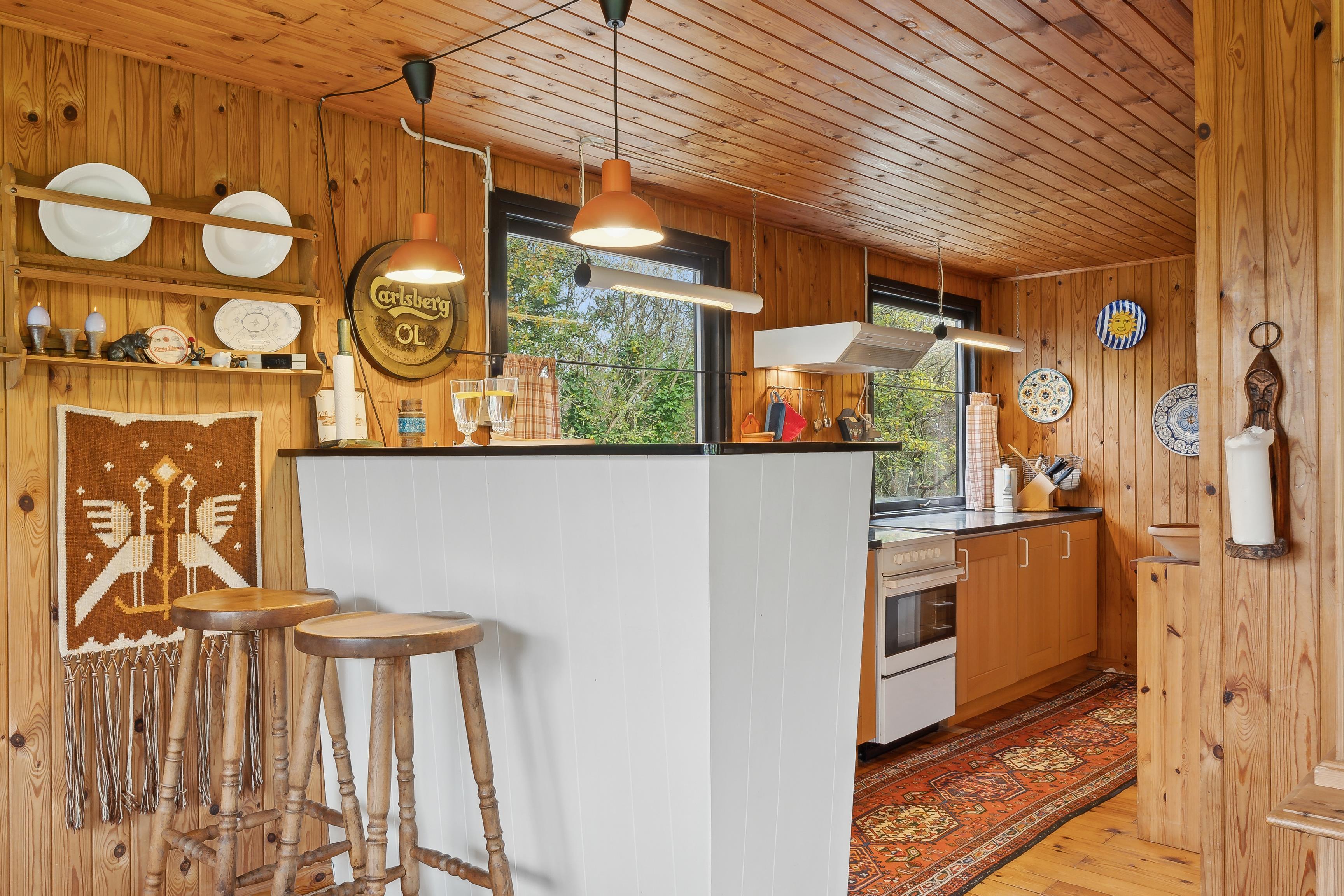 Dieses charmante Ferienhaus in Nr. Fjand wurde 1970 erbaut und in seinem alten, authentischen Stil erhalten. Es liegt in einer schönen, natürlichen Umgebung. Im Inneren finden Sie eine gemütliche Atmosphäre mit einer persönlichen Note, historischen Details und großen Fenstern, die für viel Tageslicht sorgen. Das Haus verfügt über eine große Terrasse, ideal für sonnige Tage und gemütliche Grillabende.