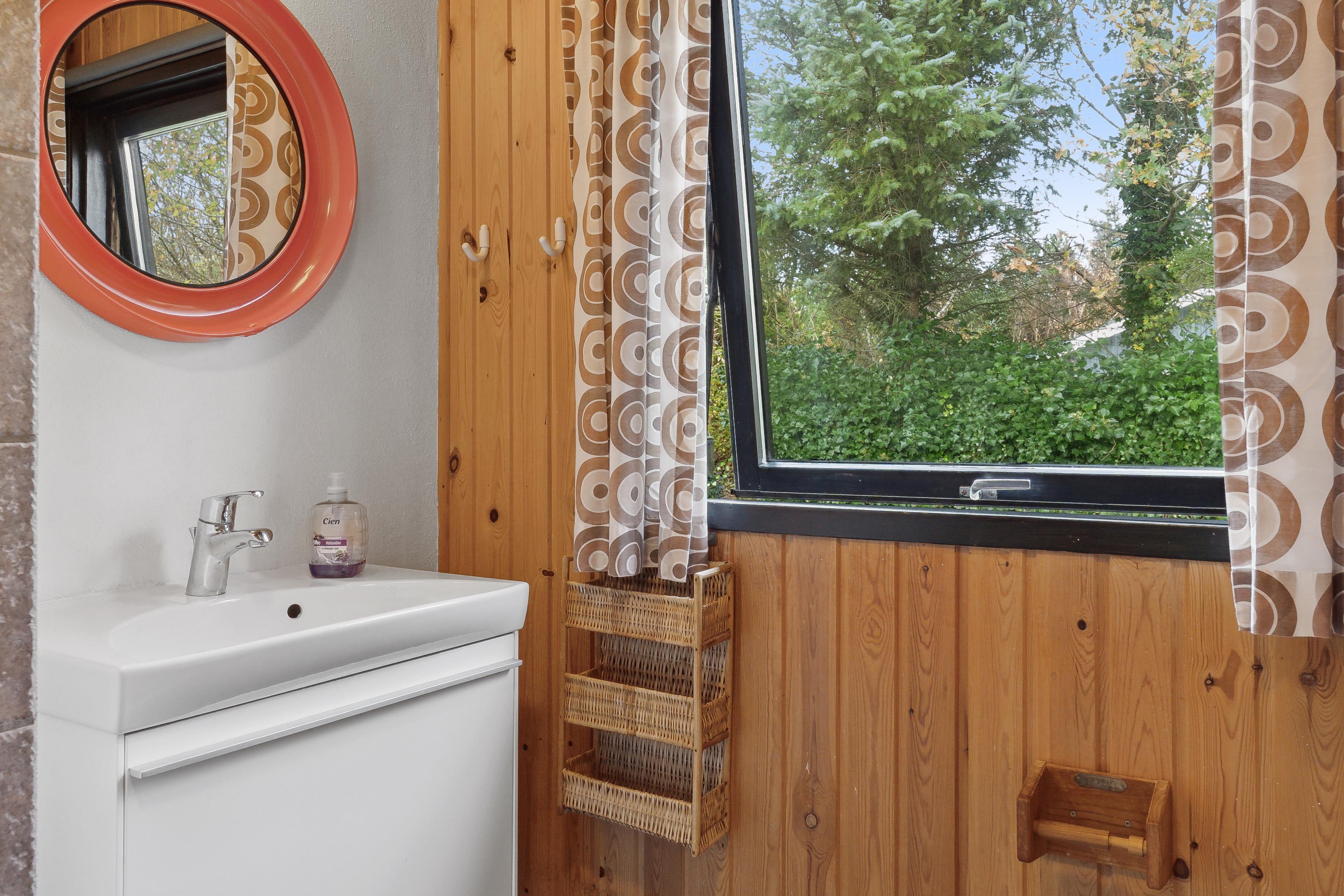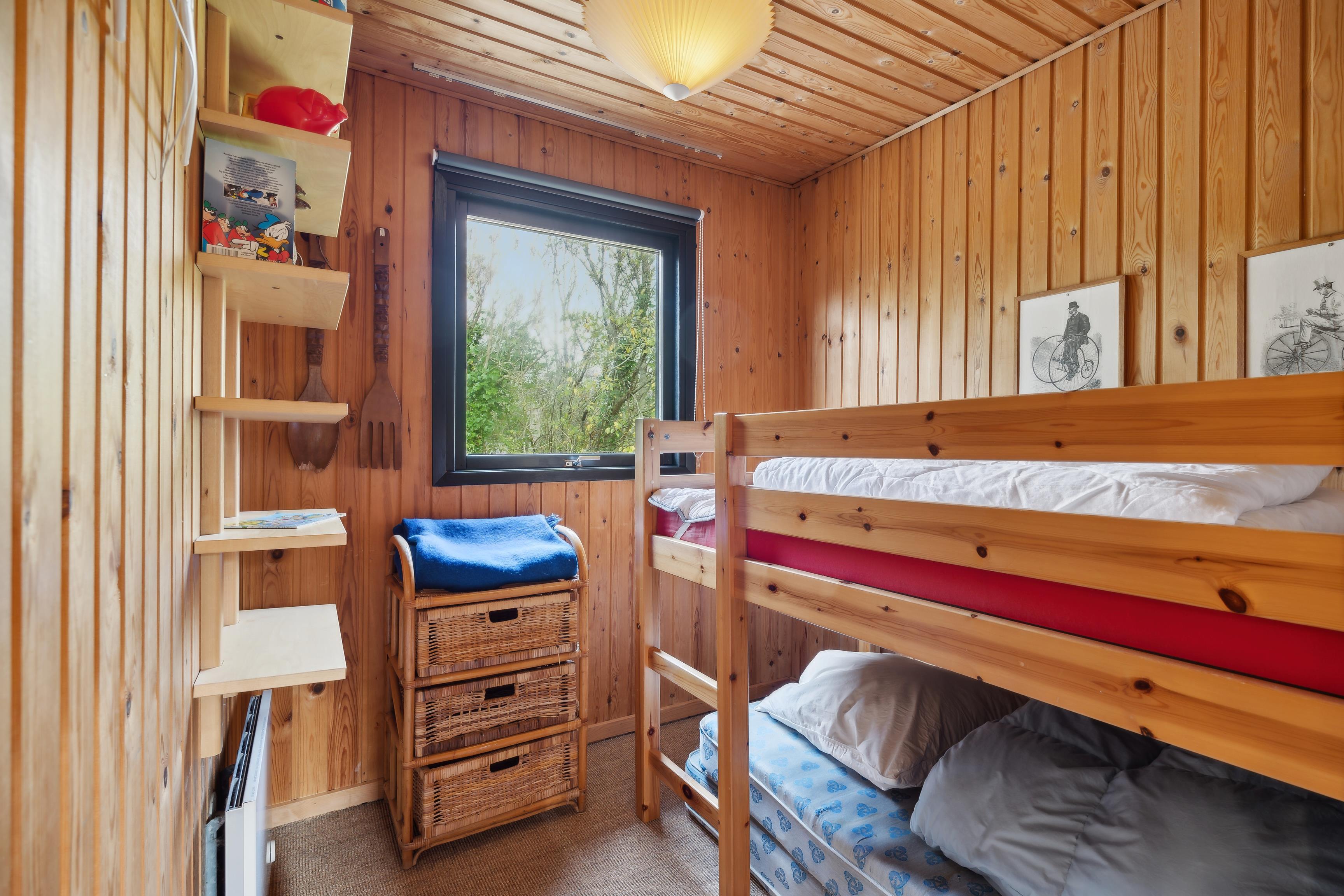 Neben einem Badezimmer mit Fußbodenheizung und Dusche verfügt das Haus über vier Schlafzimmer: eines mit Doppelbett, zwei mit je einem Einzelbett und ein viertes mit Etagenbett.