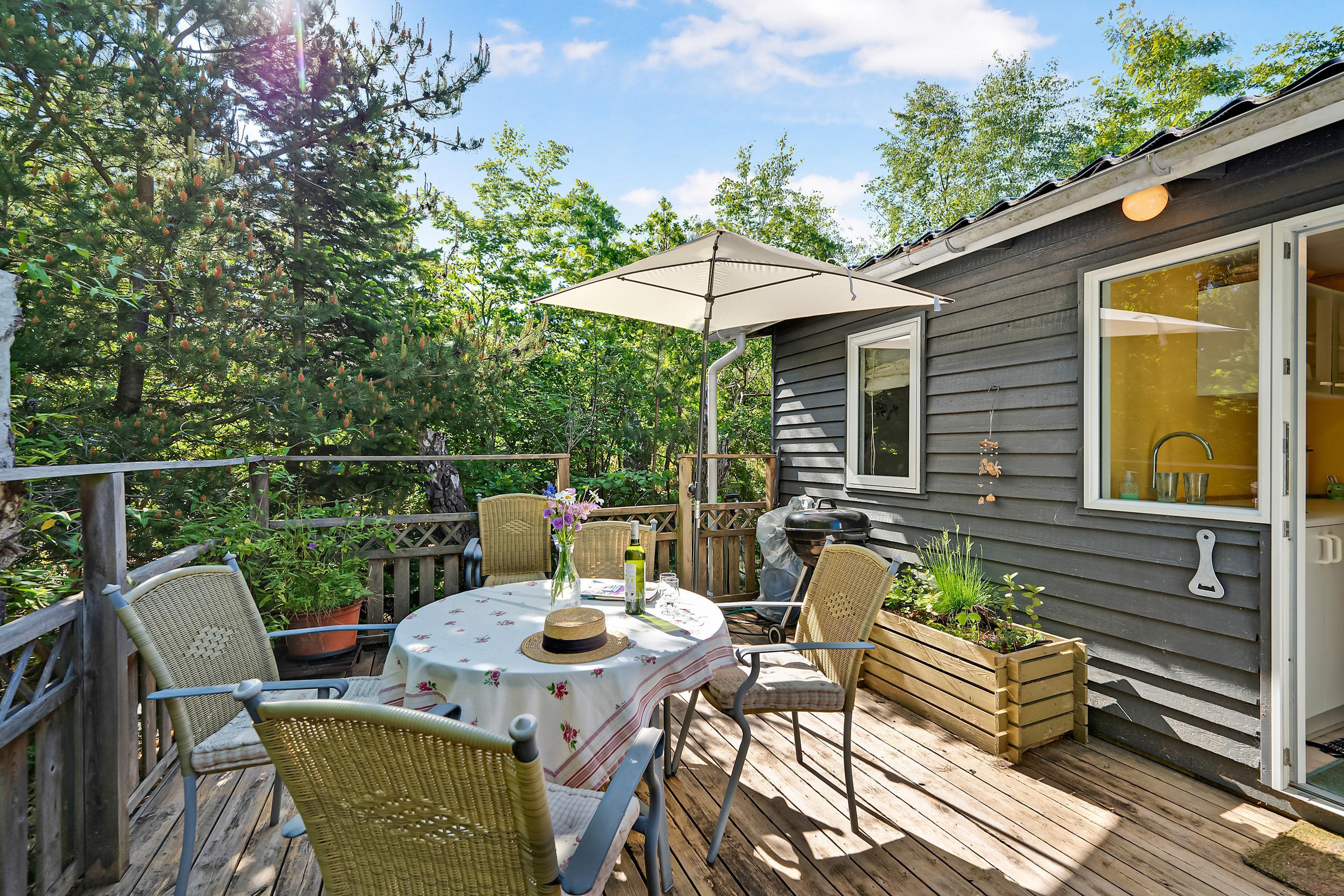 Nicht weit von einem der besten und kinderfreundlichsten Sandstrände Jütlands entfernt, finden Sie dieses kleine, 37 m² große, authentische Ferienhaus. Das Haus liegt zurückversetzt auf einem nahezu ungestörten Grundstück, auf dem Natur und Leben im Freien wichtiger sein sollten als Komfort. Hier finden Sie ein kleines, gemütliches Wohnzimmer mit Holzofen und Wärmepumpe sowie einem Fernseher. Kleine Küche mit Kühl- und Gefrierschrank sowie zwei Kochfeldern und einem Kombibackofen. Von der Küche aus haben Sie Zugang zu einer schönen Terrasse mit Grill, Gartenmöbeln und Sonnenschirm. Die Schlafgelegenheit des Hauses besteht aus zwei kleinen Zimmern, eines mit einem Doppelbett (140 cm x 185 cm) und ein Zimmer mit zwei Einzelbetten (80 cm x 185 cm & 80 x 190 cm). Kleines Badezimmer mit Dusche. Am Eingang befindet sich eine überdachte Terrasse mit Außenkamin, auf der Sie bis spät in die Nacht gemütlich sitzen können. Und Mitbringen eines Hundes ist gestattet.