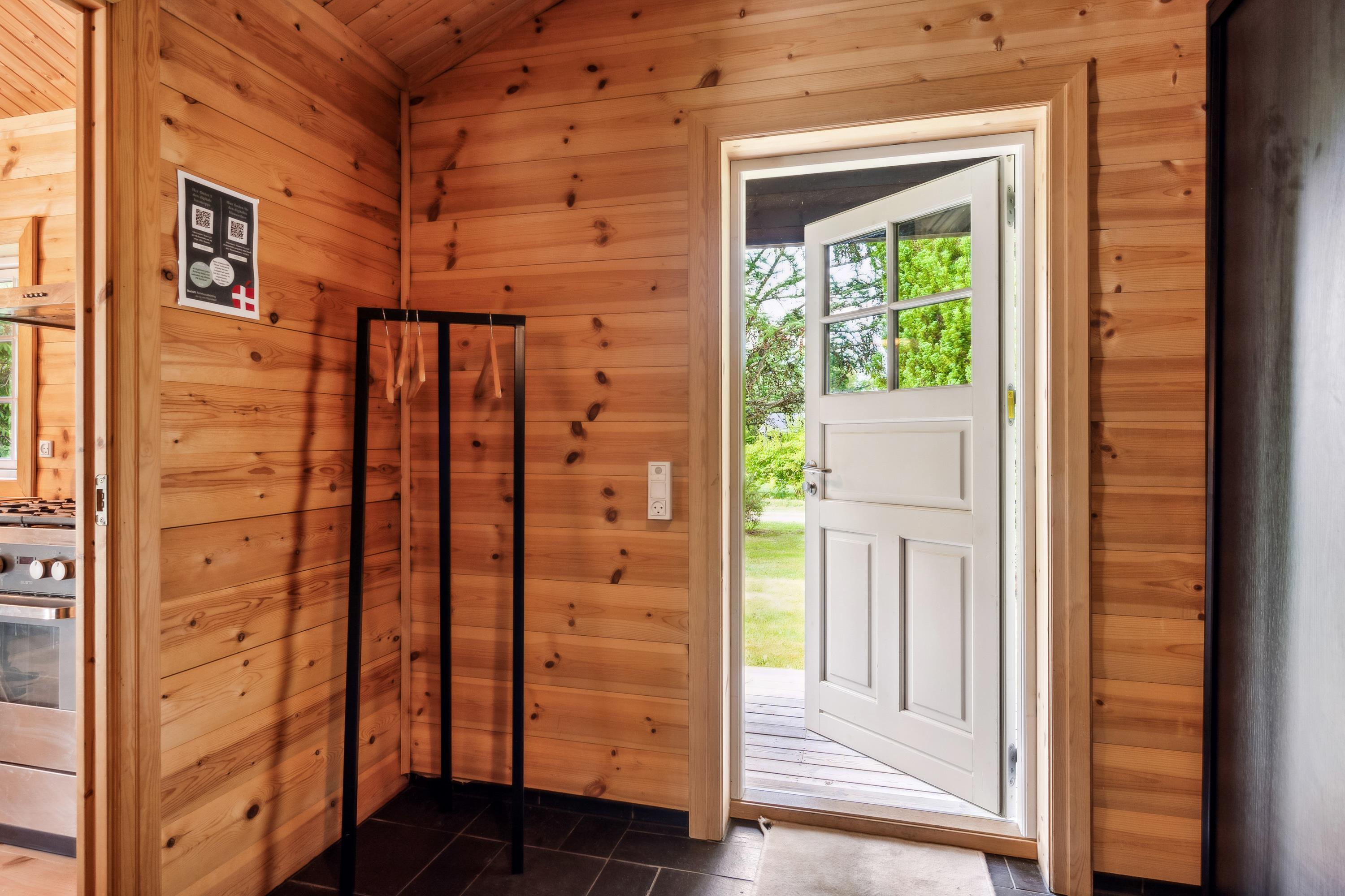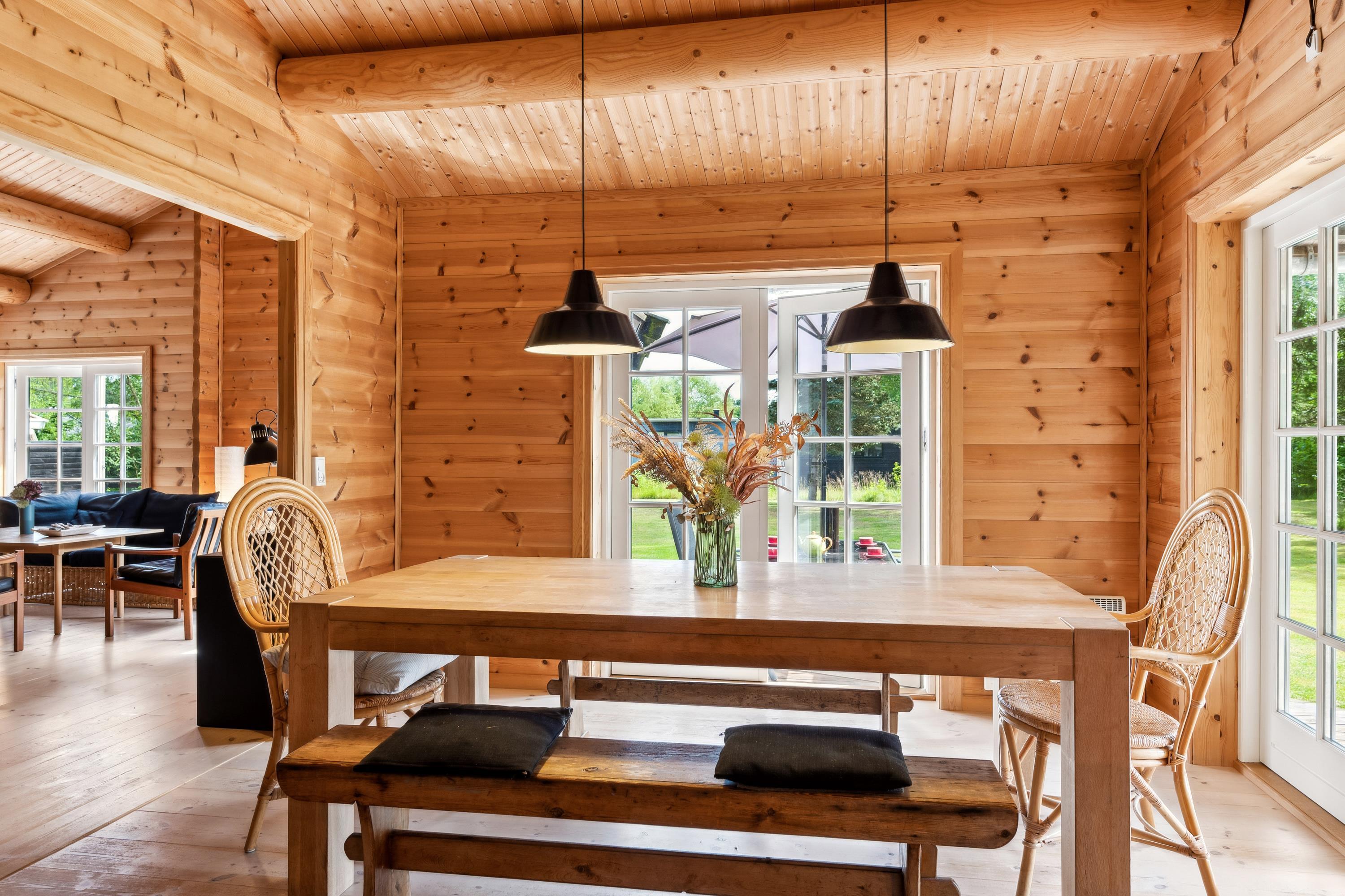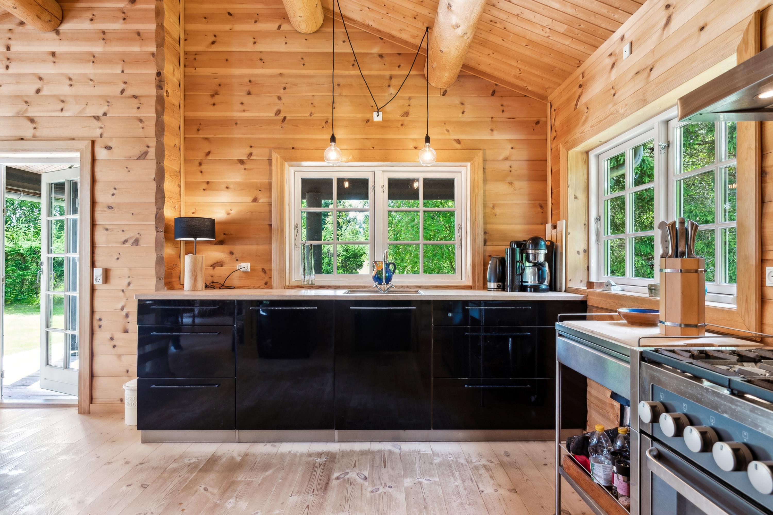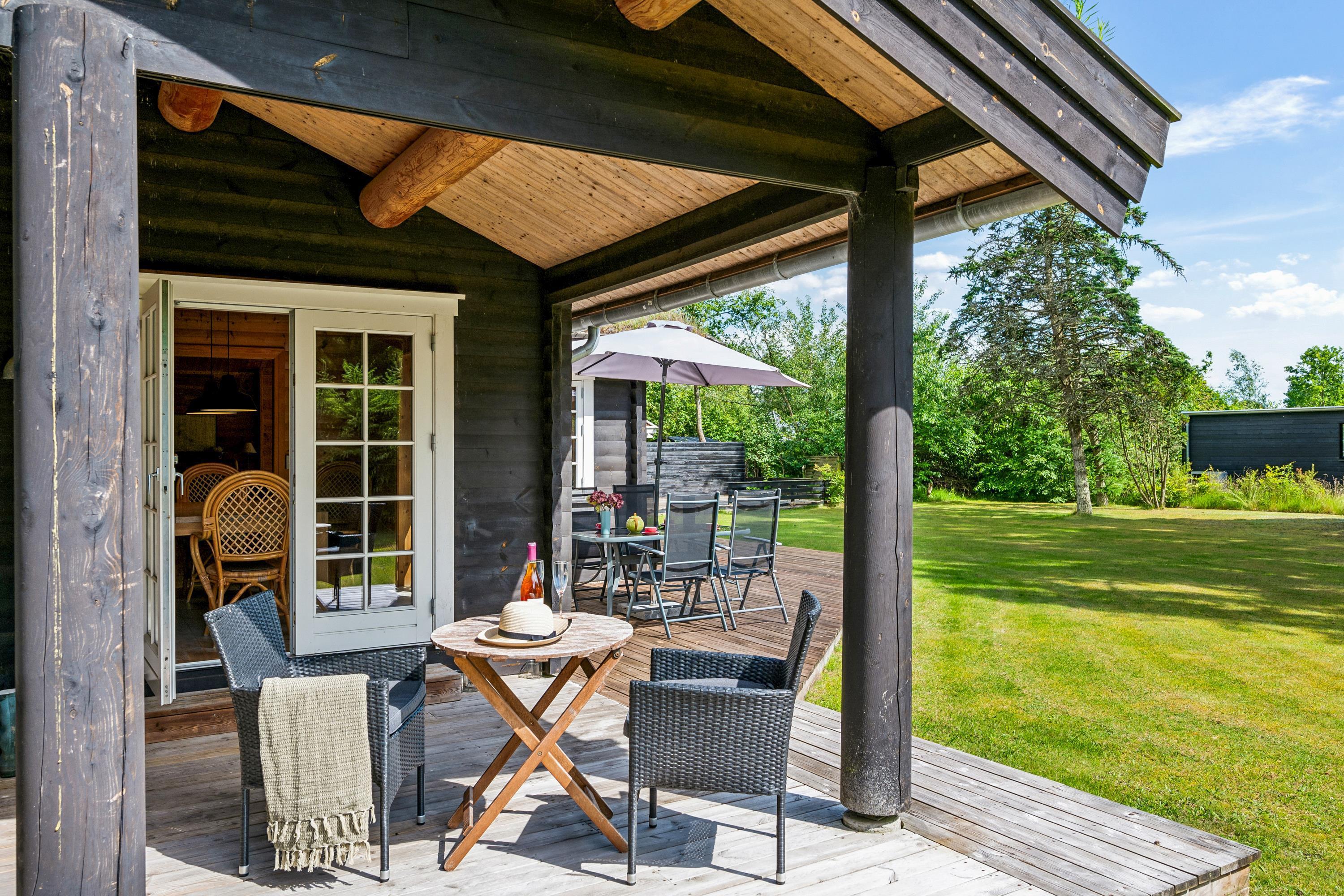 Exklusives, schwarzes, norwegisches Blockhaus. Das große Naturgrundstück ist von Bäumen eingeschlossen und bietet Platz für Spiel und Aktivität. Eine große, teilweise überdachte Terasse umschließt das Haus, die mit Gartenmöbeln und Grill ausgestattet ist. In dem großen gemütlichen Wohnzimmer befinden sich ein Holzofen und ein TV zum Streamen vom eigenen ChromeCast. Die angrenzende, offene Küche verfügt über einen exklusiven Herd mit sechs Gasflammen, eine Kühl-Gefrier-Kombination und Geschirrspüler. Im Eingangsbereich befinden sich zudem Waschmaschine und Trockner. Das große, schöne Badezimmer in norwegischem Schiefer verfügt über eine geräumige Dusche und eine Badewanne. Die Schlafplätze verteilen sich auf 2 Schlafzimmer, eins mit Doppelbett und eins mit zwei Einzelbetten. Das gemütliche Ferienhaus liegt in einem Gebiet das vielfältige Möglichkeiten zu Aktivitäten und zum Angeln bietet und über einen kinderfreundlichen Strand verfügt. Zudem liegen vieleTouristenattraktionen Djurslands, wie z.B. Djurs Sommerland, Randers Regenwald und Kattegatcenteret, in der Nähe .