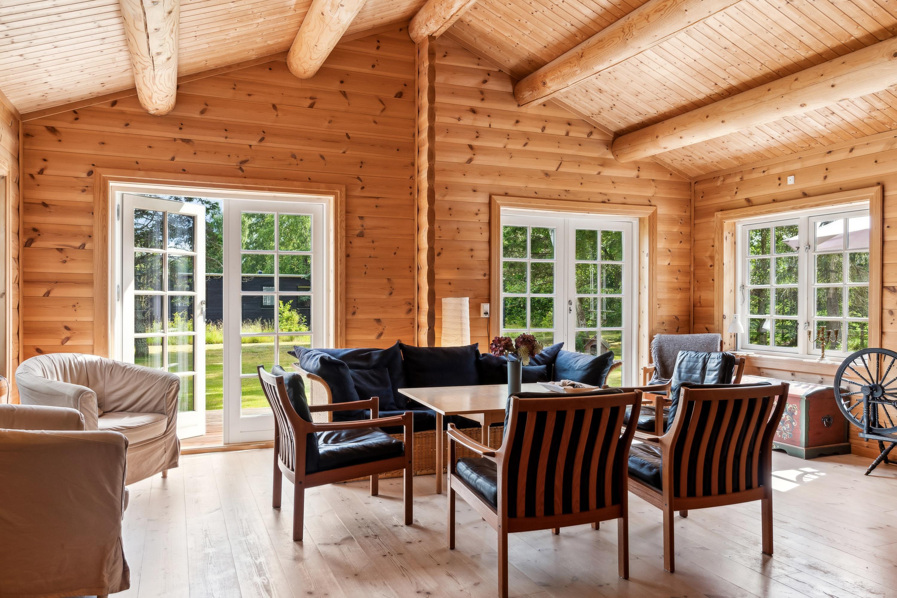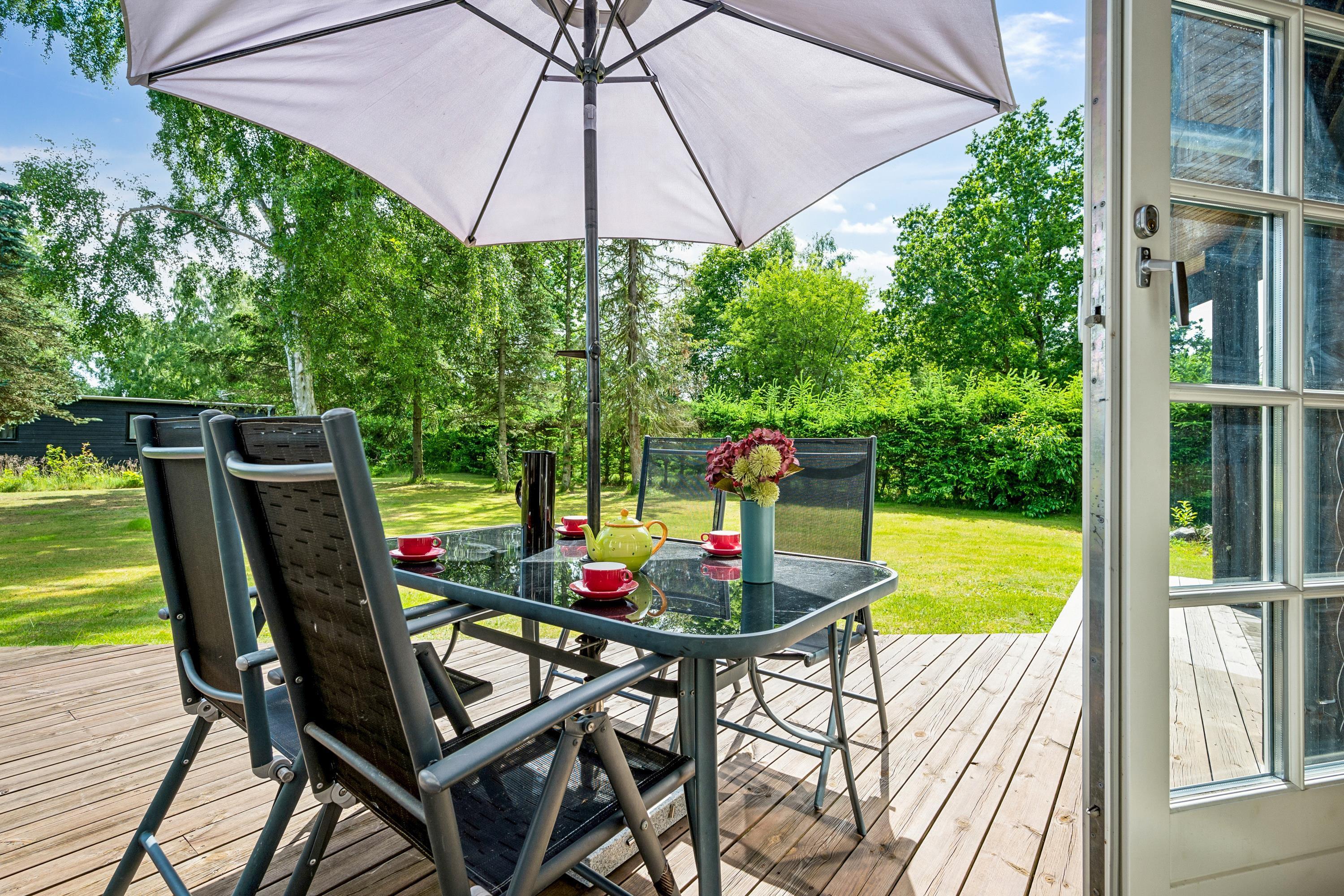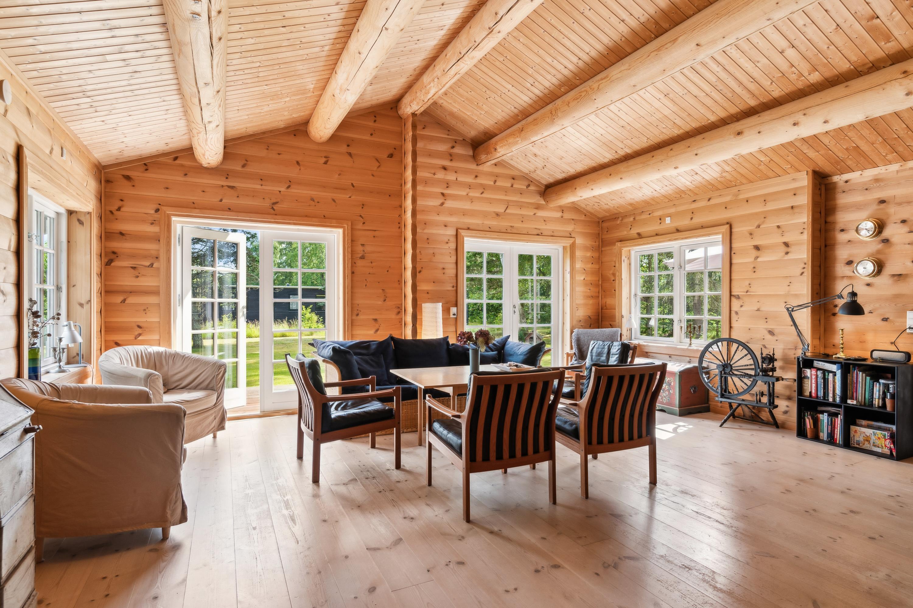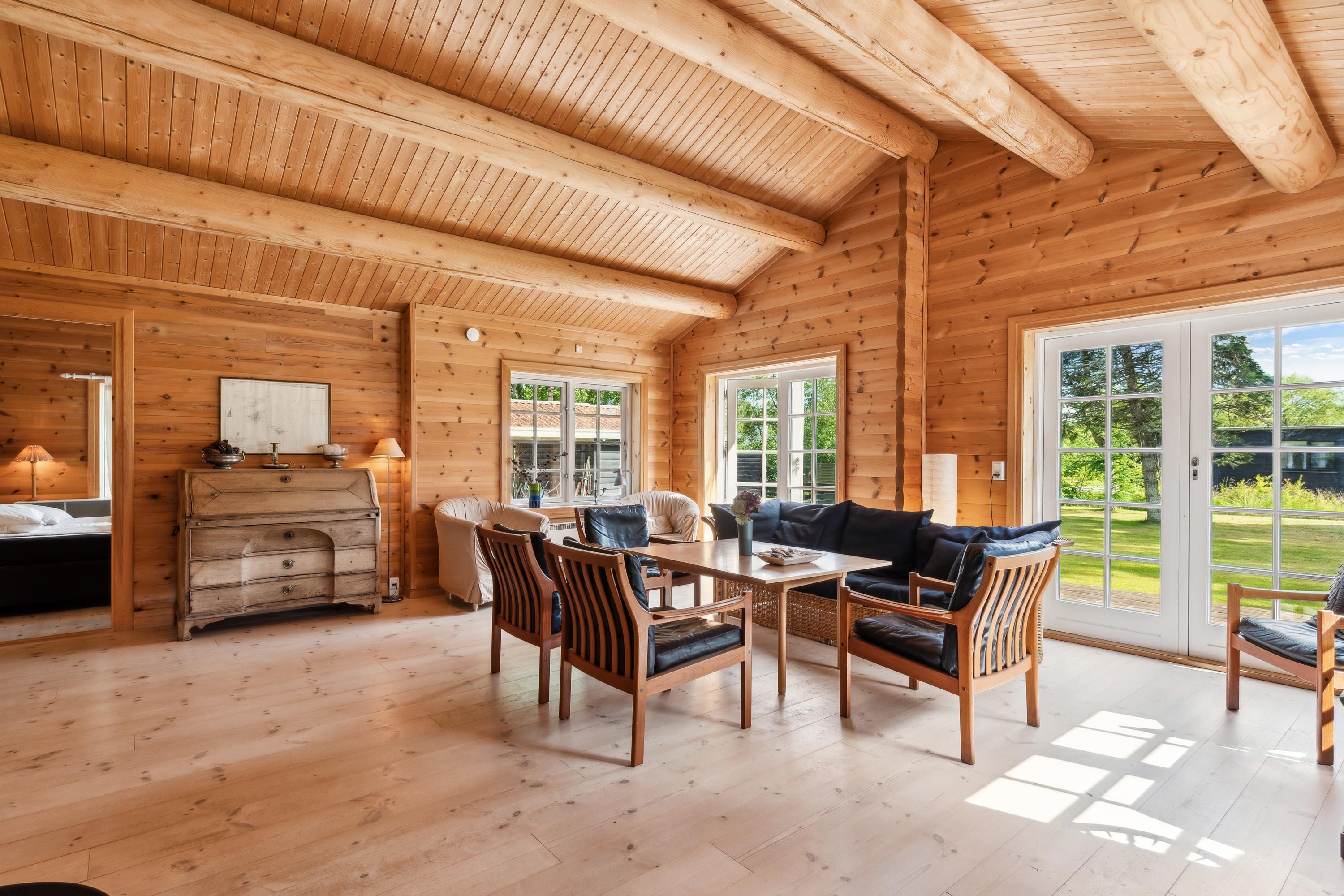 Exklusives, schwarzes, norwegisches Blockhaus. Das große Naturgrundstück ist von Bäumen eingeschlossen und bietet Platz für Spiel und Aktivität. Eine große, teilweise überdachte Terasse umschließt das Haus, die mit Gartenmöbeln und Grill ausgestattet ist. In dem großen gemütlichen Wohnzimmer befinden sich ein Holzofen und ein TV zum Streamen vom eigenen ChromeCast. Die angrenzende, offene Küche verfügt über einen exklusiven Herd mit sechs Gasflammen, eine Kühl-Gefrier-Kombination und Geschirrspüler. Im Eingangsbereich befinden sich zudem Waschmaschine und Trockner. Das große, schöne Badezimmer in norwegischem Schiefer verfügt über eine geräumige Dusche und eine Badewanne. Die Schlafplätze verteilen sich auf 2 Schlafzimmer, eins mit Doppelbett und eins mit zwei Einzelbetten. Das gemütliche Ferienhaus liegt in einem Gebiet das vielfältige Möglichkeiten zu Aktivitäten und zum Angeln bietet und über einen kinderfreundlichen Strand verfügt. Zudem liegen vieleTouristenattraktionen Djurslands, wie z.B. Djurs Sommerland, Randers Regenwald und Kattegatcenteret, in der Nähe .