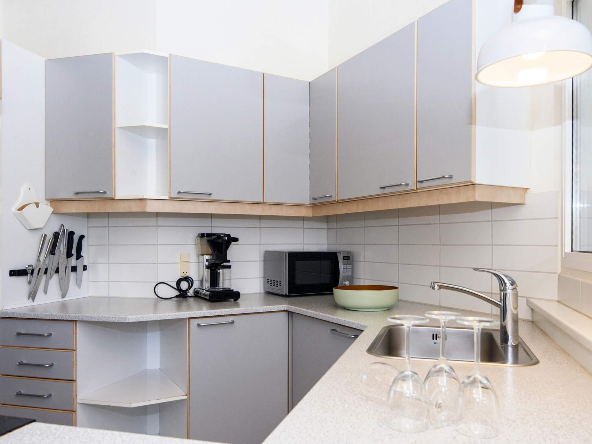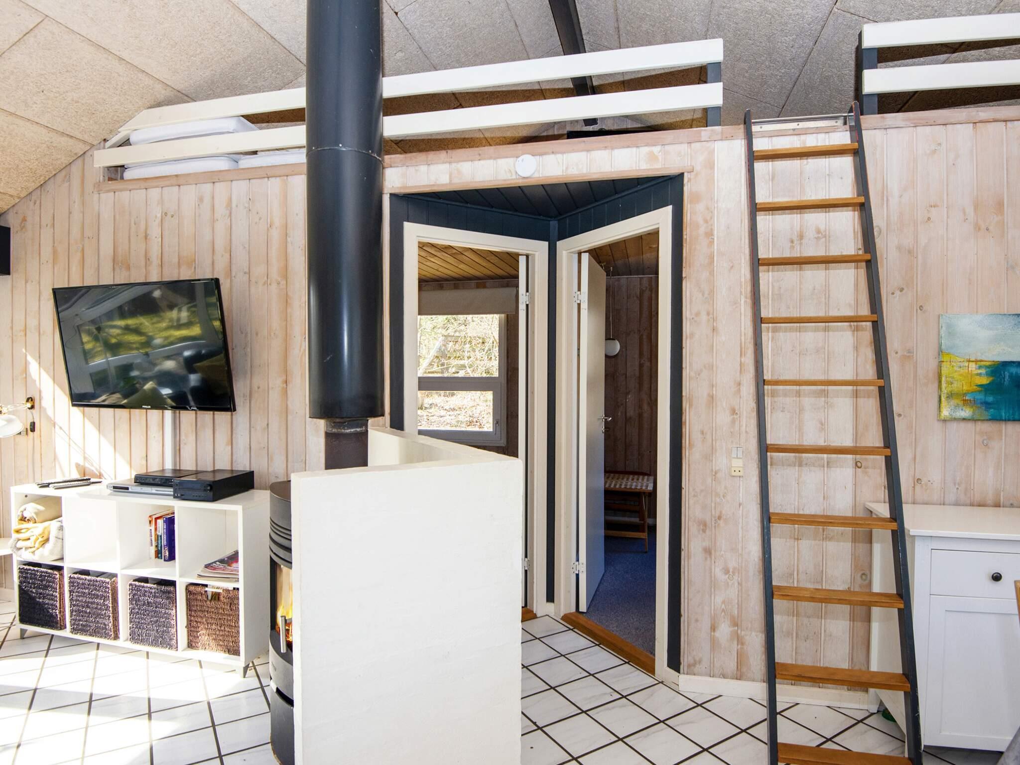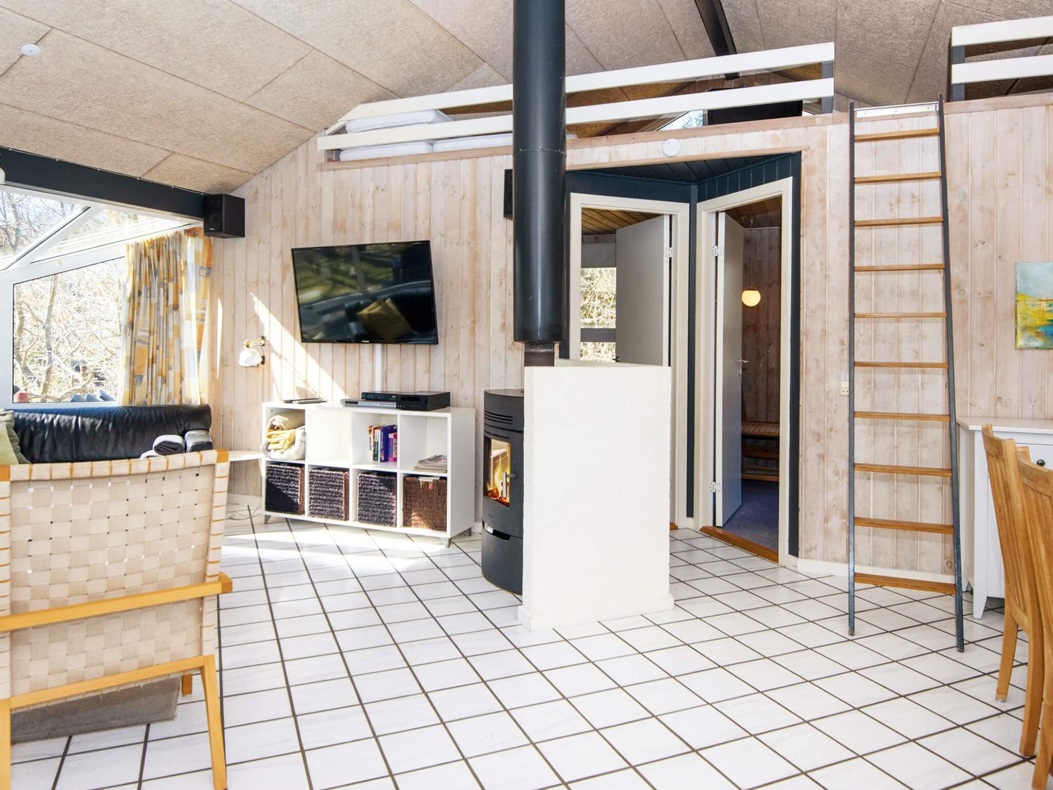 Der geräumige Küchen-/Wohnbereich mit Essecke ist gut ausgestattet, u.a. mit Geschirrspüler, Mikrowelle und Gefrierschrank. Im Wohnbereich gibt es einen Holzofen und einen Fernseher mit deutschen TV-Sendern zur Auswahl. Das Haus ist zudem mit Kinderbett, Hochstuhl, Waschmaschine und Wäschetrockner sowie Solarium ausgestattet. Die Schlafzimmer sind alle 4 recht geräumig und bieten Schrankplatz. Außerdem gibt es unter dem Dach einen Hems mit zwei weiteren Schlafplätzen.
