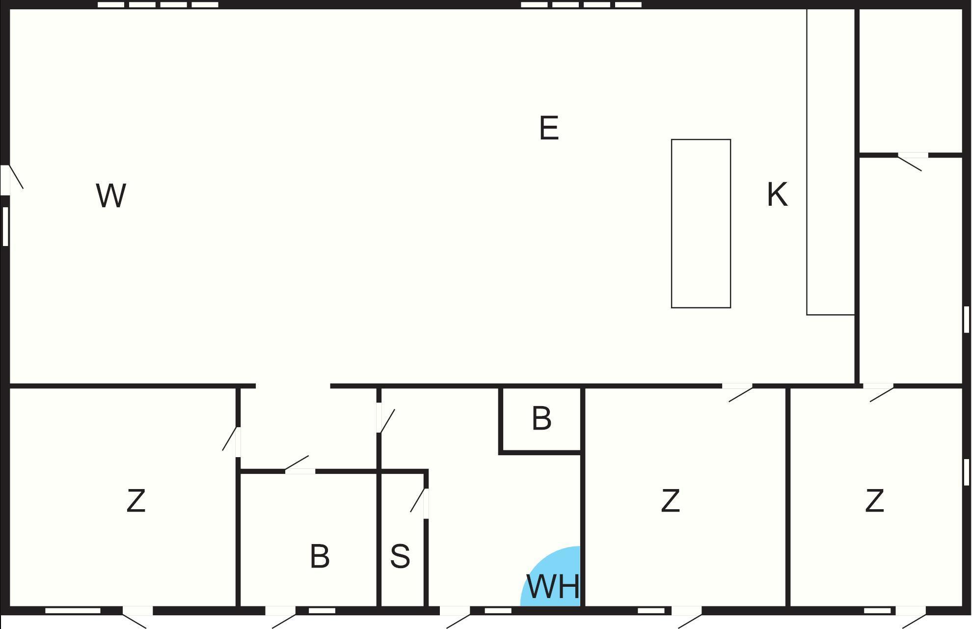 Das Haus verfügt zudem über drei Schlafzimmer und einen großen, ansprechend ausgestatteten Küchen-/Wohnbereich mit langem Esstisch und Kaminofen für gemütliche Abende.