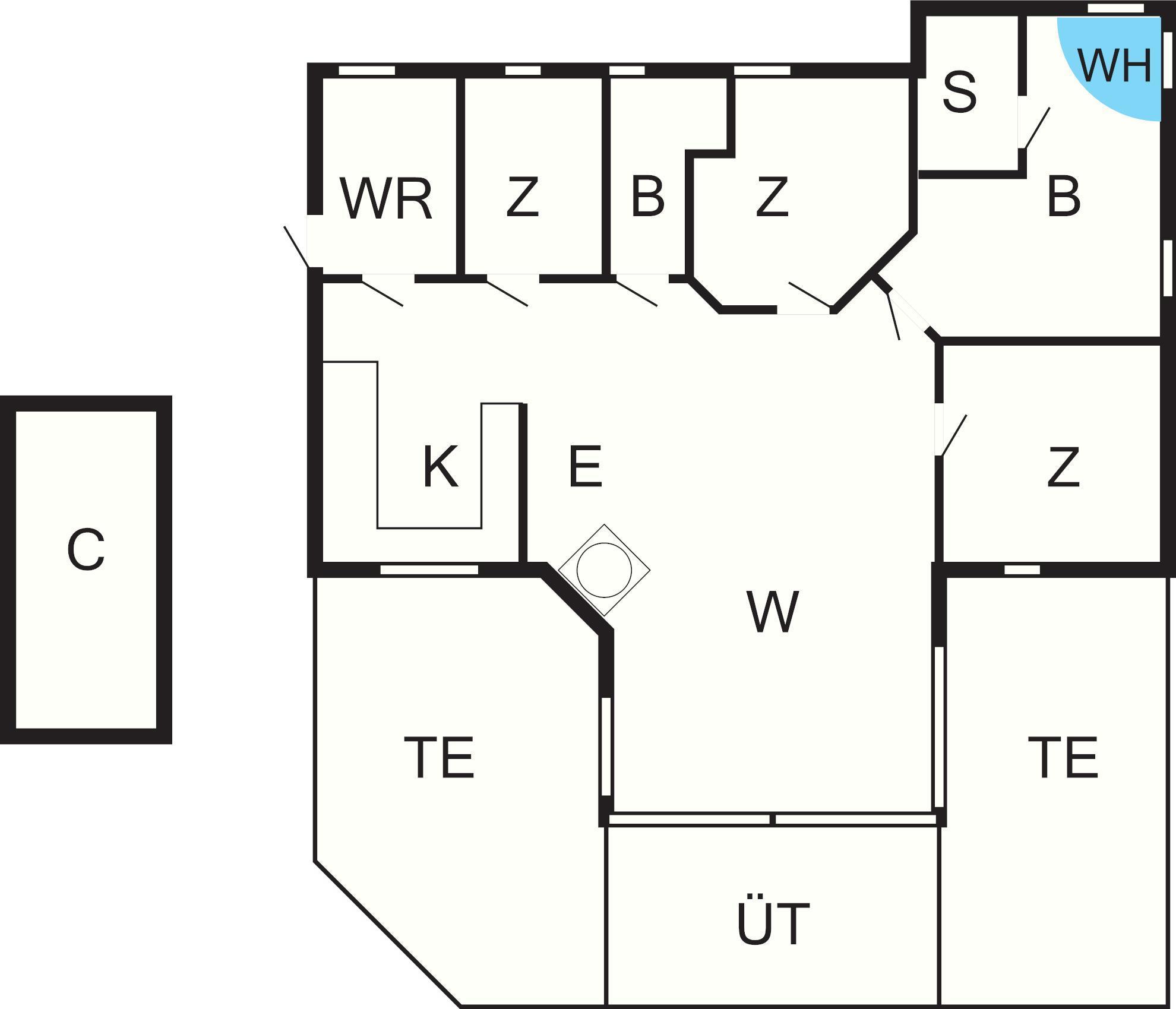 Bad: Waschm., WC, Waschb., Dusche, Fußbodenheiz.