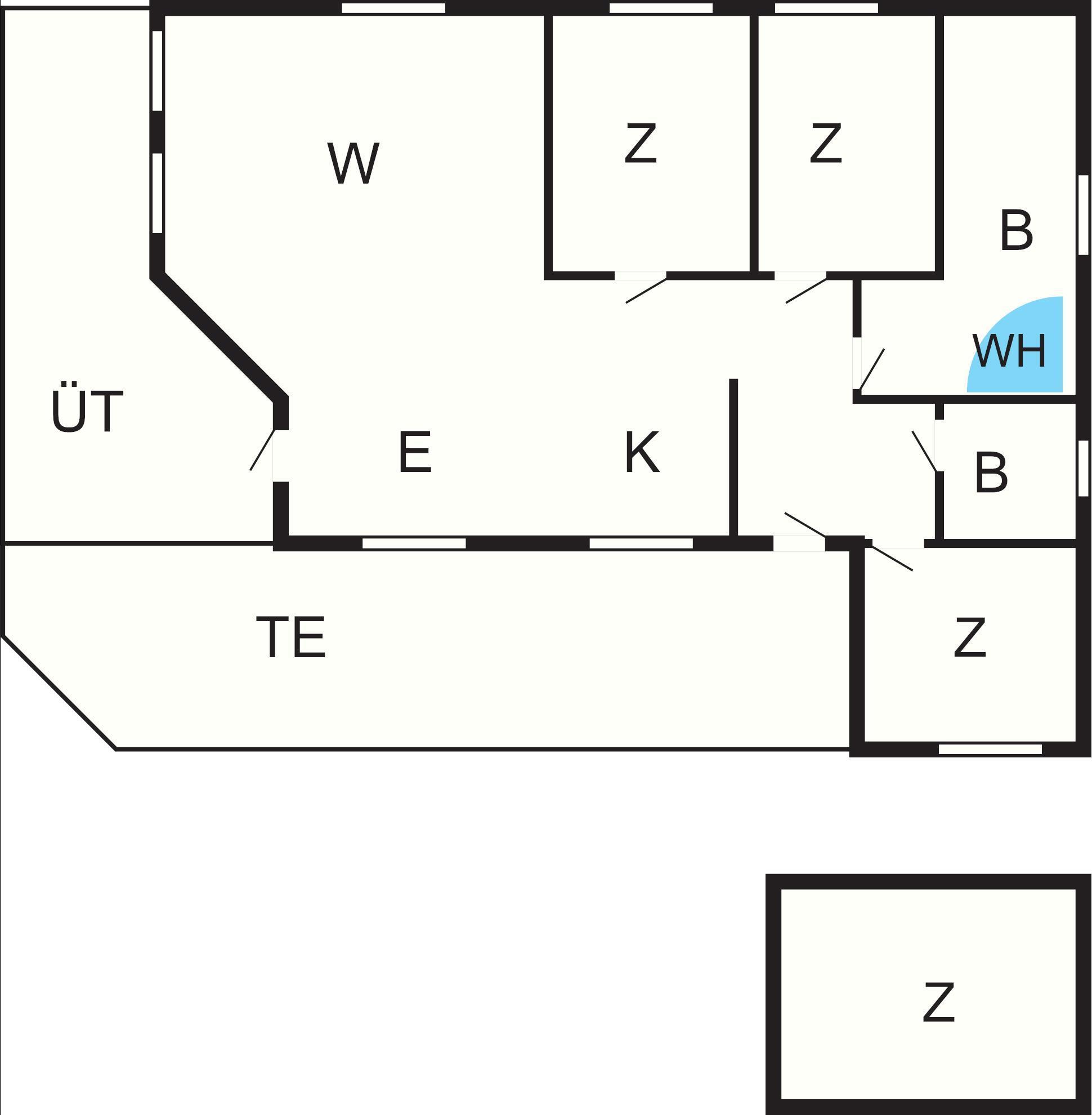 Bad: Waschm, Trockner, WC, Waschb., Dusche, Fußbodenheiz.