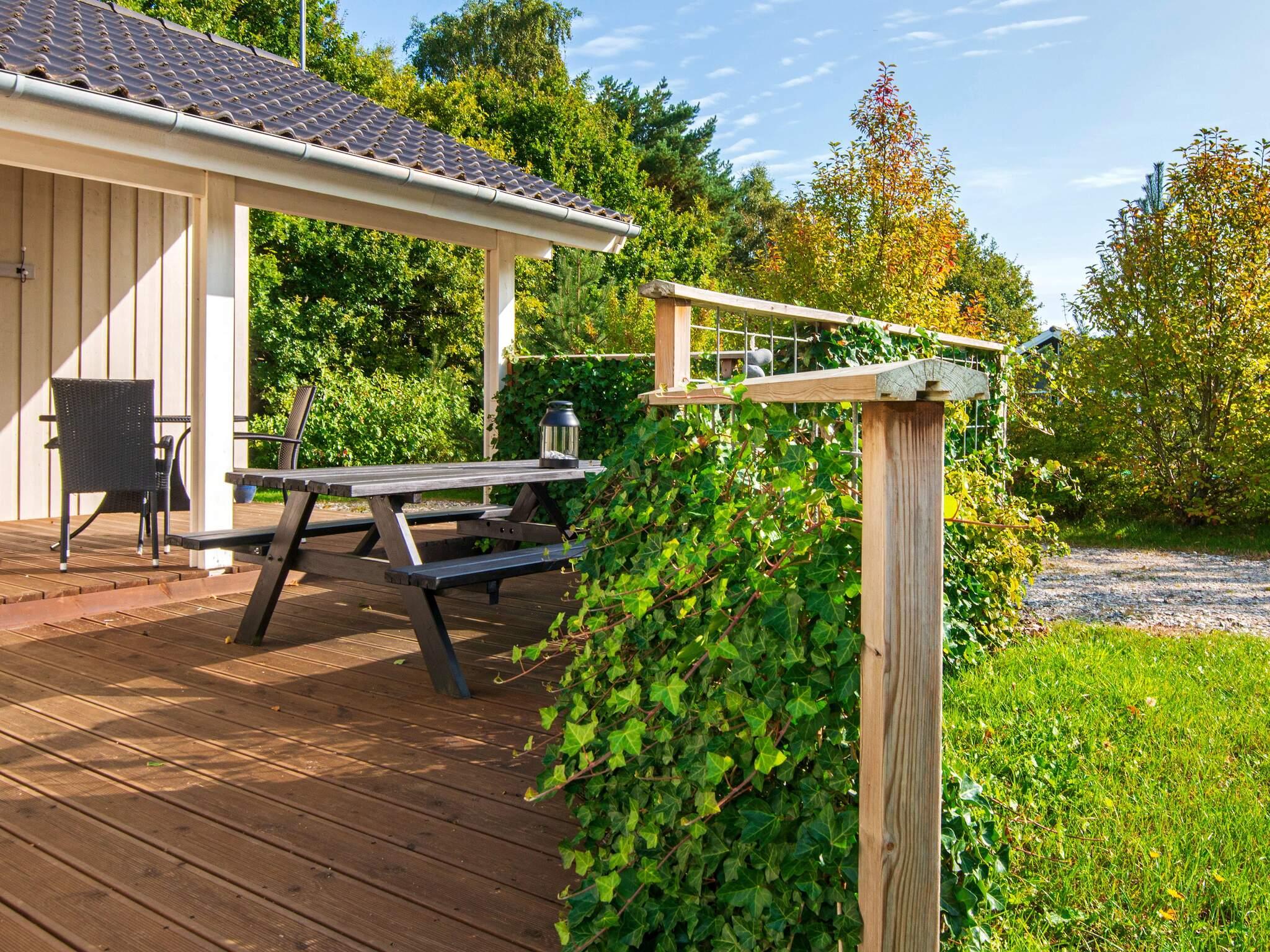 Und: Terrasse, überd. Terrasse, E-Heiz., Luft-Luft-Wärmepumpe, Spielgeräte, Naturgrundst. 1200 m2, einfache Möblierung, Ferienhausgebiet, Nichtraucherhaus