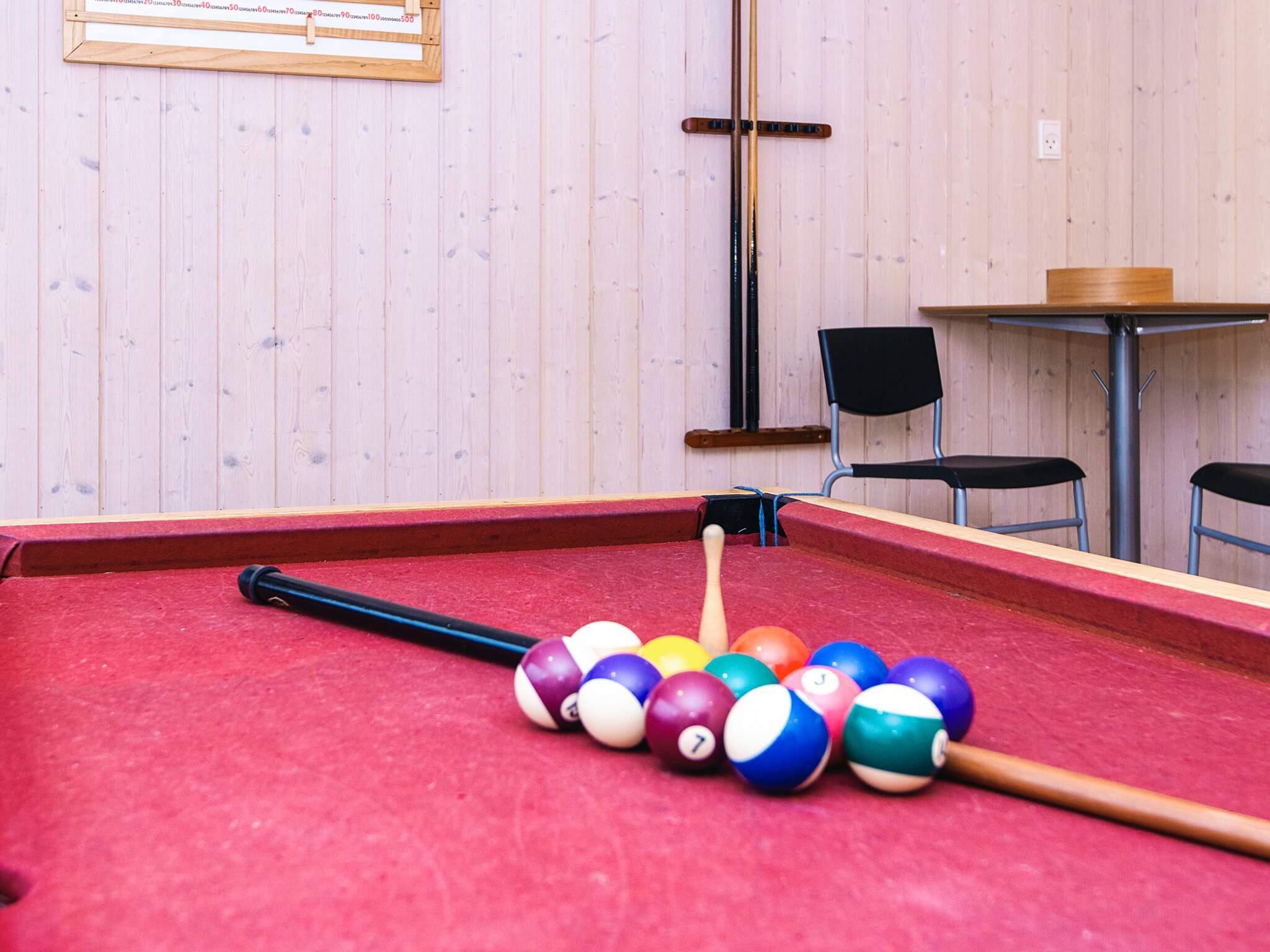 Geräumiges Ferienhaus, das Freizeitaktivitäten wie Billard sowie