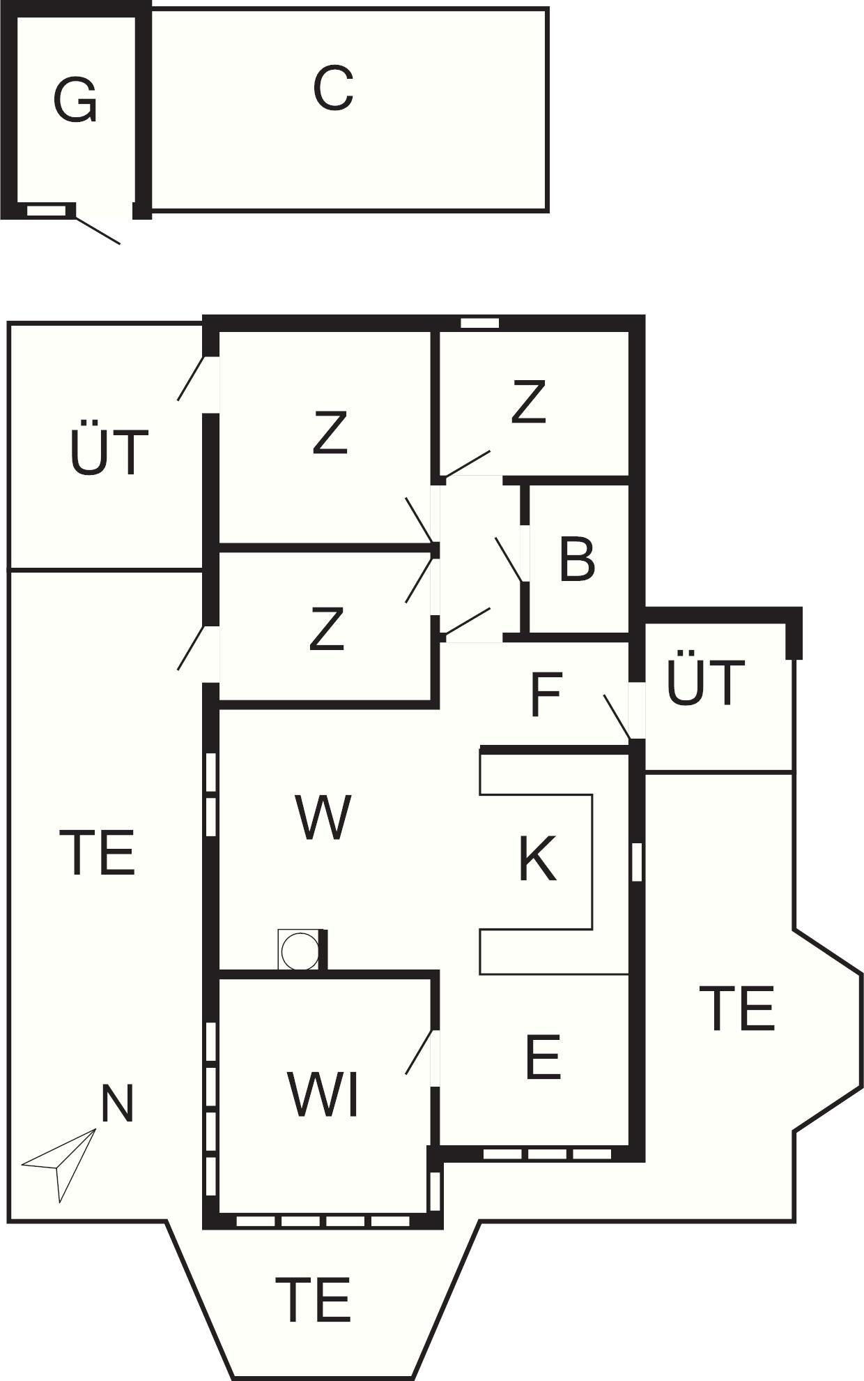 Und: Terrasse, überd. Terrasse, Carport, E-Heiz., Naturgrundst. 1400 m2, moderne Möblierung, Ferienhausgebiet, Nichtraucherhaus