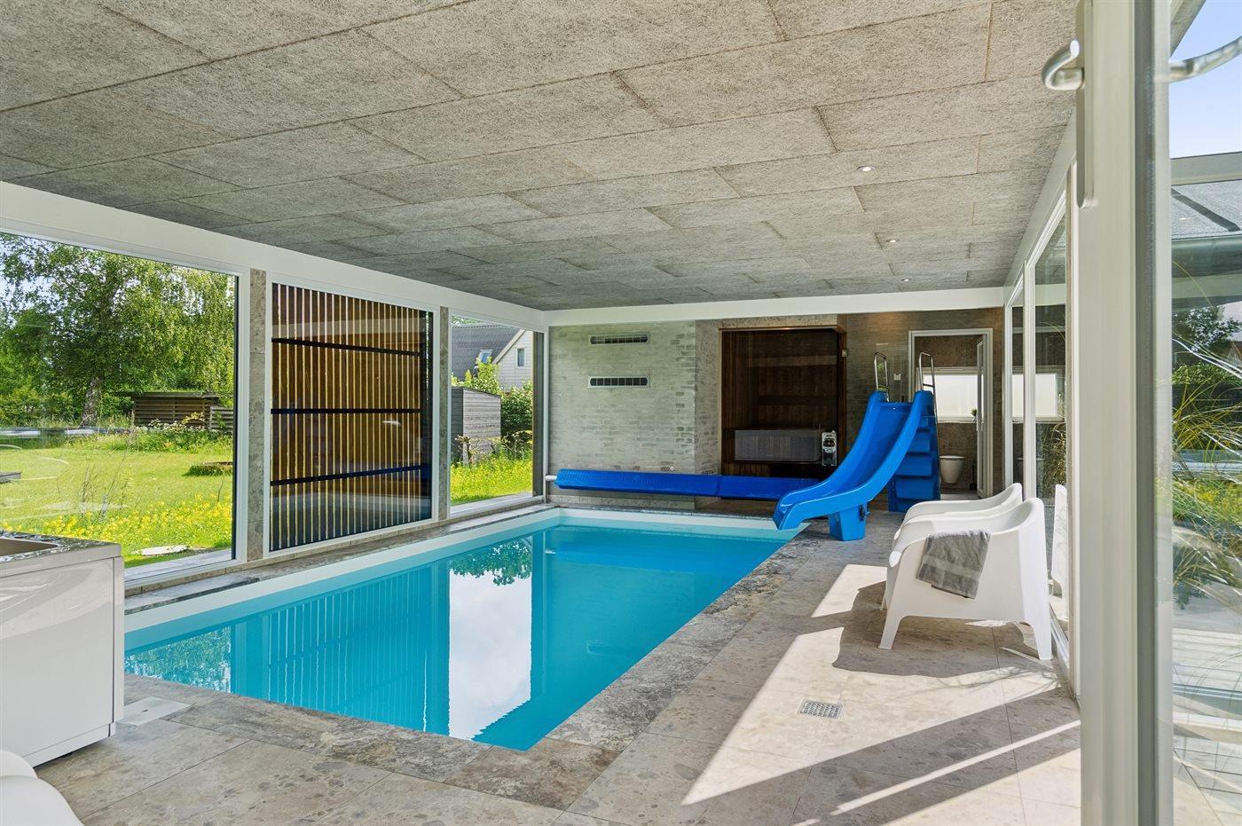 Modernes Ferienhaus mit Pool, Sauna und Außenküche nahe Fjellerup Strand in Dänemark.