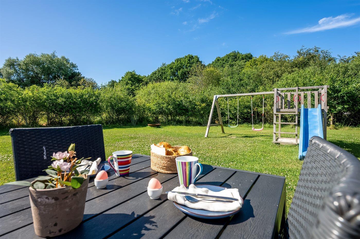 Die Ferienunterkunft liegt auf einem 1200 m² großen Gartengrundstück. Die Entfernung zum Meer beträgt 750 m. Die nächste Einkaufsmöglichkeit liegt 2500 m entfernt. Es steht ein offenes Terrassenareal zur Verfügung. Schaukel. Sandkasten. Spielturm. Rutsche. Es steht ein Grill zur Verfügung. Es ist ein Ladestecker für Elektroautos installiert. Mit einer Ladeleistung von 11 kW. Parkplatz auf dem Grundstück.
