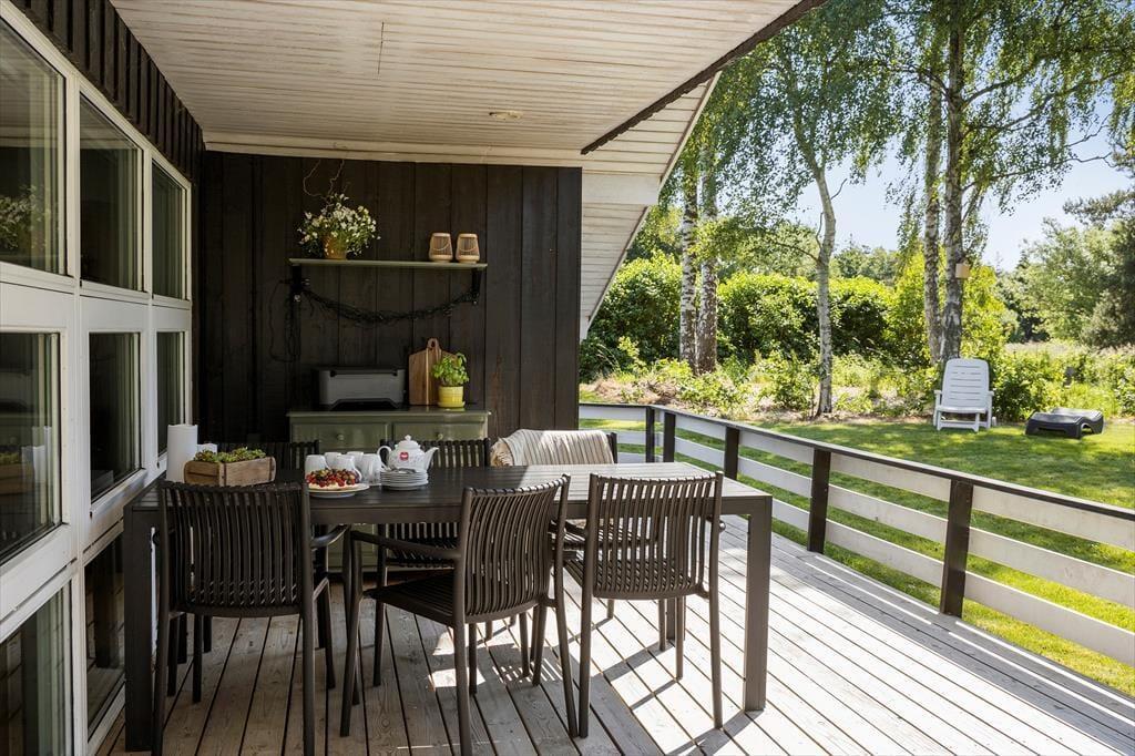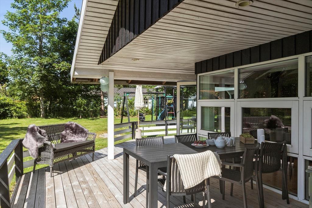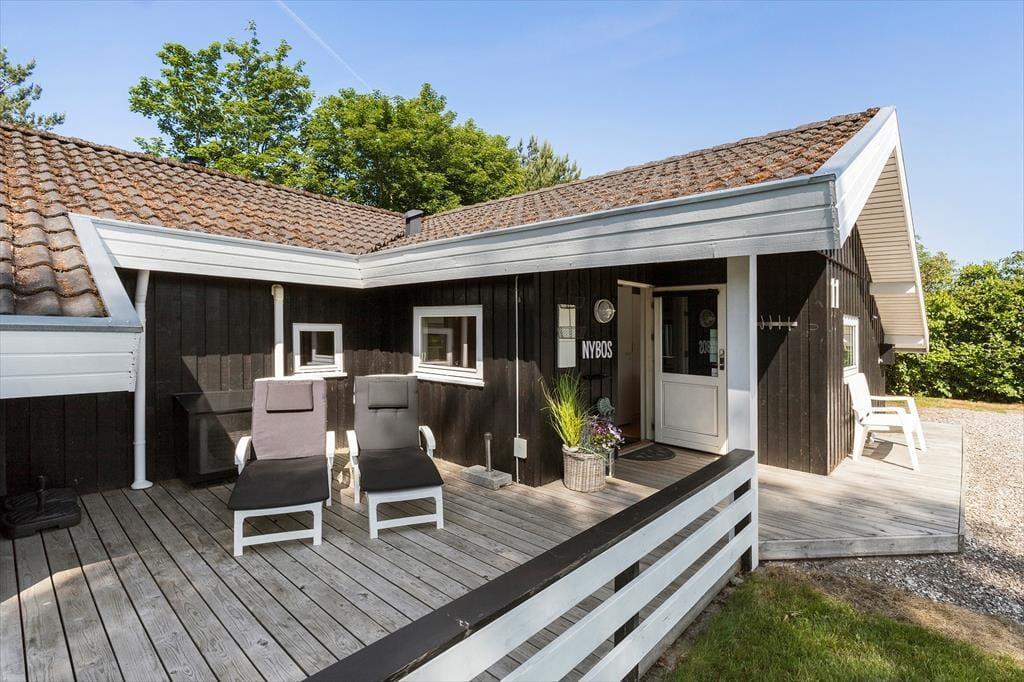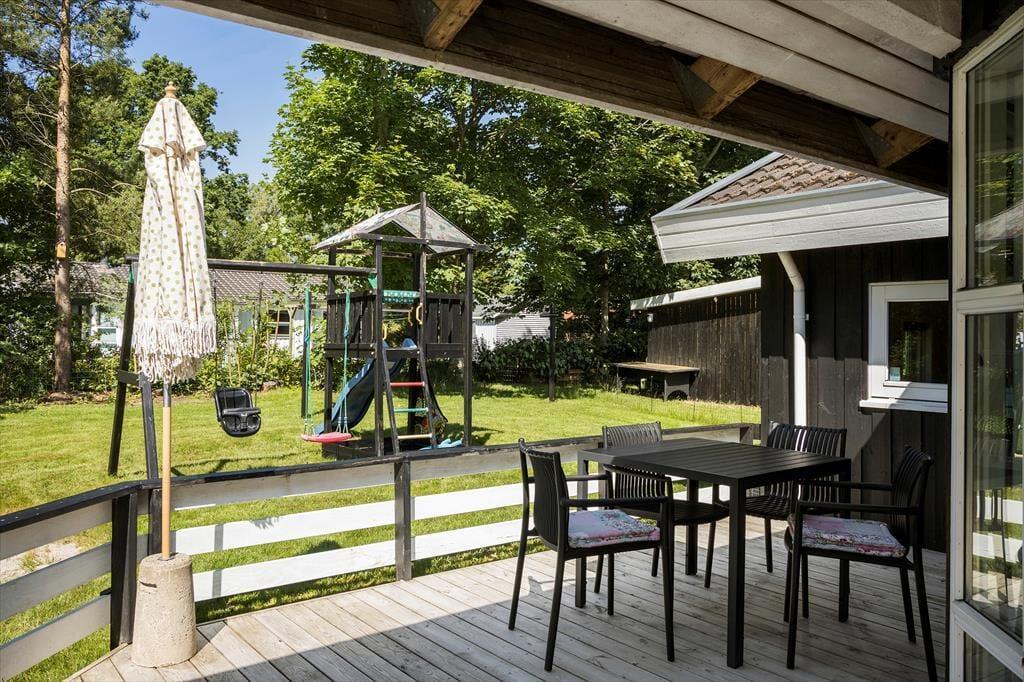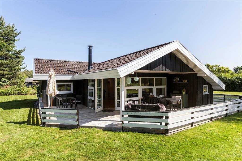 Die Außenbereiche deines Urlaubsdomizil präsentieren sich genauso schön und einladend wie das Haus selber. Vor dir erstreckt sich eine weitläufige, ebene Rasenfläche die zum gemeinsamen Spielen und zu verschiedensten Outdoor-Aktivitäten einlädt. Deine Kinder werden vergnügt Ball spielen, schaukeln und umhertollen, während du es dir auf einem Liegestuhl in der Sonne gemütlich machst. Rund um das Haus erwarten dich einladende Terrassen, die sich wunderbar für die unterschiedlichen Tageszeiten anbieten - von einem Frühstück in der Morgensonne bis zu einem geselligen Abendessen in der Dämmerung. Unter freiem Himmel wirst du mit einem Ausblick auf grüne, unbebaute Areale verwöhnt. Die Grundstückseinfahrt bietet gute Parkmöglichkeiten. Lediglich 600 Meter trennen dich und deine Lieben vom kinderfreundlichen Badestrand.