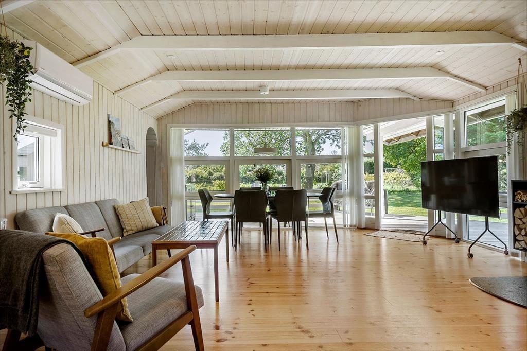 Stell dir einen Sommermorgen vor, an dem die Sonnenstrahlen durch die großen Fensterpartien deines schönen Ferienhauses fallen. Dieses Ferienhaus ist eines der Objekte, bei dem Komfort und Ästhetik in schönster Weise aufeinandertreffen. Unmittelbar nach dem ersten Betreten deines Ferienhauses bemerkst du die außergewöhnliche Bewegungsfreiheit und die mit Bedacht gewählte Einrichtung. Der Eigentümer hat ein gutes Händchen für Funktionalität, Details und Optik bewiesen. Insgesamt strahlt das Hausinnere viel Gemütlichkeit und Ruhe aus. Dank des guten Platzangebots und der übersichtlichen Möblierung eignet sich das Mietobjekt gut für Rollstuhlfahrer.
