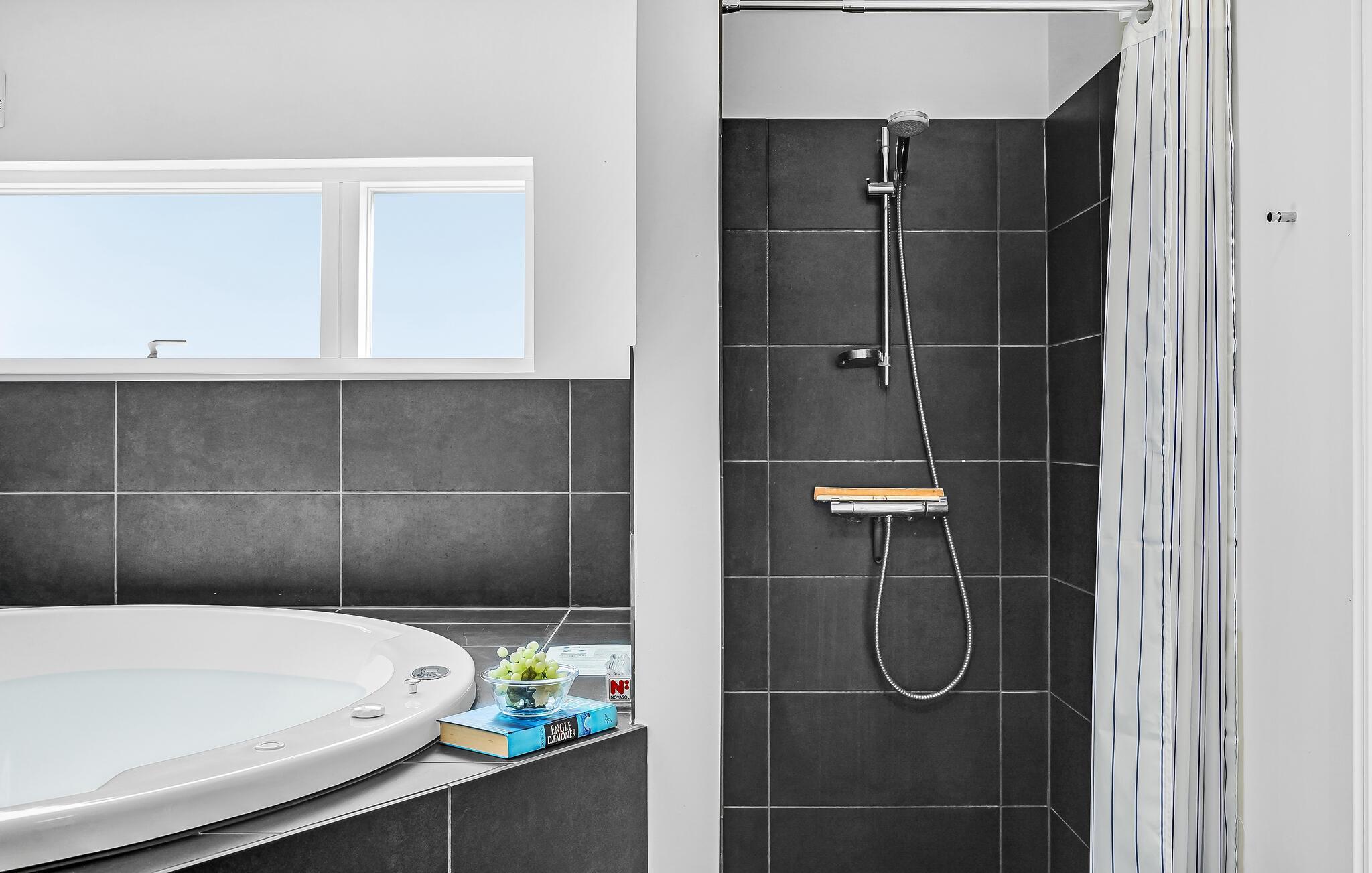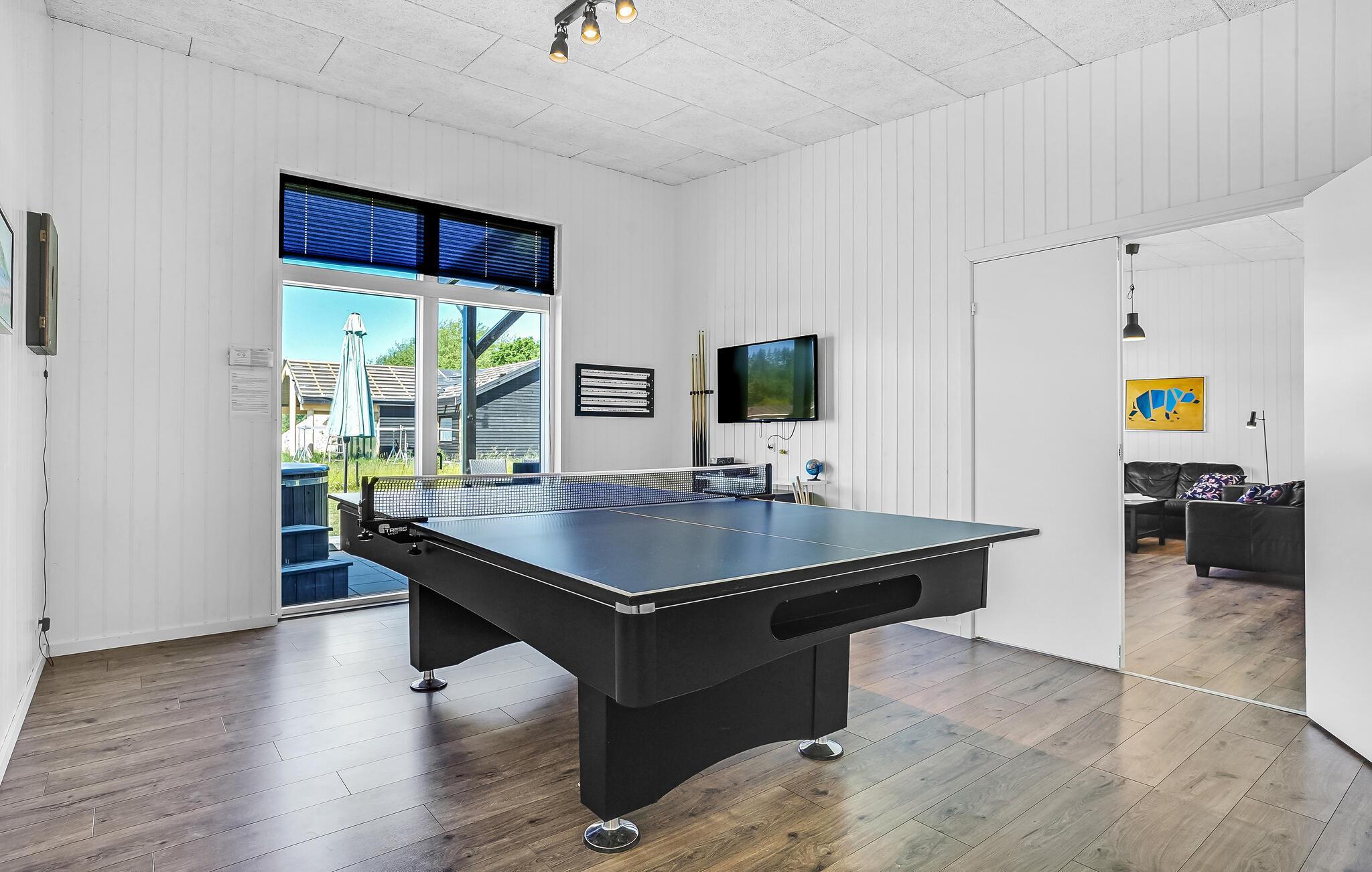 Ein schönes und sehr gut eingerichtetes Ferienhaus mit unzähligen Aktivitäten, beim schönen Fjellerup gelegen. Hier können Sie sich mit einem Spiel Billard vergnügen, Tischtennis oder Darts spielen oder draußen in die Badetonne springen, während die anderen das Essen auf dem Grill zubereiten. Hier ist viel Platz für eine große Familie oder mehrere Familien, die zusammen reisen. In der schönen Küche finden Sie alles an Ausstattung, sie ist mit dem Essbereich und dem ansprechend möblierten Wohnzimmer verbunden. Auf der Terrasse können Sie gemütlich sitzen und plaudern.