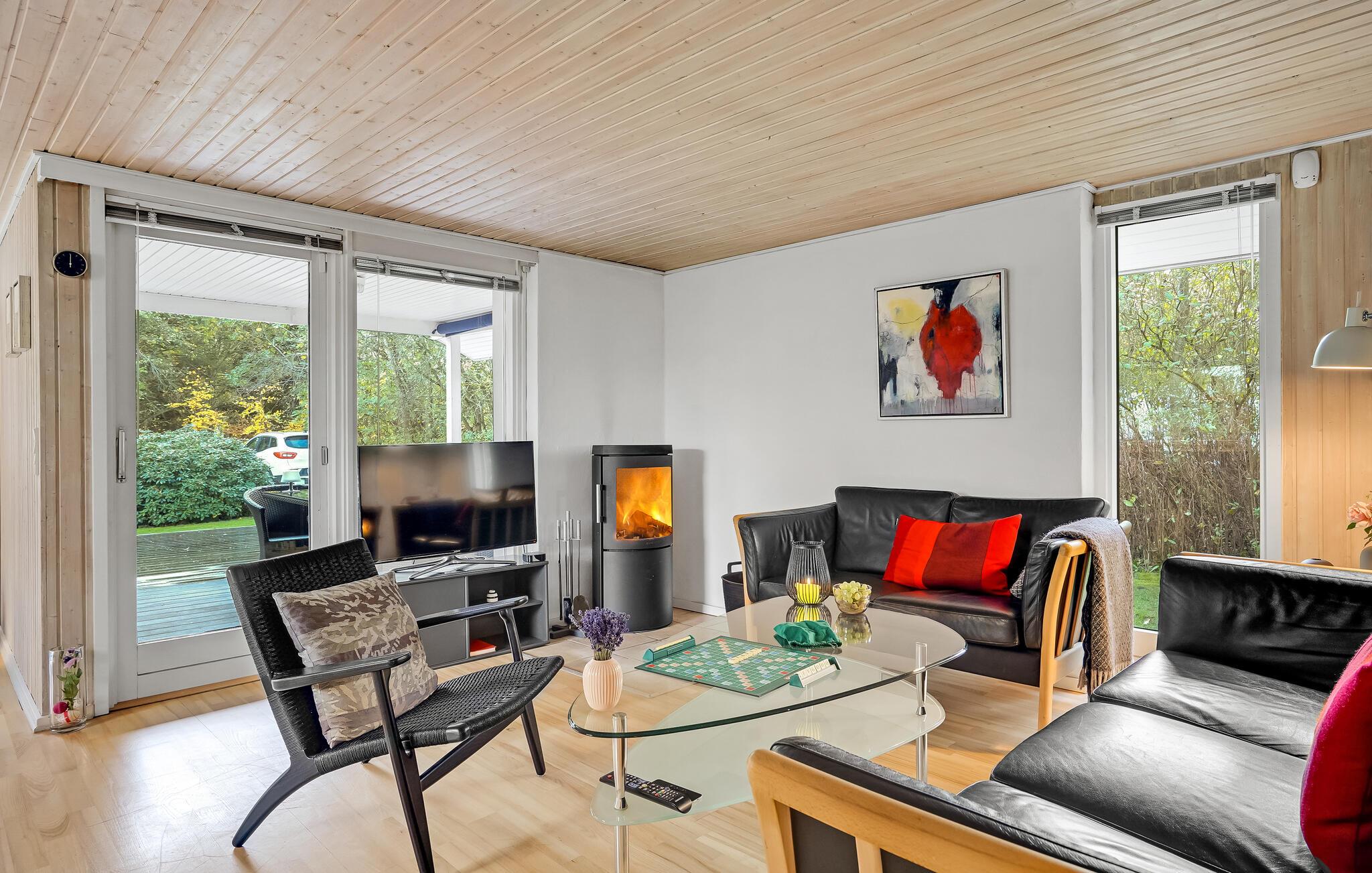 Gemütliches Ferienhaus nahe dem Strand von Fjellerup mit Kamin und überdachter Terrasse für erholsame Urlaubstage.