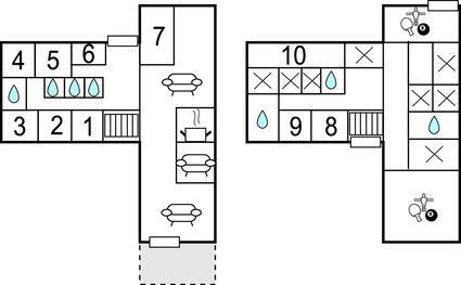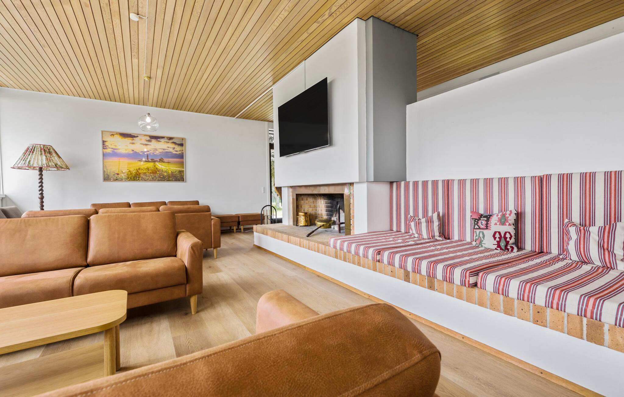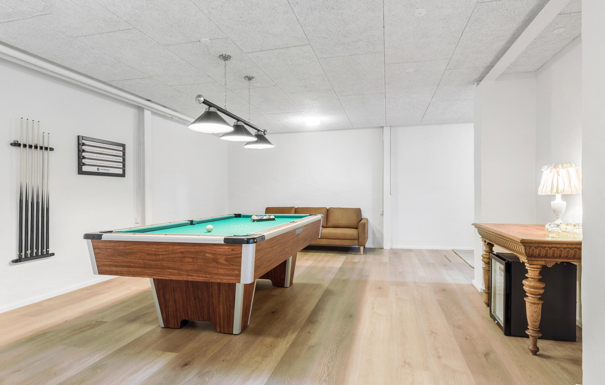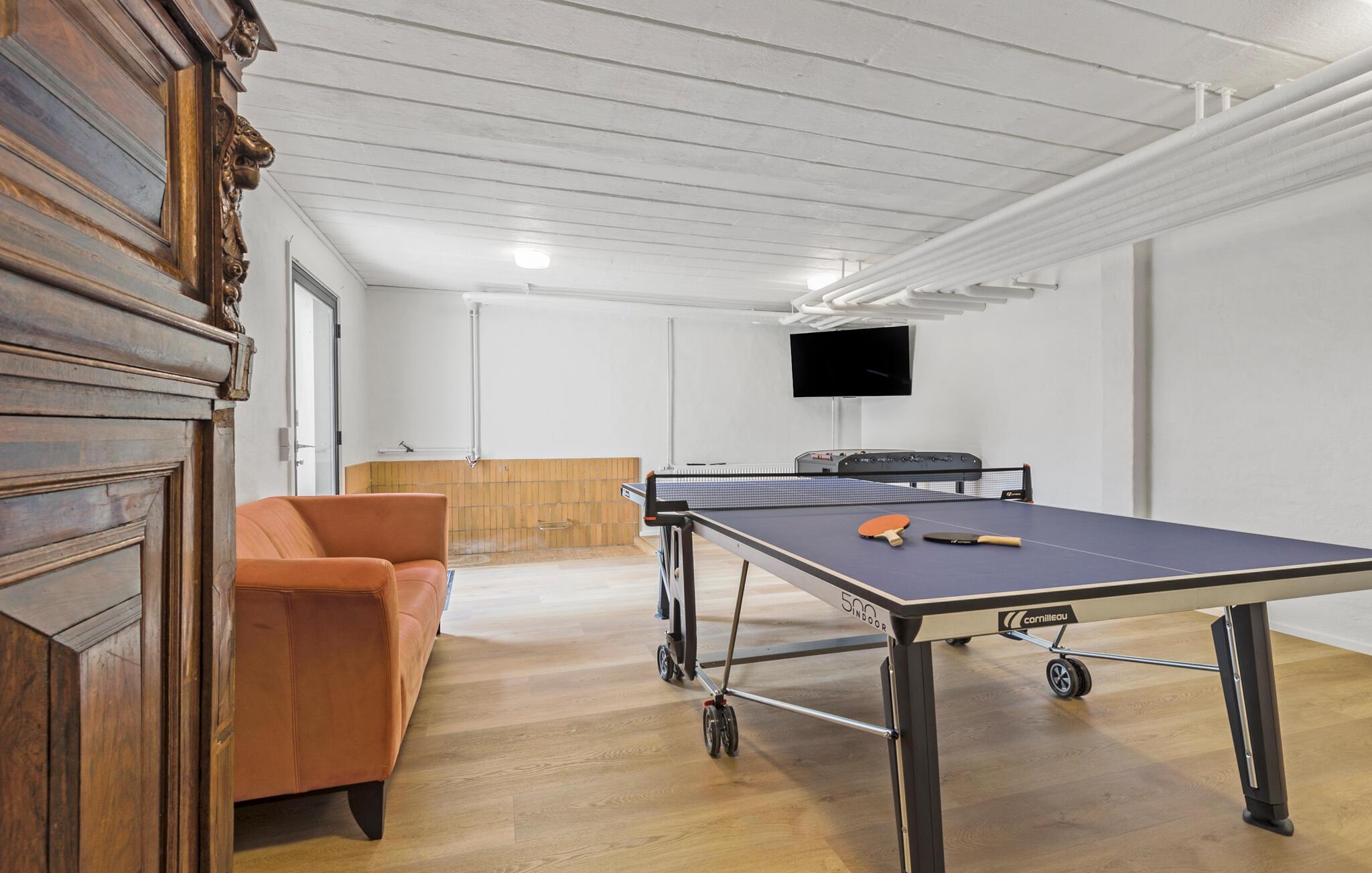 Entdecken Sie dieses große Ferienhaus, der ideale Treffpunkt für Familientreffen oder einem Urlaub mit einer großen Freundesgruppe. Die angenehme und ansprechende Einrichtung auf den beiden Etagen bietet Ihnen die ideale Umgebung, um sich zu entspannen, zu quatschen und die Zeit zu genießen. Machen Sie es sich beim Kaminofen bequem, lesen ein Buch oder fordern sich in den Aktivitätsräumen zu Tischtennis, Tischfußball, Darts und Billard heraus.