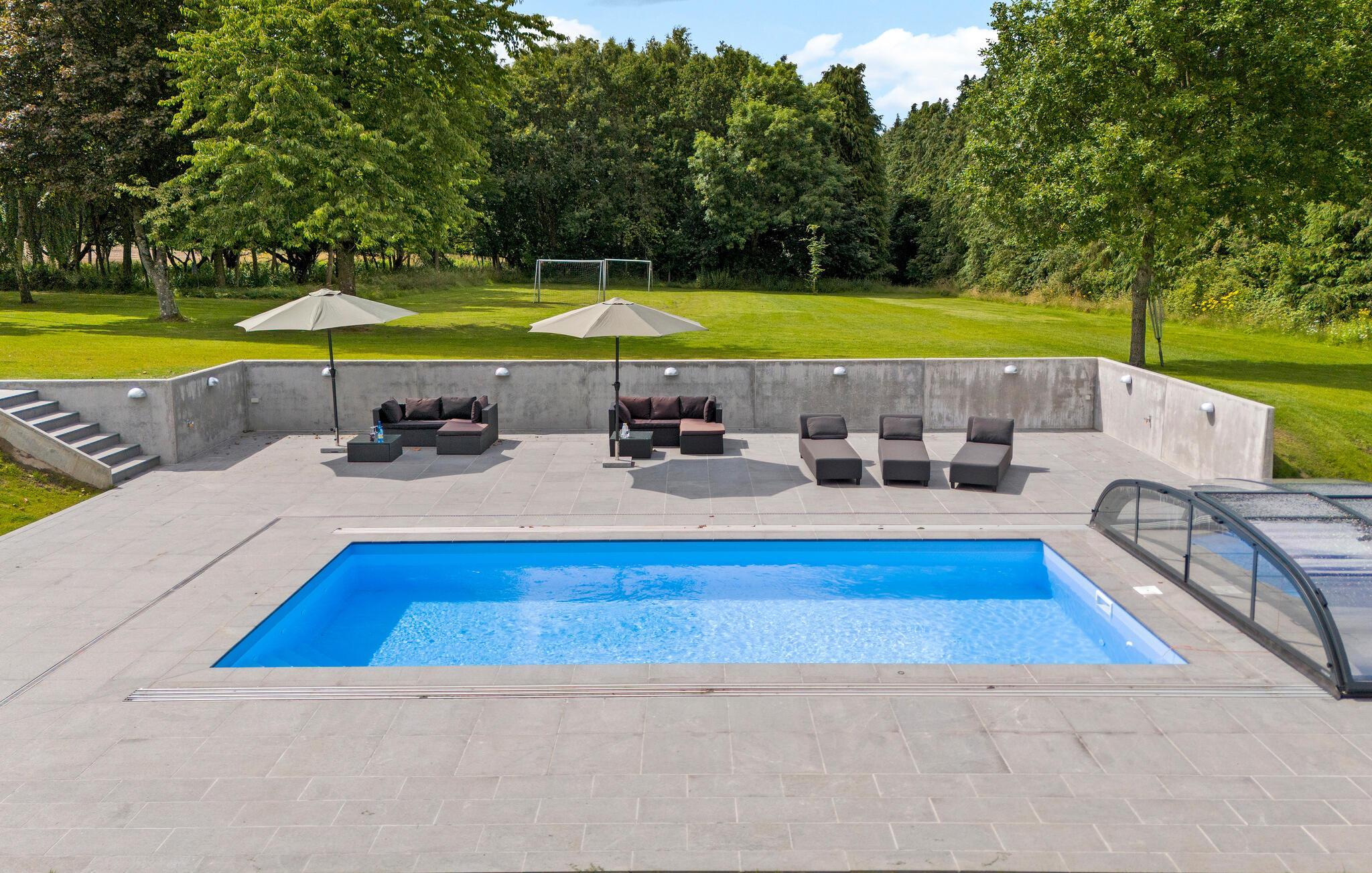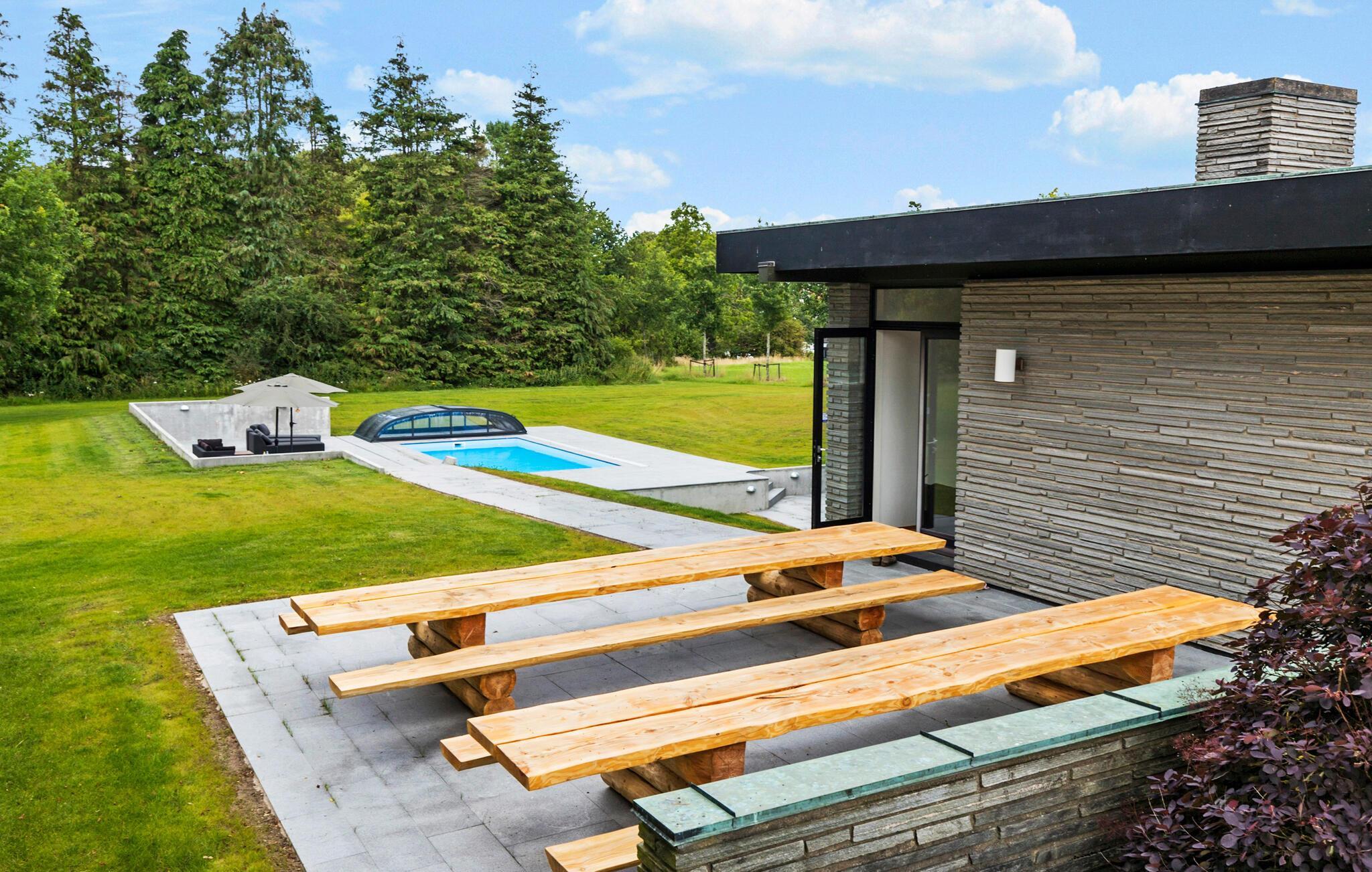 Großzügiges Ferienhaus in Glesborg mit beheiztem Außenpool und großem Garten für erholsame Tage.
