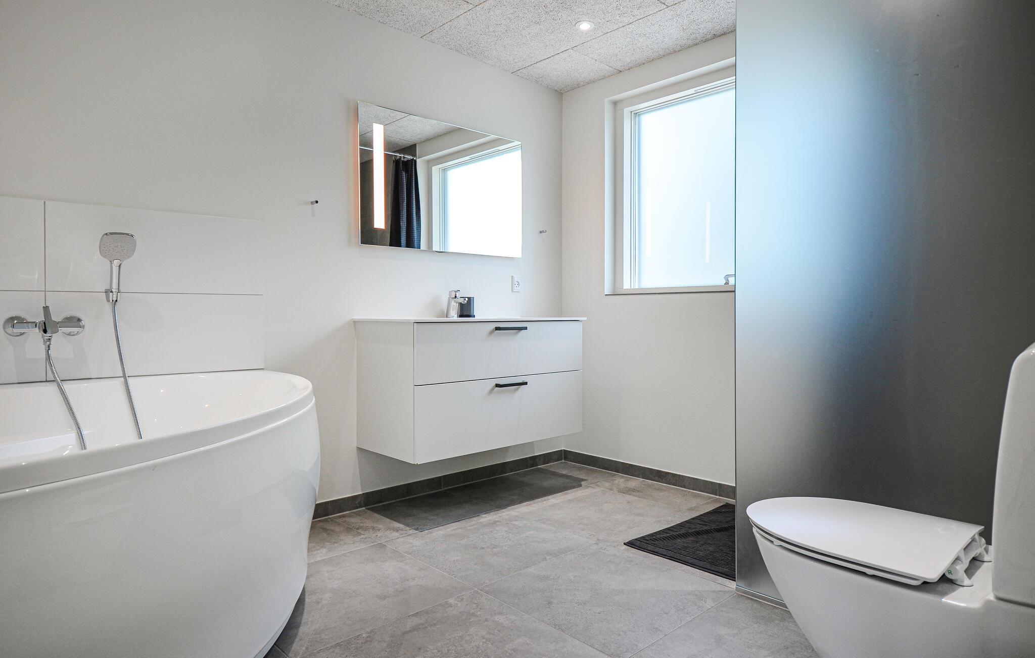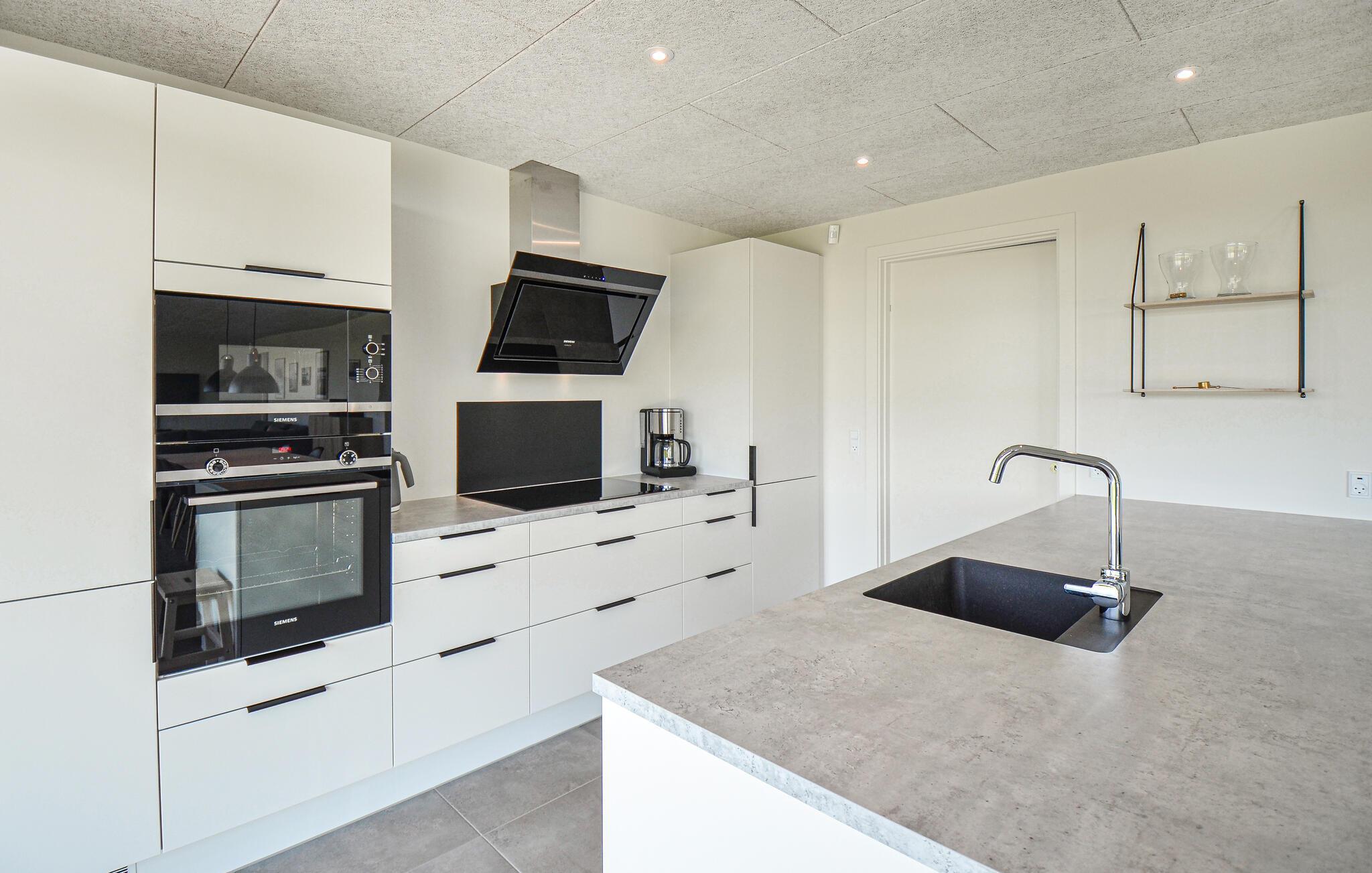Willkommen in diesem exklusiven Ferienhaus im fantastischen Fjellerup, in einer ruhigen Umgebung inmitten großer Wälder und nahe am Strand. Das Haus ist hell und einladend, sodass Sie sich vom ersten Moment an wie zu Hause fühlen. Es gibt Platz für 8 Personen, die auf 4 schöne Schlafzimmer verteilt werden können - alle mit Doppelbetten. Darüber hinaus gibt es 2 Badezimmer, von denen eines mit einer Badewanne ausgestattet ist. Der große Wohn- und Küchenbereich ist mit gepflegten, komfortablen Möbeln eingerichtet und bietet viel Platz für alle. Verbringen Sie die wunderschönen Sommertage auf der Terrasse auf den Gartenmöbeln, grillen Sie wundervolle Urlaubsgerichte und entspannen Sie sich im Badezuber - es ist ein ganz besonderes Erlebnis abends darin zu sitzen und den Sternenhimmel zu betrachten.