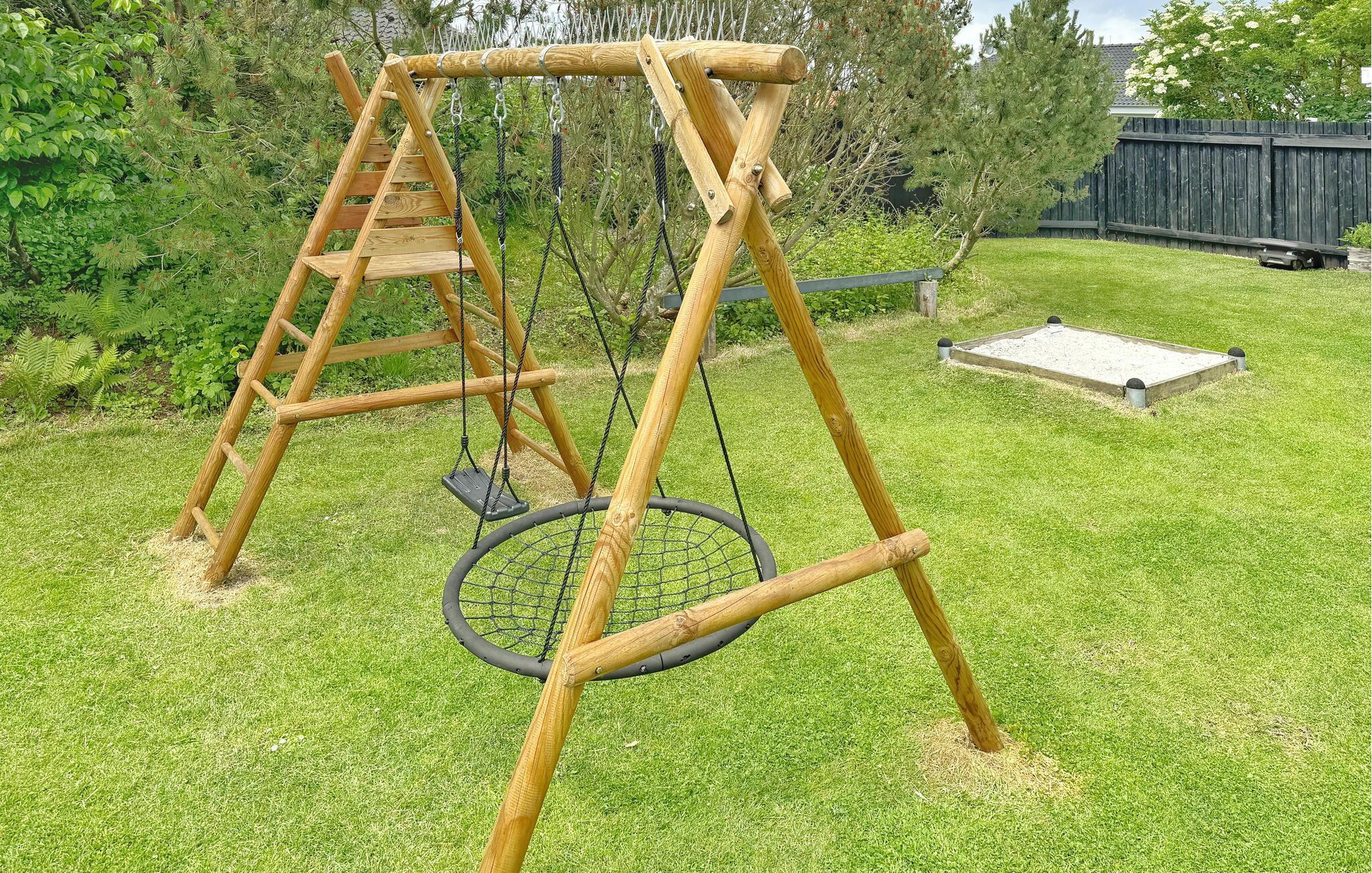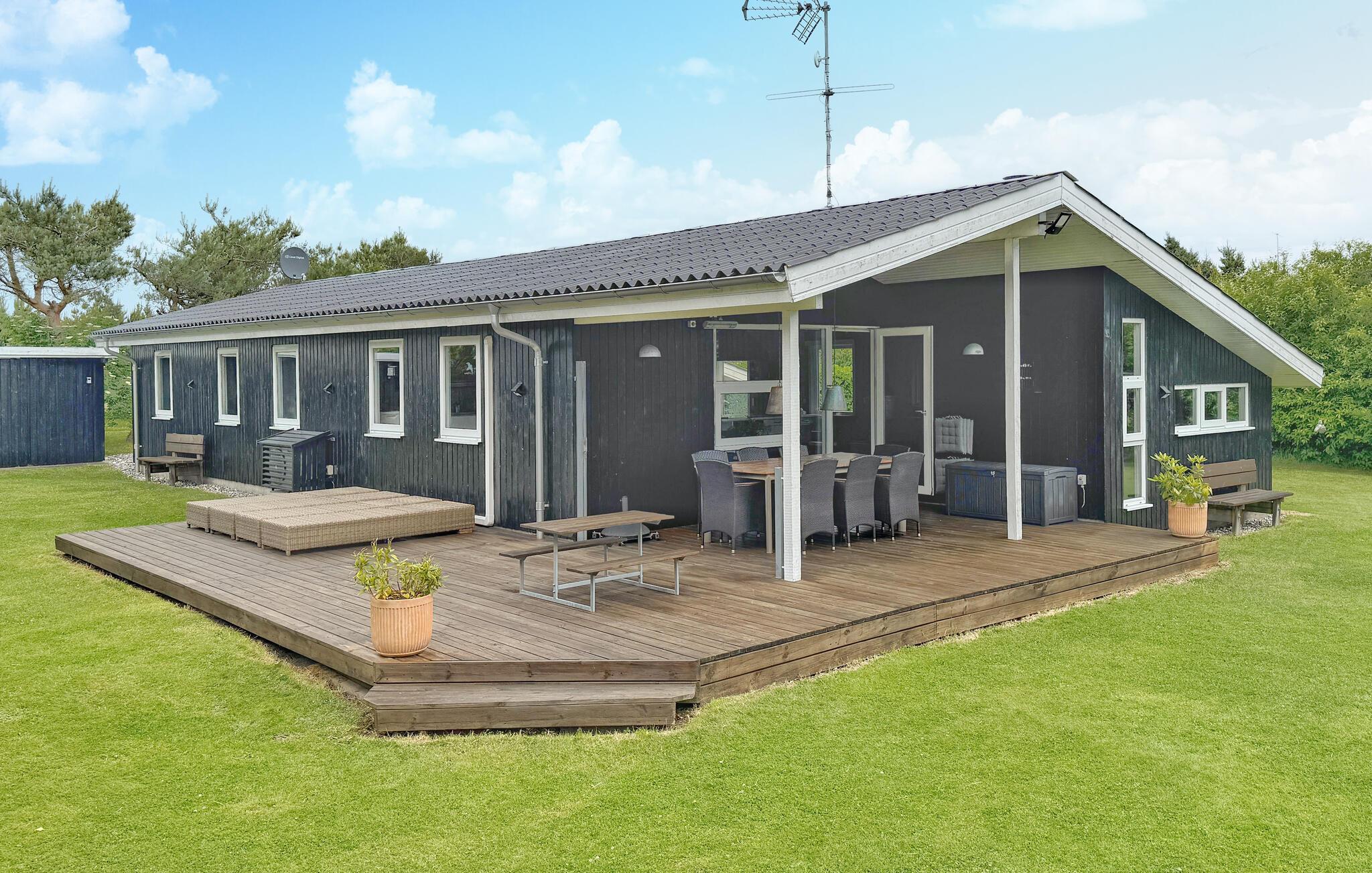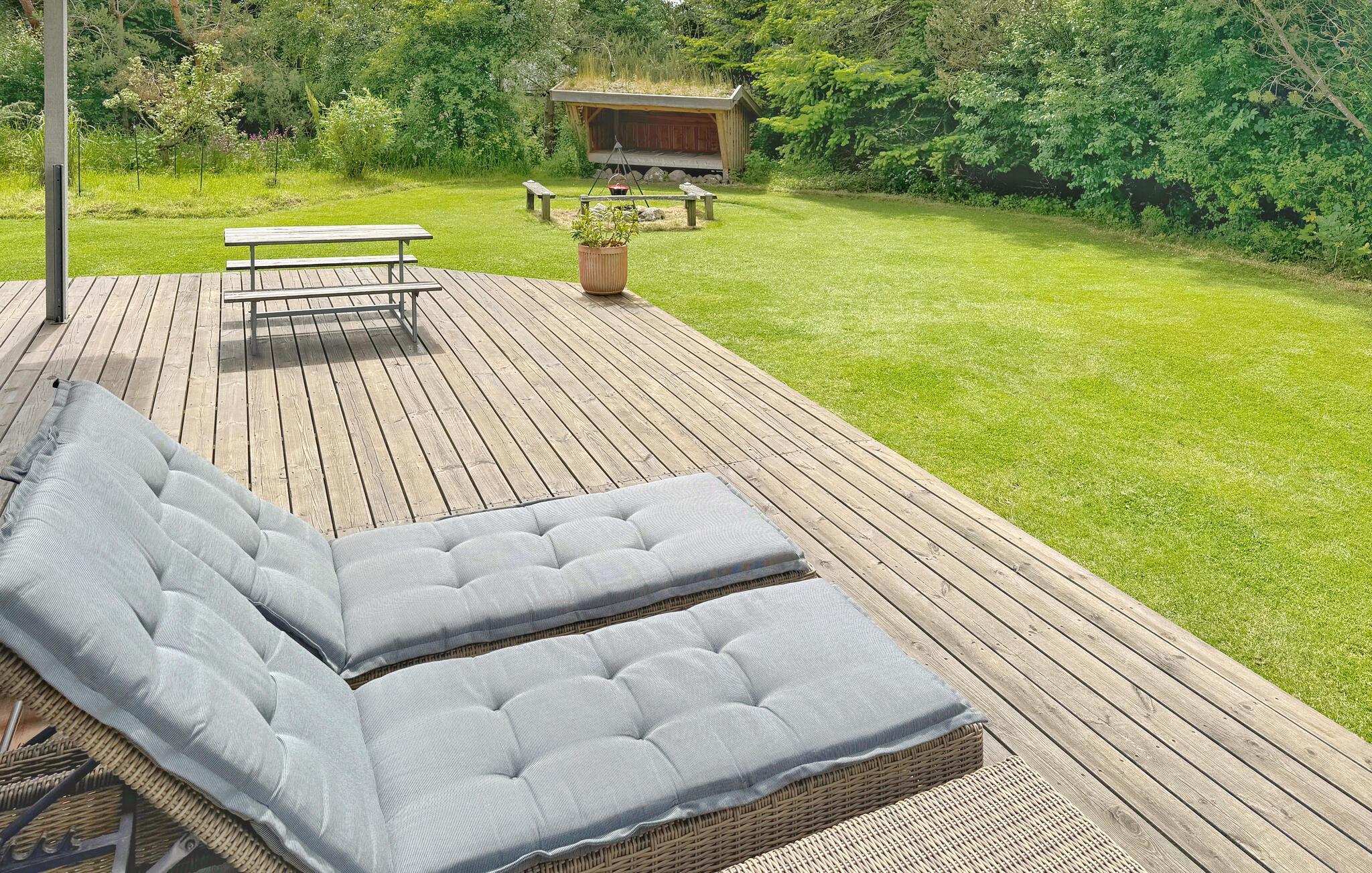 Dieses helle, komfortable und gemütliche Ferienhaus liegt auf einem Naturgrundstück mit Spielplatz und Lagerfeuer, nur fünf Gehminuten vom familienfreundlichen Sandstrand entfernt. Auf der nach Osten gerichteten Terrasse können Sie die Morgensonne, auf der größeren Südwestterrasse Nachmittagssonne und Sonnenuntergang in bequemen Gartenmöbeln genießen. Im Badefass für fünf Personen im Garten können Sie herrlich entspannen.