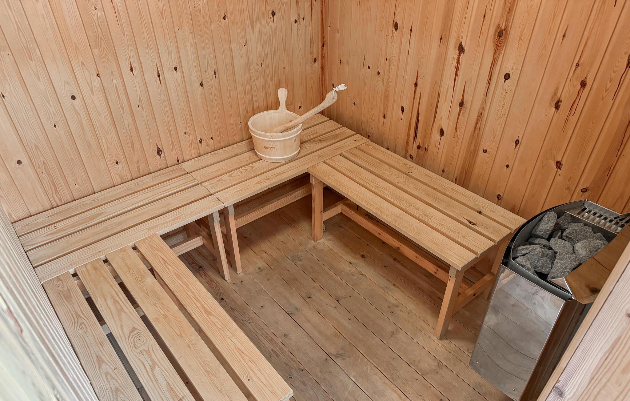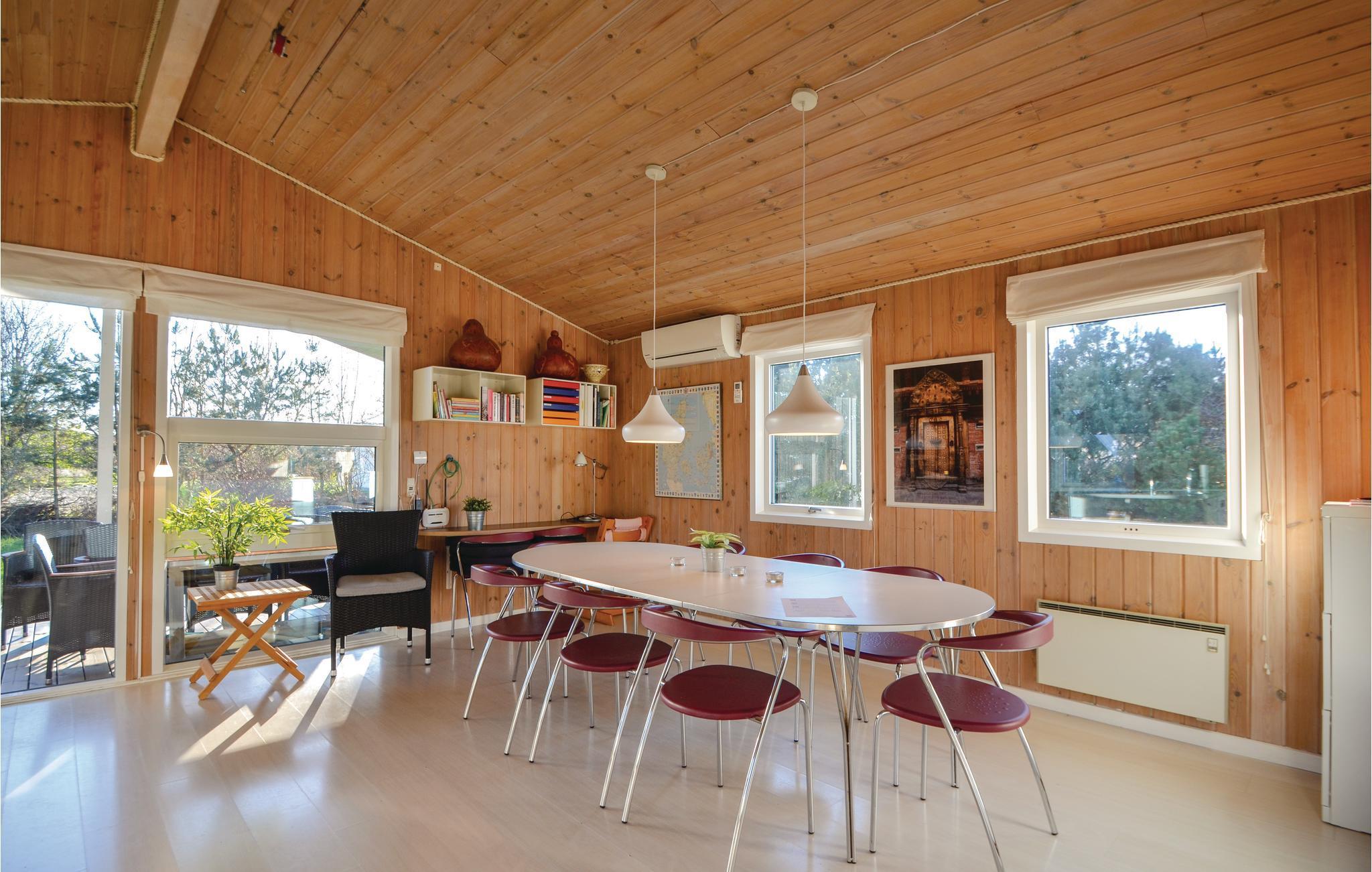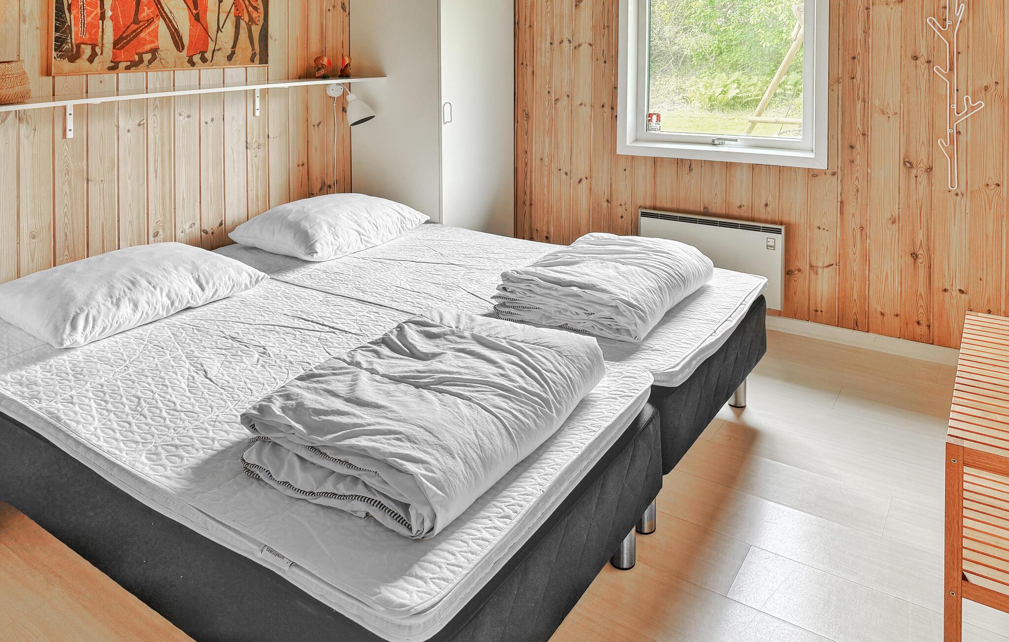 Das Haus ist mit einer schönen großen Wohnküche mit Platz für alle am Esstisch und einem abgesenkten (zwei Stufen) Kaminzimmer mit TV (dänische und deutsche Kanäle) ausgestattet. Die vier Schlafzimmer sind hell, gut ausgestattet und bieten viel Platz, etwa für zwei Familien. Es gibt auch zwei Badezimmer, von denen eines einen abgesenkten (zweistufigen) Bereich mit Whirlpool, Wickeltisch und Sauna hat. Natürlich haben beide Badezimmer eine Dusche.