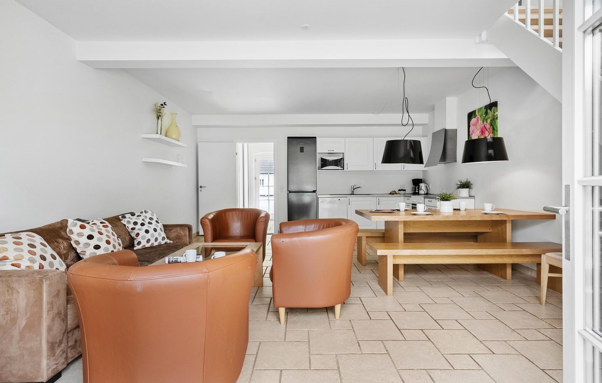 In dieser Ferienwohnung verbringen Sie eine unbeschwerte Zeit, umgeben von weiter Natur und herrlicher Landschaft. Entspannen Sie im freundlich eingerichteten Wohnbereich mit bequemen Sitzmöbeln und direktem Zugang zur Terrasse. Genießen Sie gemeinsame Stunden am Esstisch oder bereiten Sie Ihre Mahlzeiten in der schönen Küche zu, die Ihnen moderne Geräte und viel Arbeitsfläche bietet. Die helle Raumgestaltung sorgt für eine angenehme Atmosphäre, in der Sie sich sofort willkommen fühlen.