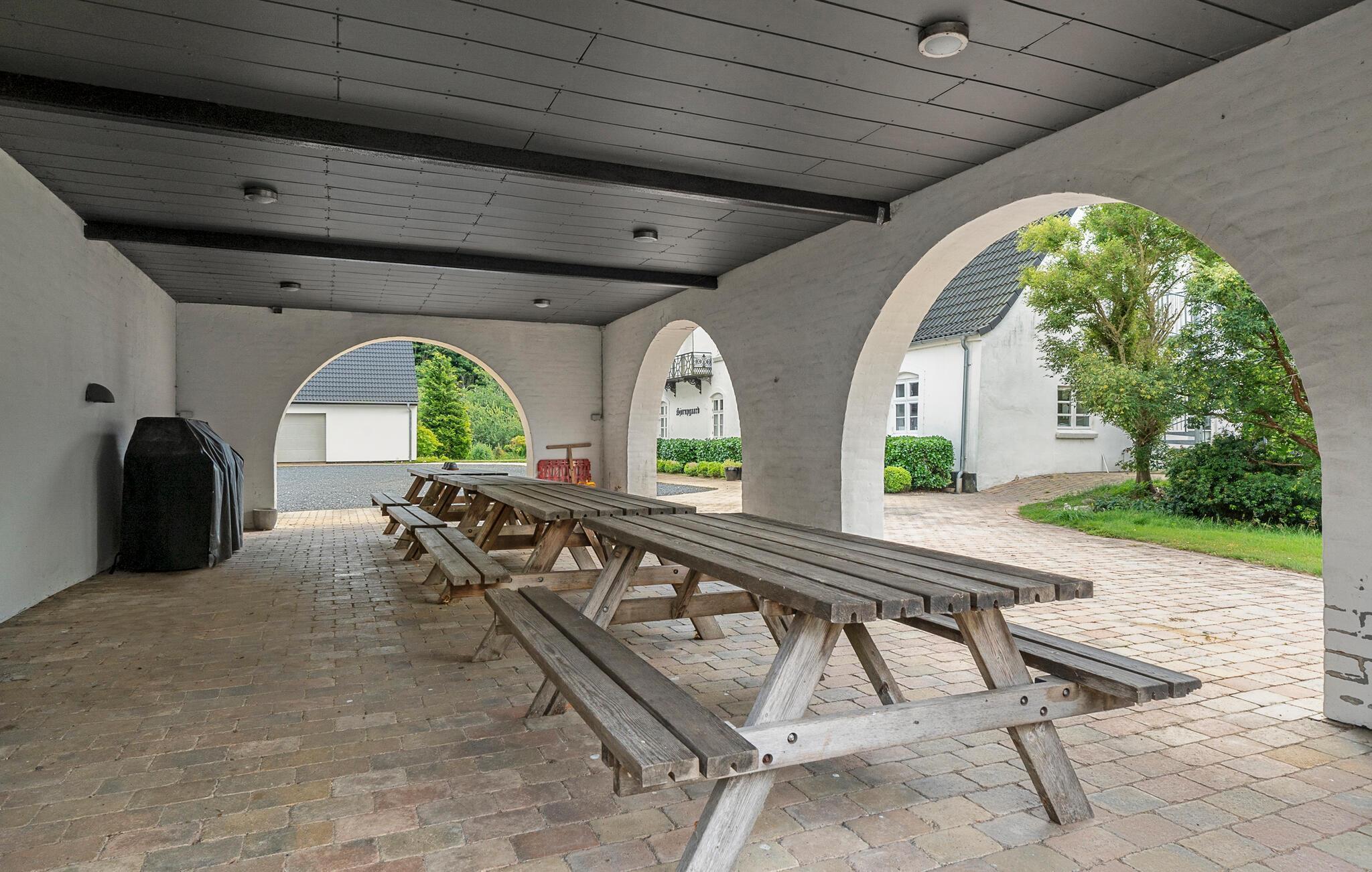 Verbringen Sie Zeit im weitläufigen Außenbereich. Frühstücken Sie auf der privaten Terrasse mit Sitzgruppe und Sonnenschirm oder lassen Sie den Tag bei einem Glas Wein ausklingen. Nutzen Sie die großzügige Rasenfläche für Freizeitaktivitäten oder entspannen Sie einfach mit Blick auf die grüne Umgebung. Überdachte Bereiche mit langen Holzbänken bieten sich auch für gesellige Runden an.