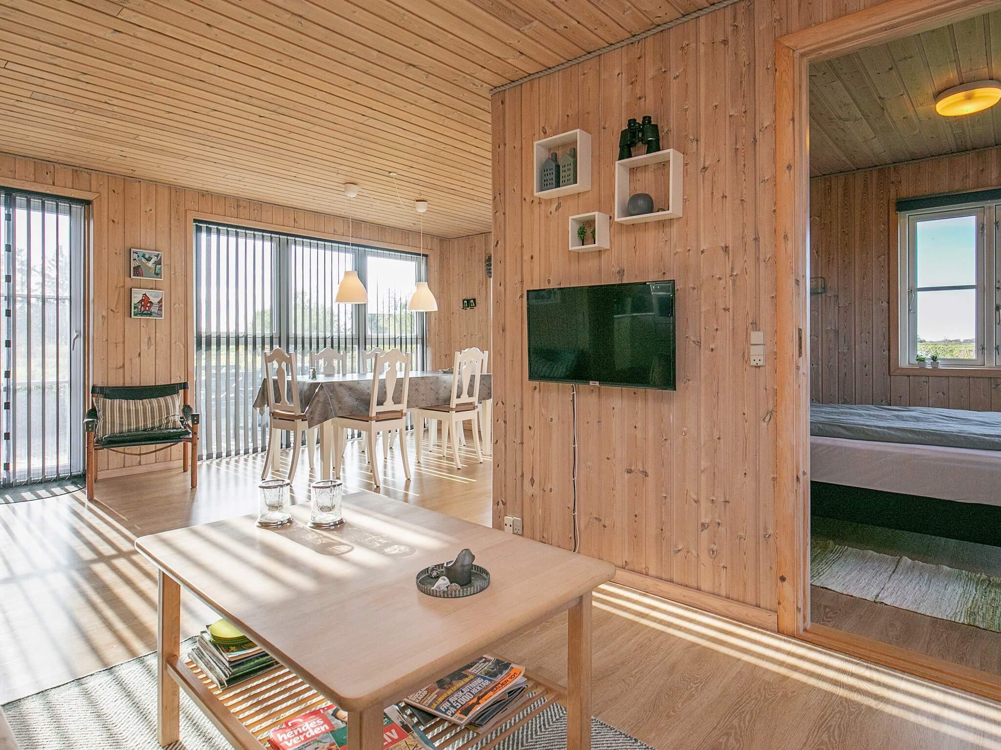 Im Haus erwartet Sie eine gut ausgestattete Küche und ein geräumiges Bad mit Dusche/WC. Im gemütlich eingerichteten Wohnbereich stehen ein Smart-TV mit dänischen Sendern und ein schöner Kaminofen für kühlere Abende zur Verfügung. Es gibt auch drei Schlafzimmer im Haus: eines mit Doppelbett, das zweite mit zwei Einzelbetten, das dritte mit zwei Einzelbetten, die zu einem Doppelbett zusammengestellt wurden.
