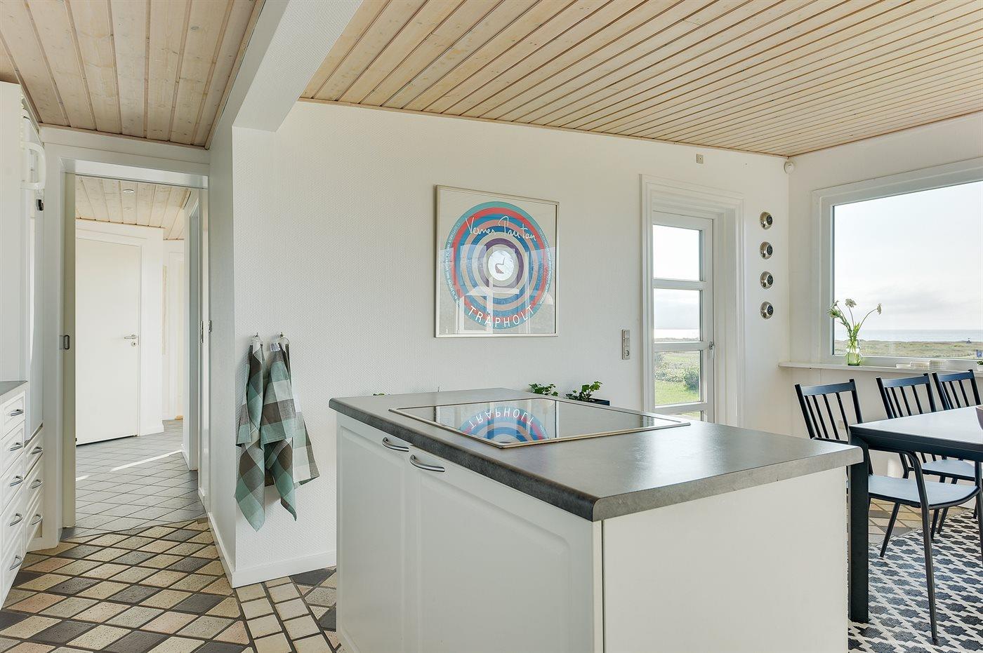 Die Küche ist mit Kühlschrank ausgestattet. Außerdem gibt es 4 Keramik-Kochfelder, Backofen, Mikrowelle sowie Geschirrspüler.